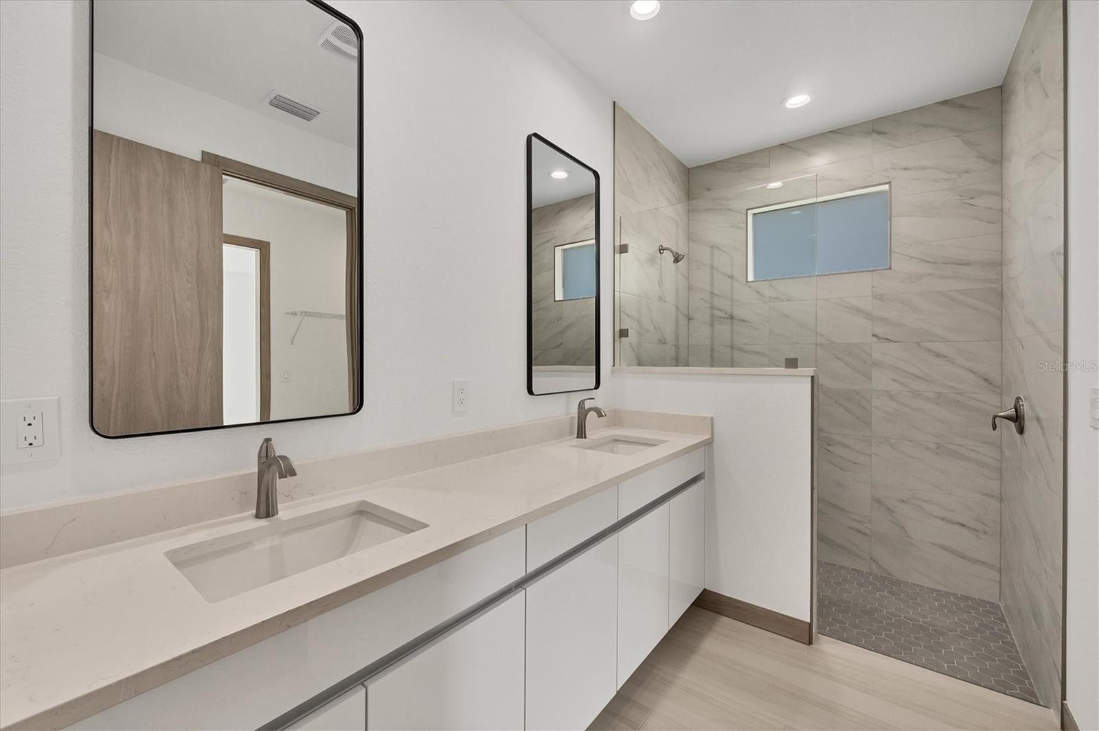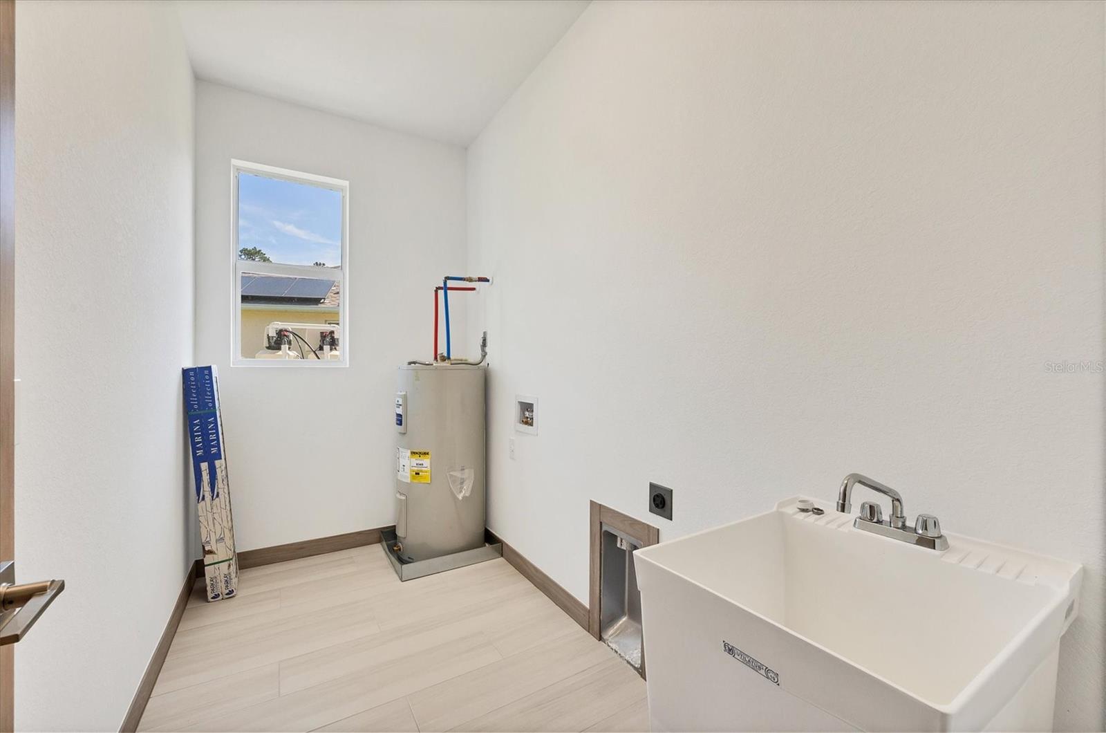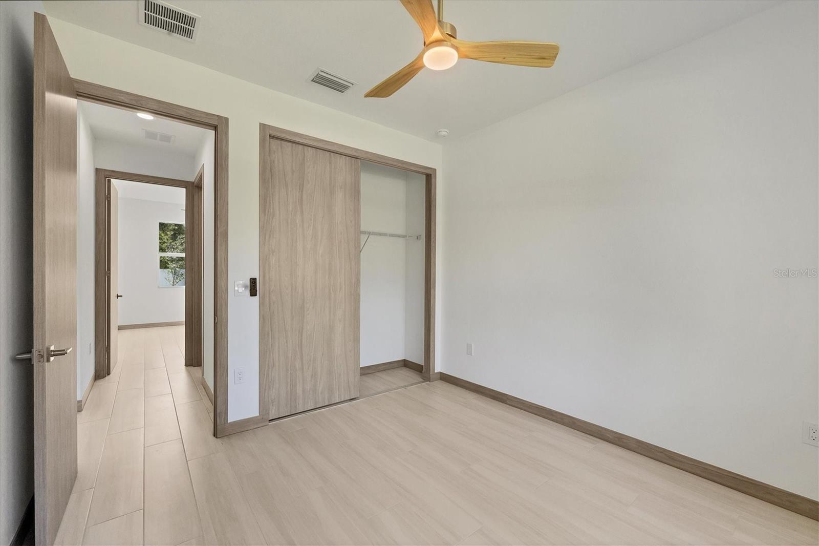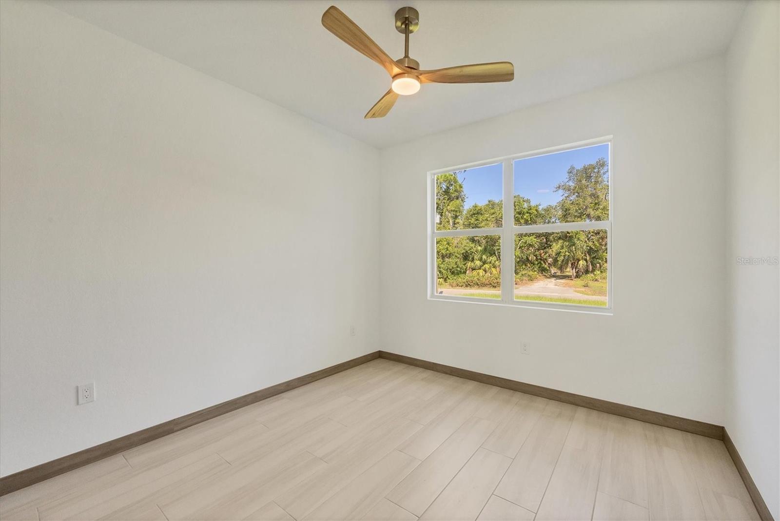 One or more photo(s) has been virtually staged. Stunning New Construction – Available for Purchase or Rent From the moment you arrive, the impressive 8-foot double glass doors welcome you into a bright, open-concept living space filled with recessed lighting and contemporary finishes. At the heart of the home is an amazing kitchen featuring quartz countertops, modern cabinetry, a gorgeous tile backsplash, and stainless steel appliances. Four 8-foot sliding glass doors create seamless indoor-outdoor living, opening to a spacious open patio — perfect for entertaining and relaxing. The home is outfitted with impact-rated windows and doors for peace of mind, along with a smart MyQ garage door opener, a full gutter system, and an efficient sprinkler system to keep the landscaping lush. Inside, you'll find tile flooring throughout, elegant quartz surfaces in both the kitchen and baths, and a dedicated home office enhanced by French glass doors. The spacious laundry room includes a convenient mop sink, and the oversized primary closet provides abundant storage. Ceiling fans with remotes and modern hardware and light fixtures add to the home’s stylish aesthetic. Plus, with fencing already in place on two sides from neighboring homes, you’re well on your way to a fully enclosed backyard. This move-in-ready gem offers exceptional quality and attention to detail in a desirable neighborhood. Available for purchase or for rent at $2,600/month, with a $2,600 security deposit, application fee, and lease preparation fee. Schedule your private showing today — homes like this don't last long! One or more pictures have been virtually staged.