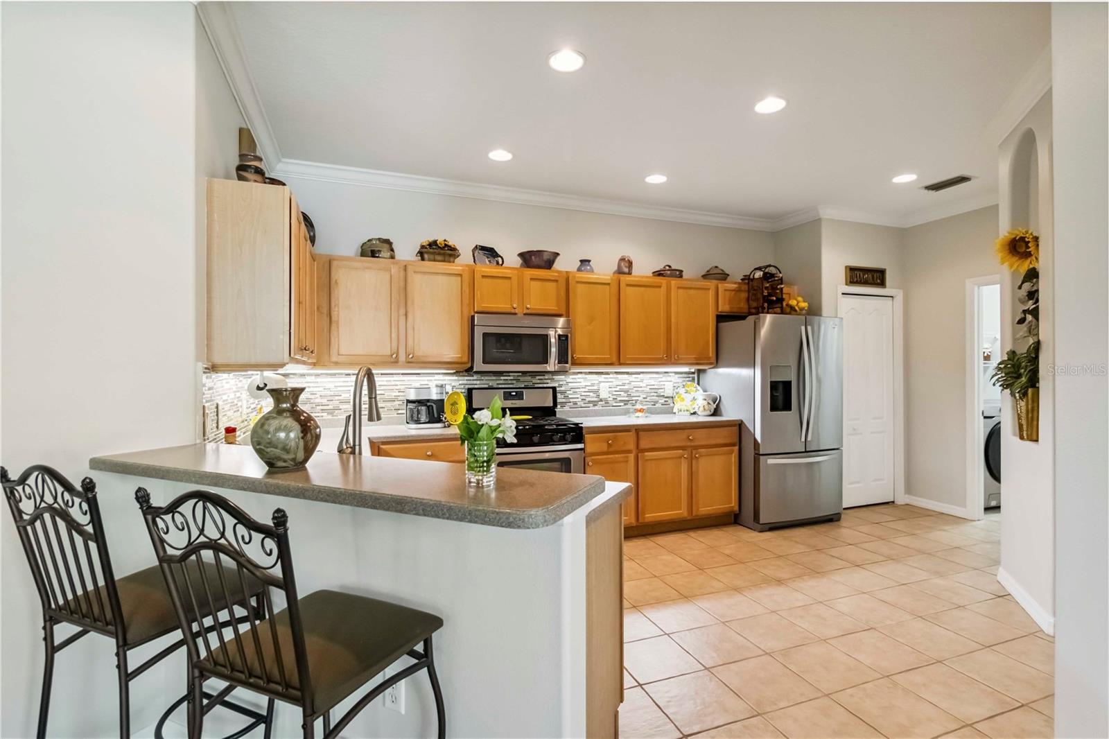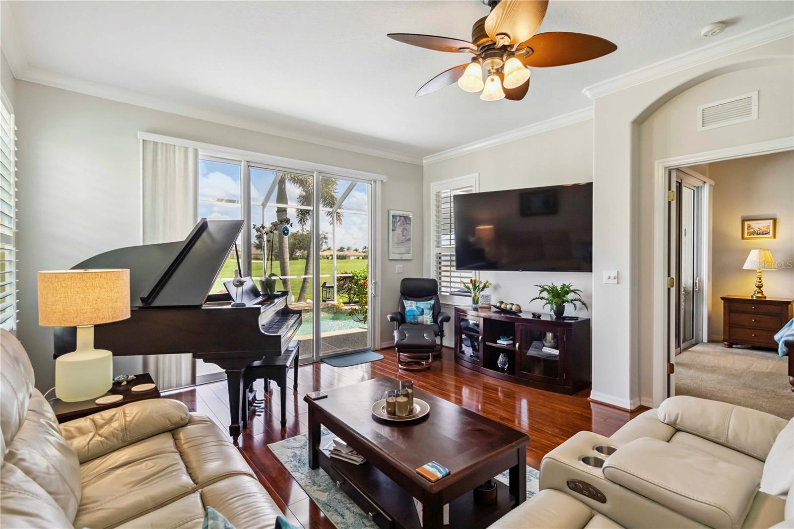 HUGE PRICE REDUCTION!!!!!Enjoy the Florida lifestyle in this exquisite TURNKEY FURNISHED 2 bedroom 2 bath + den/study villa with a heated pool! This impeccably kept villa is located in the exclusive gated golf course community of Heron Creek Golf and Country Club. This home offers one of the largest customized floor plans in the Osprey Cove neighborhood and is situated with views to the green of the 5th hole of the Oaks golf course. Prepare to be captivated by the numerous upgrades and luxurious features that make this home truly exceptional. Once inside you will notice the elegant crown molding that adorns every room adding a touch of sophistication to the charming ambiance. You will delight with the abundance of windows, highlighted by plantation shutters, allowing for lots of natural light to flow through. The dining area is accented with a decorative column creating a wonderful space to enjoy delicious meals with your family and friends. The kitchen is a chef’s delight with Stainless Steel appliances, gas cooking, solid maple wood cabinetry with pull out shelves, under cabinet lighting, corian countertops, tiled backsplash, breakfast bar with pendant lighting, and closet pantry. There is lots of room in the generous size great room with triple sliders leading to the sparkling heated pool and lanai area with views of the golf course, making for a nice gathering spot for you and your guests. The primary bedroom is complimented with a tray ceiling, windows overlooking the golf course, walk in closet and en-suite bath. The ensuite bath is truly a retreat boasting a spacious walk in shower, soaking tub, and dual sinks. The split floor plan design provides privacy for your guests where they will enjoy a spacious guest bedroom, and adjacent bath with a tub/shower combination. Your oasis can be found in the den/ study for a welcomed getaway. Take in the beauty of the outdoors on the lanai and pool area while watching the golfers, nature and sunsets…the perfect place to end your day. Lots of extra touches in this magnificent home including, New Roof and Gutters(2024), Interior Paint (2024), New Washer and Dryer (2024), New Lanai Screens (2023), New Lanai Ceiling Fan (2023) New Hurricane Windows (20-22), New Pool Equipment including heater (2019), Epoxy Coated Garage Floor and more! This home combines sophistication and comfort for a delightful living experience. Immerse yourself in the Heron Creek Golf and Country Club Community and enjoy the first class amenities. For example, play the 27 holes Arthur Hills designed golf course with major practice facility, join in a tennis game on the 5 Har Tru lighted tennis courts, take a dip in the resort style pool and spa, workout in the newly updated fitness center, enjoy a bite at the newly renovated Courtside Cafe or experience casual and fine dining choices at the 21,000 sq ft Clubhouse. Heron Creek is vibrant community with a very active social calendar. One could say there is something for everyone. Heron Creek is close to beaches, shopping, restaurants, Warm Mineral Springs,and Cool Today Park. This is your opportunity to enjoy the wonderful Florida lifestyle today!