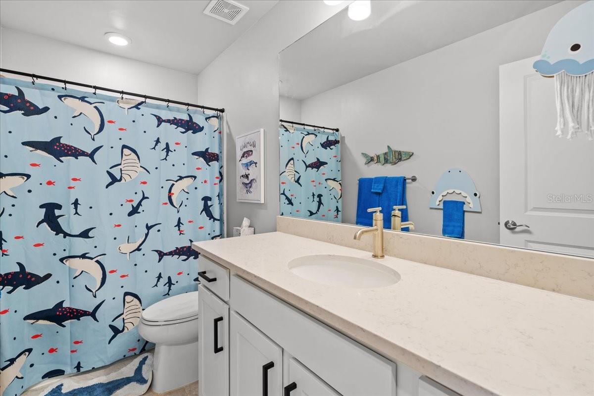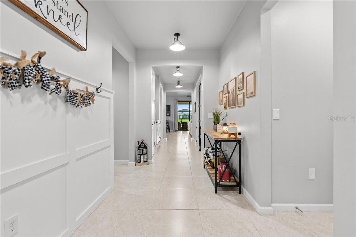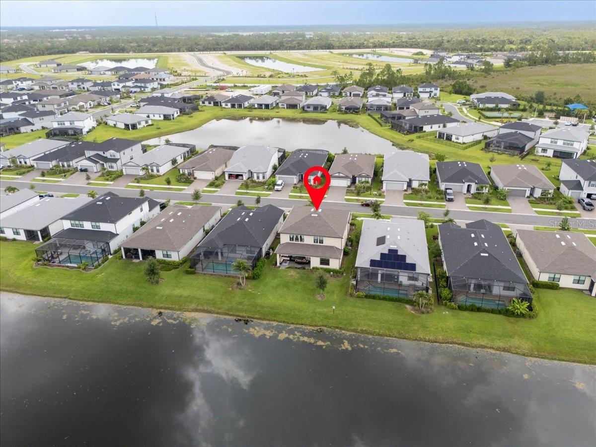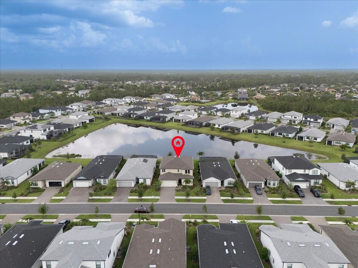 Welcome to this gorgeous five-bedroom (3 of the bedrooms have their own private bathrooms!), four-and-a-half-bath, plus office, tandem 3 car garage, waterfront residence located in the highly sought after community of Cedar Grove in North Port, Florida. Thoughtfully designed with both functionality and a modern farmhouse style, this spacious home offers over 3,400 sqft of versatile living spaces and stunning pond views via multiple large windows and sliders. Immediately upon entrance you begin to see the plethora of upgrades adorning this home. 8' doors throughout the main floor, custom wainscoting, oversized tile flooring, custom cotton greige painted walls, farmhouse light fixtures and more! Located to the right of the entrance, you’ll find a private guest suite complete with its own en-suite bathroom and large walk in closet, perfect for visitors or multigenerational living. Off to the left of the entrance is a mudroom and catch all space! Ahead you'll find a dedicated office with elegant double doors and a custom wood trimmed accent wall, providing the ideal space for working from home or having a quiet study. The expansive main living area features a family room with another custom wood trimmed accent wall, two dining space options with both wine and coffee bars and panoramic views of the serene pond and inviting rear lanai, creating a peaceful backdrop for everyday life. The beautifully appointed kitchen showcases: crisp white cabinetry, 42" uppers with soft close doors and drawers, multiple drawer pullouts, a lazy suzan corner cabinet, under cabinet lighting, quartz countertops, beautiful custom backsplash, stainless steel appliances with a built in oven and microwave, a huge walk-in pantry and is capped off with an oversized island that has farmhouse pendants, an upgraded deep basin sink, and generous prep space, perfect for gatherings and entertaining. There is also a convenient guest half bath with a pedestal sink. But before you head upstairs make sure to look under them to locate the ultimate Jr Man Cave or simply a ton more storage space if desired. Upstairs, a large secondary living area on the upper level is currently set up as an arcade game room, but offers a flexible space for recreation, media, or play. The primary suite offers a great sized primary bedroom, huge walk-in closet, and a luxurious retreat with a seamless glass walk-in shower and a double vanity, providing both comfort and elegance. Three additional spacious bedrooms and two full bathrooms, (one is a private en-suite) provide ample room for family and guests. A sizeable laundry room with additional cabinetry and a big closet makes doing this chore a breeze. The Cedar Grove community is a wonderful family centered place to call home! Low hoa fees include all aspects of lawn maintenance such as mowing, blowing, weeding, trimming, mulching and even irrigation. There is also a 1/2 basketball court, covered playground, serenity viewing area and resort like pool area. This location offers easy access to HWY 41 and I75, parks, highly rated schools, and local amenities including the North Port Water Park. With its well-planned layout, thoughtful upgrades, and scenic surroundings, this property is the perfect place to call home. So don't let your dream home become someone else's address, setup your showing today! * Please check out the virtual tour and fly through video for even more details *