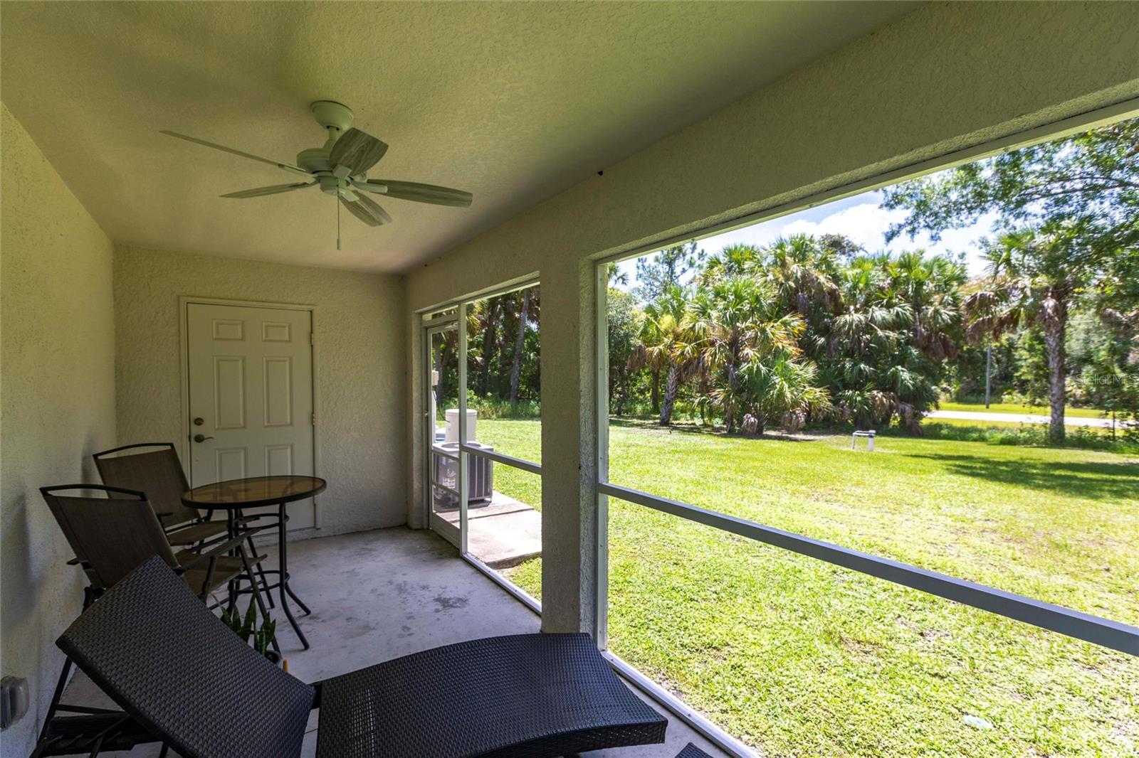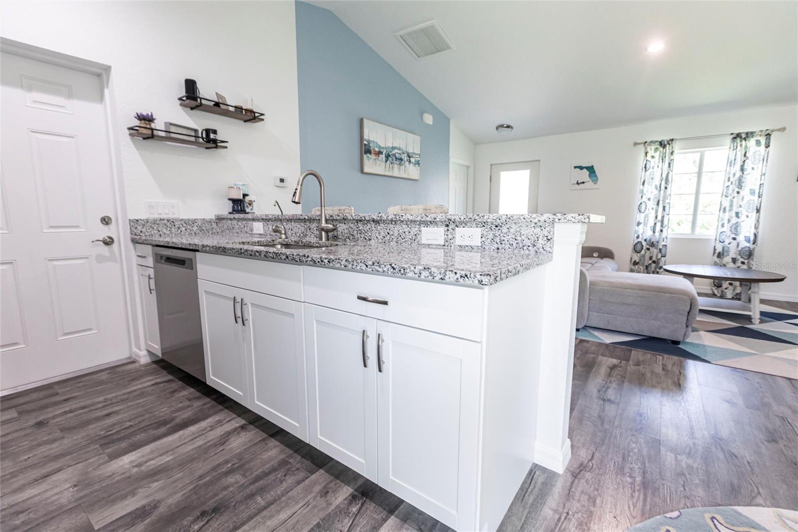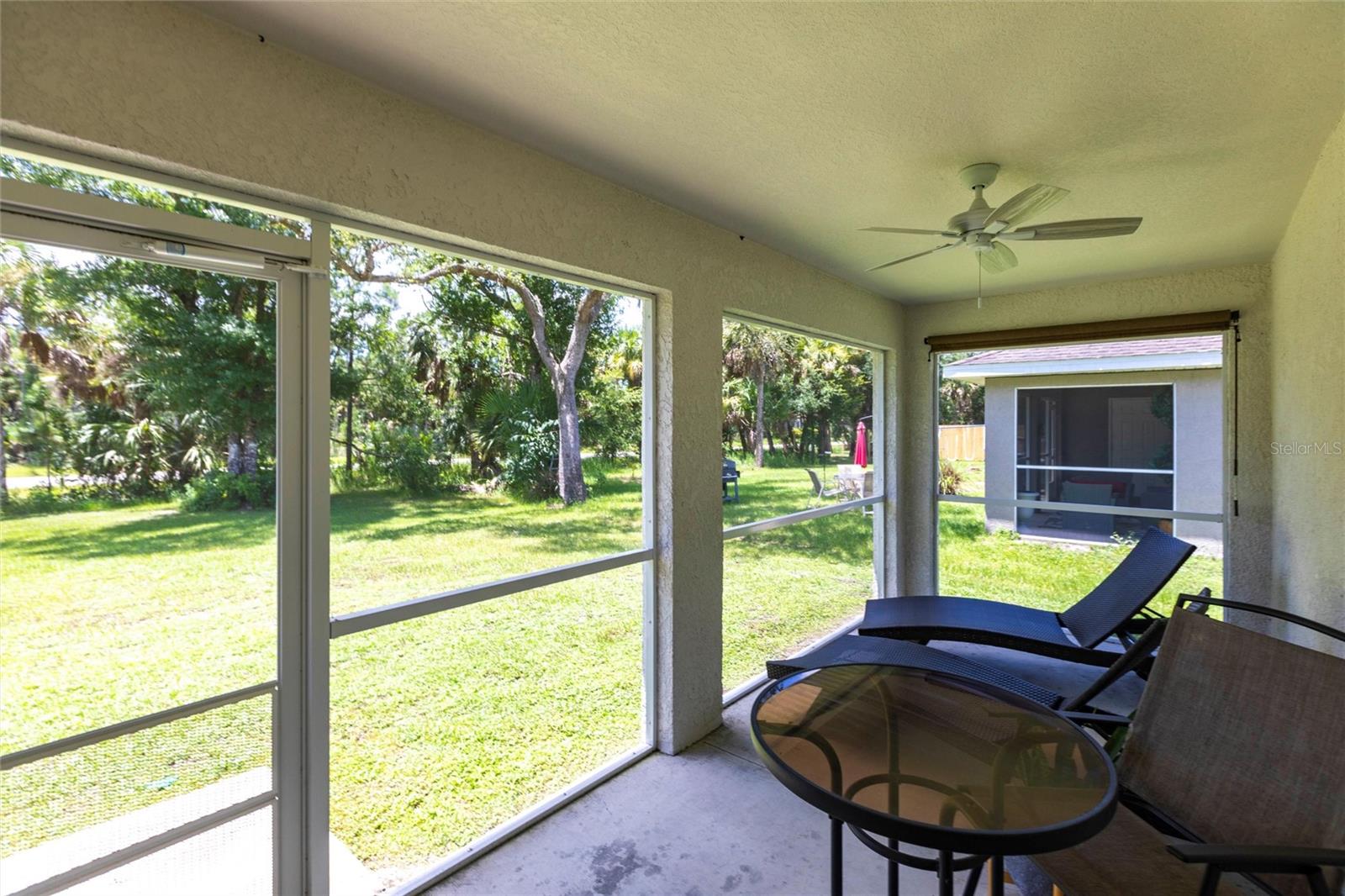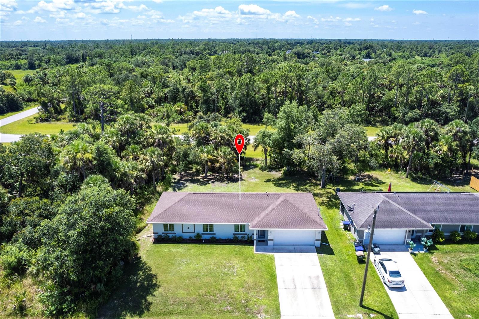 Welcome to your dream home! This beautifully maintained 3-bedroom, 2-bathroom, 2 car garage residence offers 1,192 square feet of modern living space, situated on a spacious 10,000-square-foot lot. Recently updated with a new roof (2023), this home showcases a smart open split floor plan with soaring ceilings, blending style and function effortlessly. As you step inside, you'll immediately notice the wood laminate flooring throughout the home, creating a warm and inviting atmosphere. The kitchen is outfitted with Shaker style wood cabinetry, stainless steel appliances, granite countertops, breakfast bar and is open to the dining/living room. The open-concept design seamlessly connects the kitchen to the spacious living and dining room, that leads to the expansive lanai ideal for outdoor entertaining or simply relaxing. The primary bedroom is a true sanctuary. The en-suite bath includes a walk-in shower, extended vanity, and a convenient linen closet. Two additional well-sized guest bedrooms, each with built-in closets, share a full bathroom, ensuring comfort and privacy for family and visitors. The large backyard is a blank canvas with plenty of space for a pool, providing endless opportunities for outdoor living. Surrounded by lush, wooded land in the back, the property provides a serene and peaceful outdoor retreat. The two-car garage includes a dedicated laundry area, adding convenience and practicality to this already exceptional home. With hurricane shutters, water heater and A/C system (2021), water filtration this home is ready for years of worry-free living. Don’t miss the chance to own this beautifully updated property that blends modern features with ample space and a prime location! Situated in a desirable North Port neighborhood, this home is not located in a flood zone or subject to HOA fees. It’s conveniently close to I-75 and Tamiami Trail, with quick access to some of Florida’s best beaches. **PLEASE ENJOY THE 3D INTERACTIVE VIRTUAL TOUR ASSOCIATED WITH THIS LISTING**