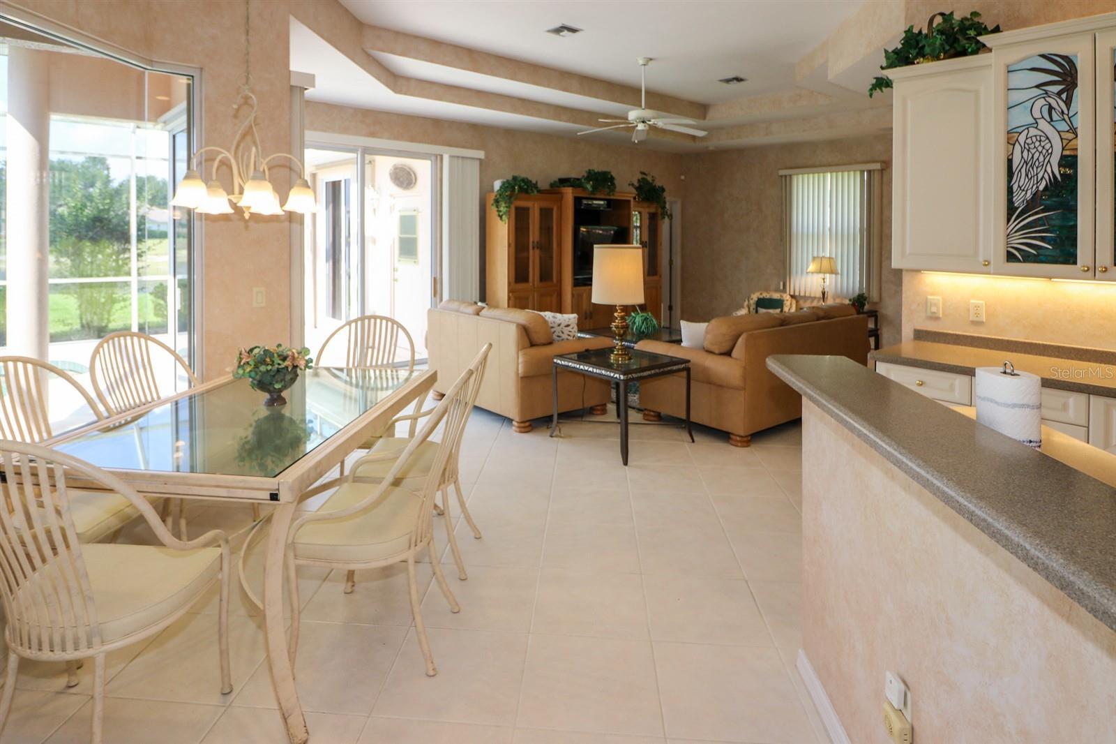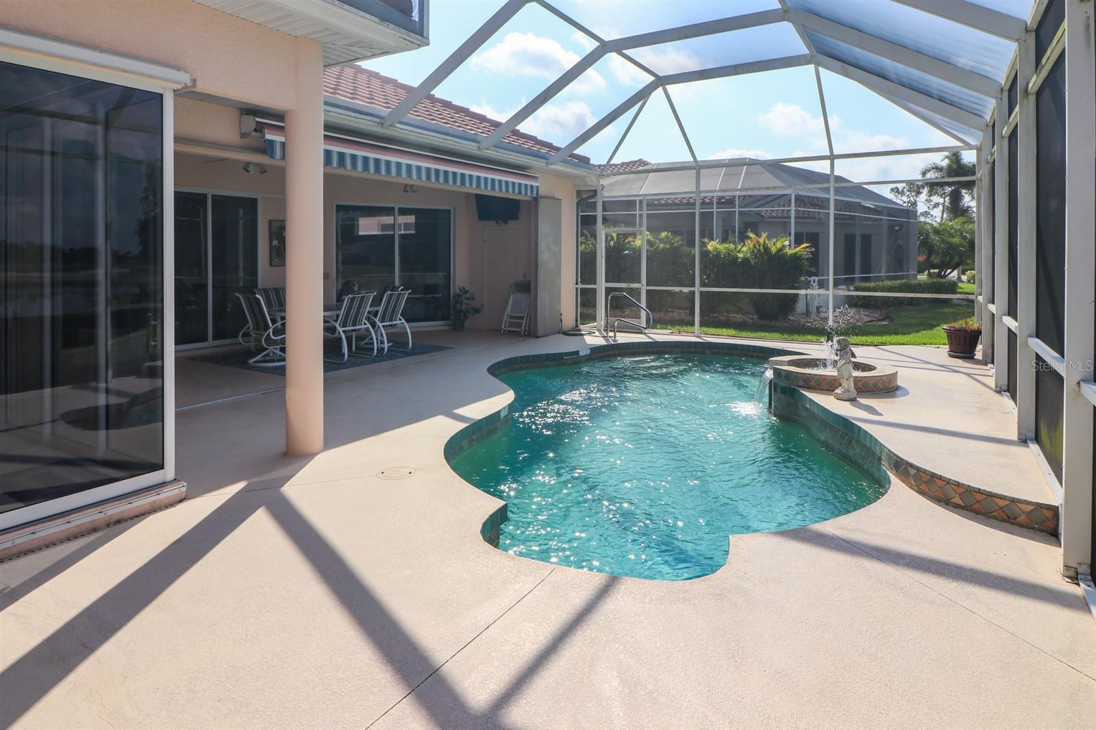 PRICE ADJUUSTMENT! WONDERFUL LOCATION FOR THIS LARGE WATERFRONT HOME IN THE GATED COMMUNITY OF BOBCAT TRAIL! THIS HOME OFFERS SLIDERS IN THE LIVING ROOM, CORNER SLIDERS IN THE FAMILY ROOM AND A LARGE WINDOW IN THE DINETTE AREA FOR BEAUTIFUL PANORAMIC VIEWS OF THE FOUNTAIN POOL AND POND. And you can open them for a nice breeze during the cooler months. This home boasts 3 BR, 3 BA plus a den! Den can also be used as a BR. It is a spacious home with 2,442 sf of living space. The large two-car garage is neat with lots of shelves. There are large, light ceramic tile floors throughout, white cabinets, including a focal cabinet with colorful stain glass which gives a nice Floridan touch. Gorgeous high, coffered ceilings, double entrance doors and separate laundry room. Come see this luxurious home before it is gone. Bobcat trail offers a community center with activities, heated community pool, fitness room, tennis and more. It is close to US41 and a short drive to I75. There is plenty of shopping and restaurants to experience and it is a short drive to the SWFL beaches.