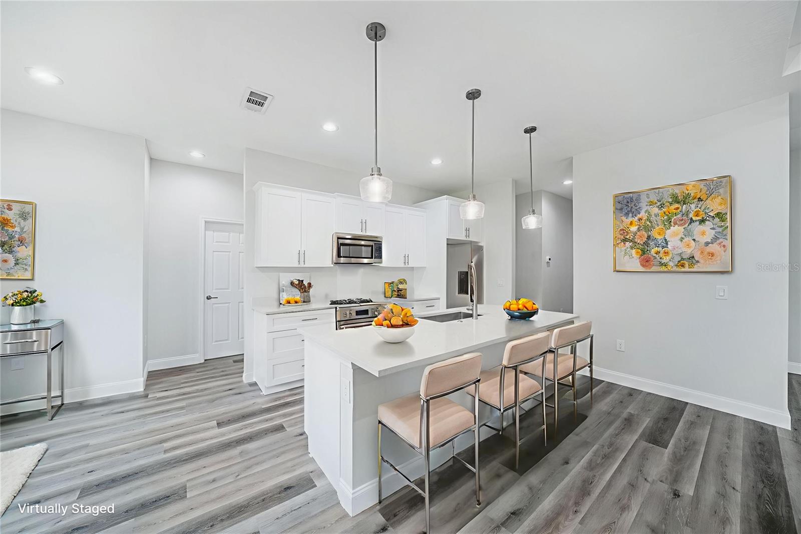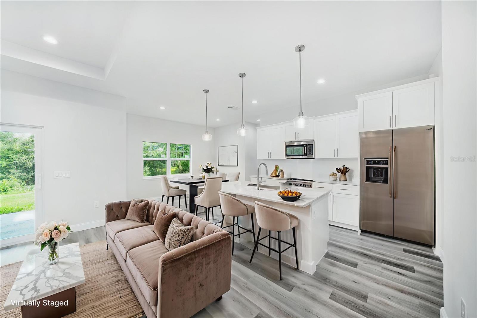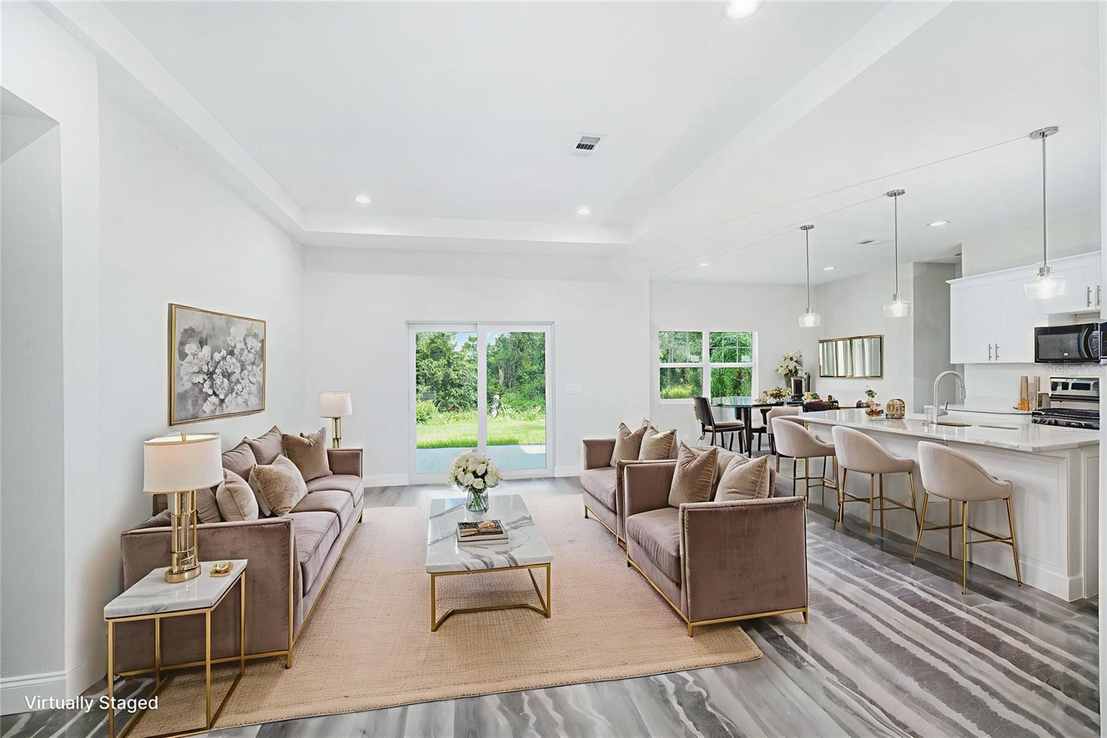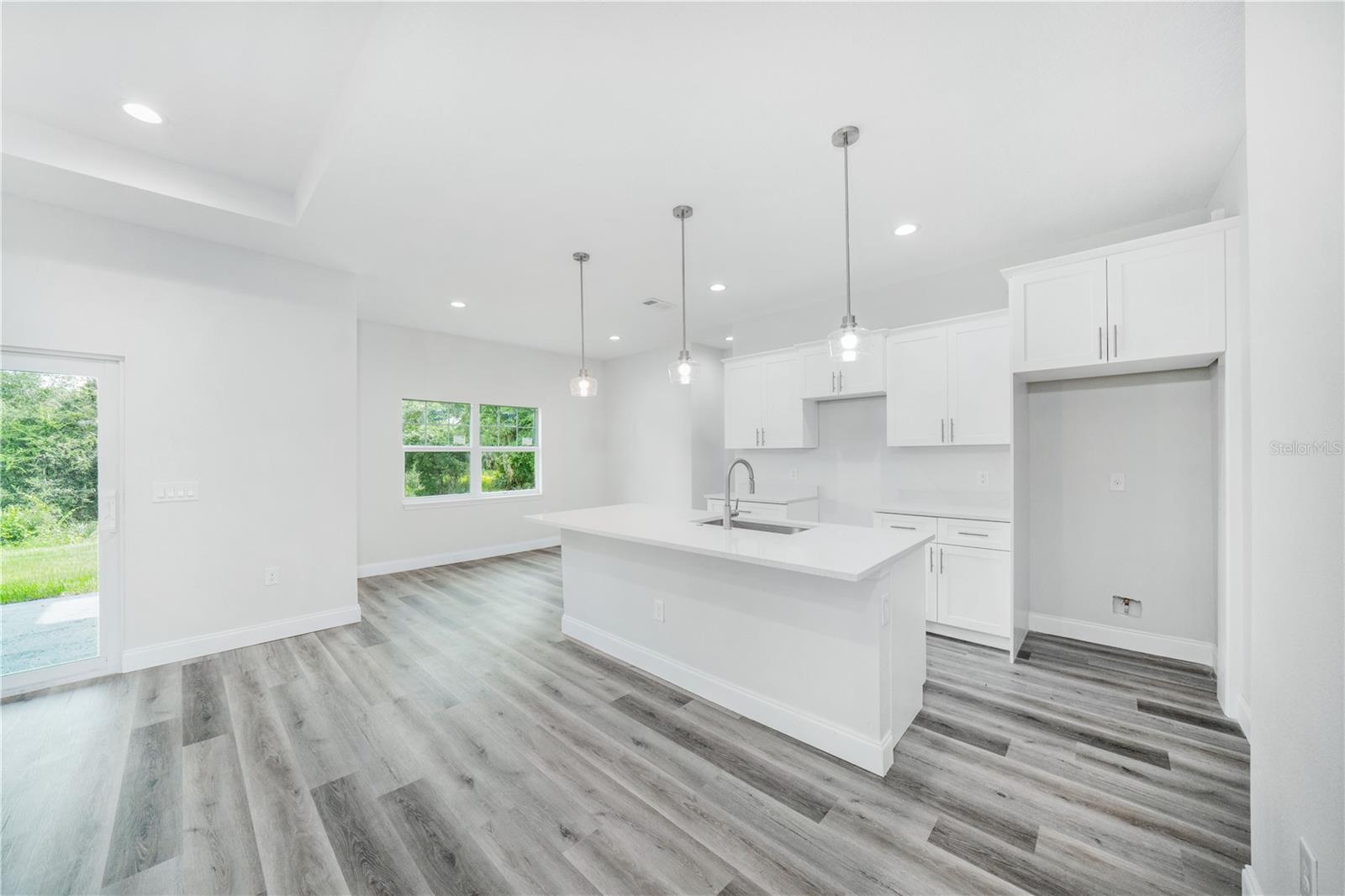 Step into this stunning custom-built home where thoughtful design meets elegant finishes. From the moment you arrive, you'll appreciate the attention to detail—from sleek stainless steel appliances to designer lighting, HIGH CEILINGS and a step/tray in the living area and a luxurious primary bath that exudes spa-like tranquility. Start your mornings soaking in the sunrise through storm/hurricane IMPACT glass doors or enjoy coffee on the peaceful rear patio. The heart of the home is a spacious open-concept great room, perfect for gathering and entertaining. A chef’s dream kitchen features a large island and a generous walk-in pantry offering ample storage for all your culinary needs. This home is designed for comfort and convenience, featuring THREE FULL BATHROOMS, giving each bedroom its own private retreat. Durable luxury vinyl flooring flows throughout, combining style with low-maintenance living. Built with safety and peace of mind in mind, you'll enjoy IMPACT windows and doors, offering storm protection and insurance savings. Located in one of the fastest-growing cities in the U.S., this North Port gem is just a short drive from the Atlanta Braves Spring Training Stadium, the white-sand beaches of Englewood and Venice, and the exciting new Sunseeker Resort. Live the Florida lifestyle in a home that has it all—comfort, beauty, and unbeatable location.