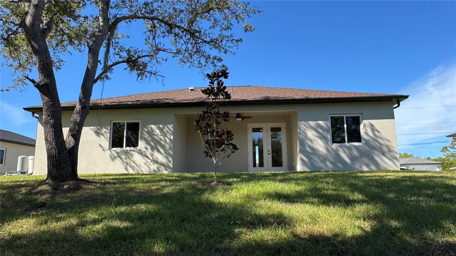 FRESHWATER CANAL VIEW. Brand-new modern luxury home featuring 3 bedrooms, 2 bathrooms, and a fully enclosed office (optional 4th BR) with 9.4' ceilings. Located in a prime area with no HOA and no flood zone. Interior showcases Spanish porcelain tile throughout, IMPACT WINDOWS AND DOORS , and an open-concept living space with large double doors leading to a tiled lanai overlooking a peaceful freshwater canal. The chef’s kitchen includes quartz countertops, 42" soft-close cabinets, under/over cabinet lighting, stainless steel appliances, range hood, and stylish backsplash. The primary suite offers a walk-in closet and spa-like en-suite bathroom with a double vanity, linen closet, and walk-in shower with a bench. Both bathrooms have full-length tiled shower walls. MOEN plumbing fixtures are featured throughout the entire home for consistent quality and style. Additional highlights: Interior laundry room with a sink, seamless gutters, quartz windowsills, and designer lighting throughout.