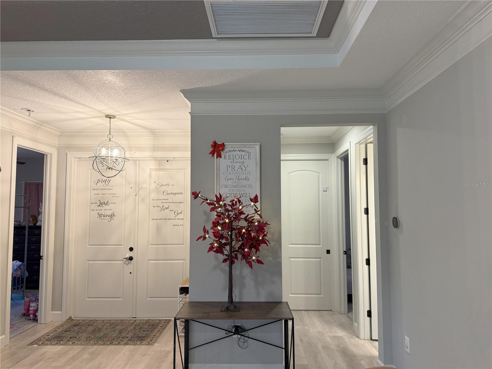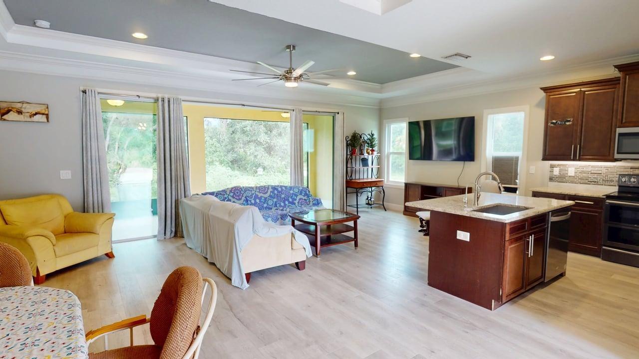 One or more photo(s) has been virtually staged. Experience the perfect blend of modern design and serene privacy in this stunning 3-bedroom, 2-bathroom, 2-car garage home, built in 2021 by Zwiercan Homes. Offering 1,671 sq ft of open-concept living space, this home features a thoughtfully designed split floor plan, ideal for both comfort and functionality. All bedrooms include generous walk-in closets, with the master suite boasting a massive walk-in closet accessible directly through the en-suite bathroom. Additional storage is abundant with an entryway closet, linen closet, and dedicated spaces in the laundry room and garage. The chef-inspired kitchen is designed for both style and efficiency, featuring a large walk-in pantry, a kitchen island, and ample cabinetry to keep everything organized and out of sight. High 10’ tray ceilings with elegant crown molding define the expansive Great Room, which opens seamlessly onto a spacious screened-in lanai. Enjoy peaceful, panoramic views of nature with no neighbors behind—an ideal setting for morning coffee or evening relaxation. The luxurious master suite also offers direct lanai access and includes dual vanities, a garden tub, a doorless glass-enclosed shower, private water closet, and an impressively large walk-in closet that spans the entire rear wall of the suite. Situated on a private corner lot in a quiet, desirable neighborhood (flood zone X), this home offers easy access to everything. You're just 8 minutes from the nearest grocery store and within close reach of multiple shopping centers, I-75 access points, and top destinations including Sarasota, Fort Myers, and beautiful Gulf Coast beaches—all less than an hour away.