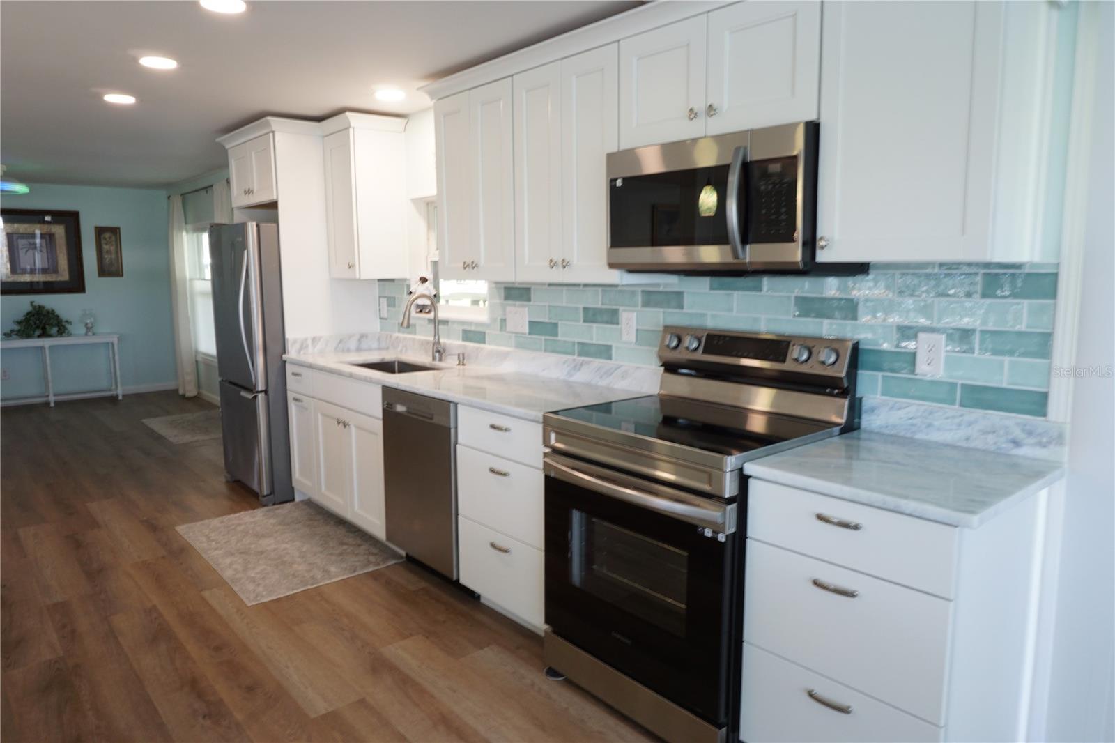 GULF ACCESS FOR UNDER $300,000! Come explore the charm of this beautifully UPDATED and TURN-KEY furnished WATERFRONT home located in the ever so popular Lazy River Village 55+ gated golf cart friendly community in North Port. You have DIRECT BOATING ACCESS TO OPEN WATER from the home’s own dock out to the Myakka River, Charlotte Harbor and the Gulf. You will enjoy the spectacular water views from both sides of the home, with the most amazing SW Florida sunsets from your new screened lanai in the back yard, as well as peaceful sunrises out the front over Lake Antigua across the street from your driveway that has park benches to sit and relax while listening to the sound of the large fountain. The home features a light and bright open floor plan with great water views out the windows, custom top-down/bottom-up cellular shades throughout, a freshly painted interior (walls and ceiling are actual drywall), a new HVAC system (2023) with a Smart Home thermostat, new insulation, new carport, extended driveway, new roof (2023), new ¾” plywood floor decking throughout the home for ensured stability and topped with new luxury vinyl flooring, new kitchen cabinets with soft close doors and drawers with some pullouts, high end custom quartz counters, new range, microwave and dishwasher, new bathroom cabinets with soft close doors and drawers, new concrete sidewalk from the back door to the dock. Golf cart is negotiable! Amenities at Lazy River Village include a swimming pool and hot tub, a large up-to-date clubhouse with so many activities for everyone such as dancing, quilting, sewing, yoga, art, music, pool aerobics, cornhole, among many others, an exercise room loaded with workout equipment to help keep you fit, a reading library, two craft rooms, card game room, billiards room, tennis, bocce and pickle-ball courts, pitching/putting green with outdoor driving net, shuffleboard court, horseshoe pitch, marina (38 docks, boat ramp and 2 canoe/kayak racks) and a busy, well-stocked woodshop with a wide variety of machinery for tackling most projects you may have. Low monthly fee of $276 includes access to all these amenities AND lawn maintenance and cable/Wi-Fi. There is an additional low fee for use of the woodshop, marina docks/kayak racks, and secured onsite storage yard for trailers, boats and RVs. This is a super active and friendly neighborhood with a lot of opportunities to be social and get involved. The community is within a short drive to shopping, dining, beaches, golfing, MLB Spring Training Parks for the Braves and Rays, I-75 exits, and Sarasota and Punta Gorda Airports. Still reading this? You need to come see it for yourself and get ready to make it your new address!