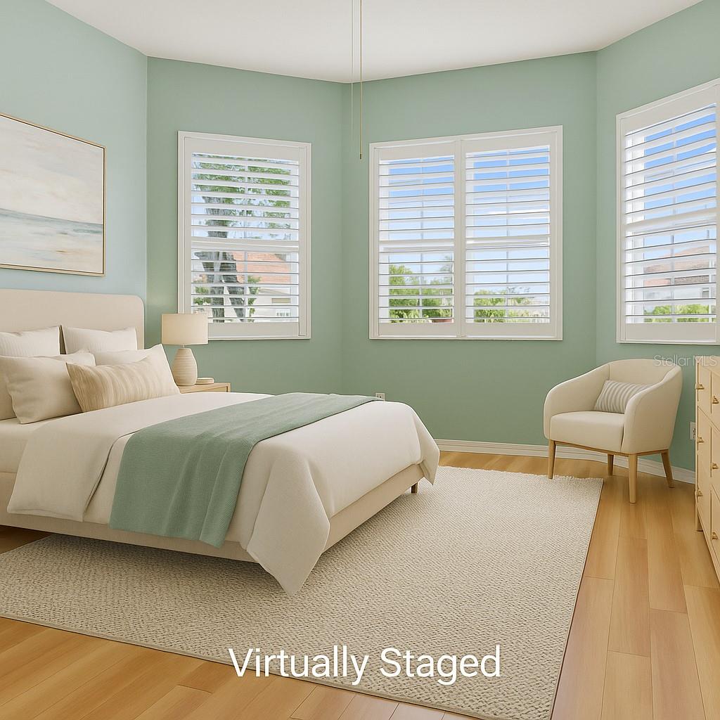 Welcome to Bobcat Trail! This beautifully maintained 3-bedroom, 2-bath home offers over 2,100 sq. ft. of living space with serene water views and a bright, open floor plan designed for comfort and style. The spacious primary suite is a true retreat, featuring three closets—one a walk-in—plus a fourth in the en-suite, plantation shutters, and direct lanai access. The en-suite bath includes a garden tub, oversized walk-in shower, water closet, and dual sinks. Two additional bedrooms are generously sized for family or guests. Step inside and you’ll immediately notice the soaring ceilings, elegant double tray ceiling with crown molding, and updated lighting that enhances the home’s modern feel. The home is carpet-free throughout and boasts a new roof (2023), new A/C (2023), new hot water heater (2020), and accordion hurricane shutters for peace of mind. The updated kitchen features painted wood cabinetry, twin pantry closets, granite countertops, a double-basin sink, and a gas range—perfect for the home chef. Multiple dining options include a formal dining room, breakfast bar, and cozy dinette, making entertaining easy and enjoyable. Outdoors is where this home truly shines. A huge screened lanai offers the ideal space for relaxing or entertaining while enjoying the calming water view. The property is surrounded by beautiful mature landscaping that enhances curb appeal and privacy. The enlarged driveway, widened by six feet, adds both convenience and style. With no private pool to maintain, you’ll appreciate the low-maintenance lifestyle. The oversized 2-car garage also provides ample storage. And best of all a quick close is possible! Living in the gated community of Bobcat Trail means you’ll enjoy access to amenities including a heated community pool, fitness center, and clubhouse. Best of all, the low HOA fee of just $218/month covers lawn care, keeping life simple and stress-free. The annual tax bill includes the CDD fee of $2,047.74, and this home is located in Flood Zone X, so no flood insurance is required by lenders. This home combines thoughtful upgrades, energy efficiency, and a desirable location in one of North Port’s most sought-after communities.