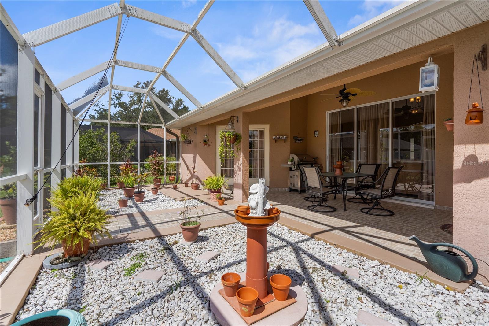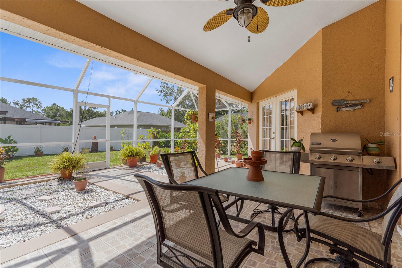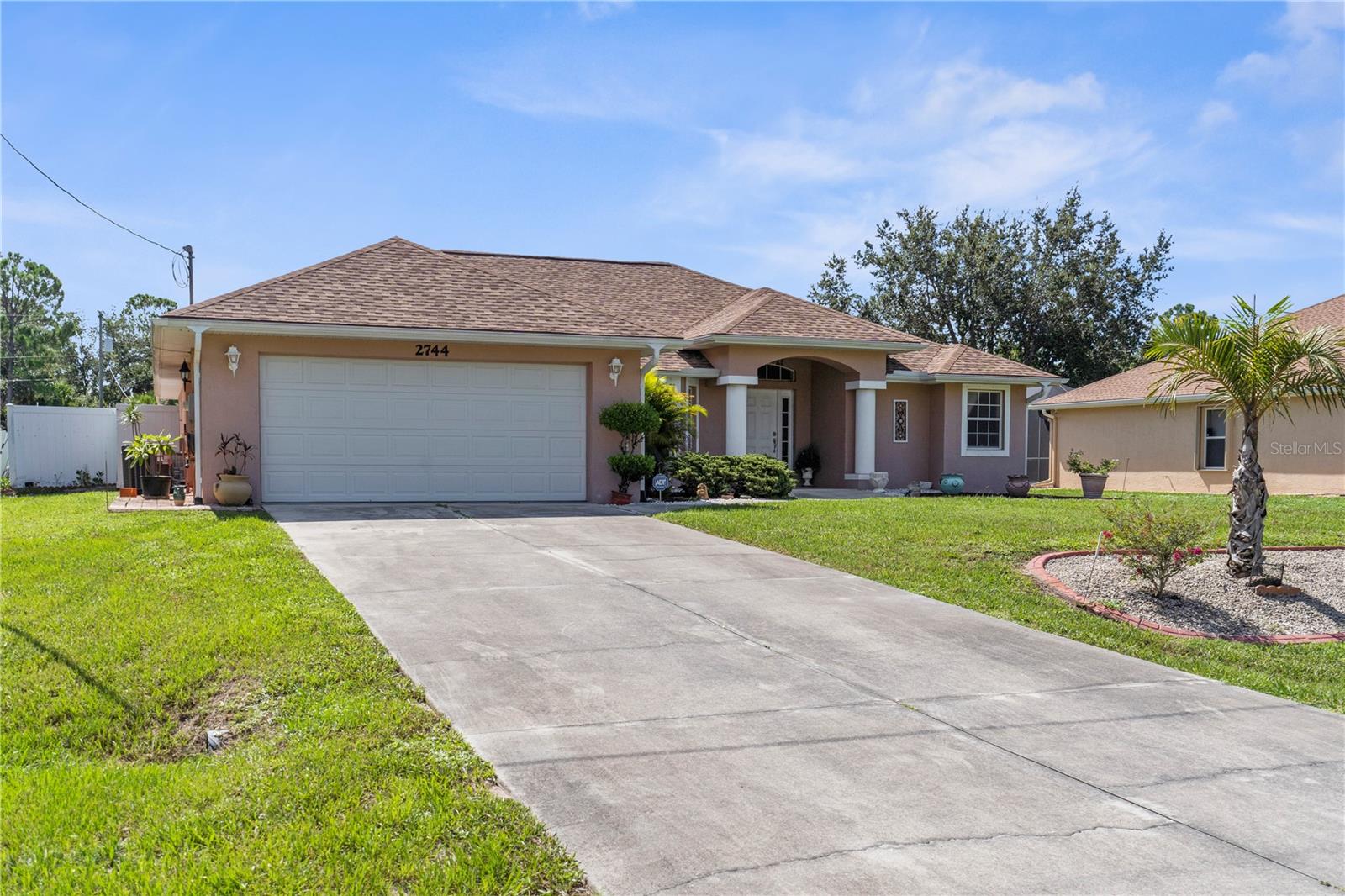 Welcome to your Florida oasis! This beautifully maintained 3-bedroom, 2-bathroom, 2,227 sq. ft. home with a split floor plan offers the perfect blend of comfort, functionality, and style. Nestled on a spacious lot in North Port, this property is being offered along with the adjacent lot, providing additional space, privacy, or the opportunity to build in the future. Inside, the home features two large living areas—a formal living room with soaring ceilings and a cozy family room off the kitchen—perfect for entertaining or relaxing. The bright, open kitchen is complete with a breakfast bar, ample cabinet space, and a breakfast nook overlooking the backyard. A formal dining room with a large picture window adds charm and is the perfect setting for family meals or gatherings. The private owner’s suite includes tray ceilings, French doors to the lanai, two walk-in closets, and a spacious ensuite bathroom with dual sinks, a soaking tub, and a separate shower. Two additional bedrooms with generous closets and a full guest bath provide comfortable accommodations for family or guests. Step outside to the screened-in lanai and extended patio, ideal for year-round Florida living. The backyard is fully fenced, landscaped, and even includes a utility shed for additional storage. Throughout the home you’ll notice the airy vaulted ceilings, tile flooring in the main living areas, a dedicated laundry room with storage, and an attached two-car garage. Situated in a quiet neighborhood, yet conveniently close to shopping, dining, I-75, and only a short drive to the beautiful Gulf beaches, this home offers both peace and accessibility. With 2,887 total sq. ft. and the rare bonus of an extra lot included, this property truly stands out as a unique opportunity in North Port. Schedule your private showing today!