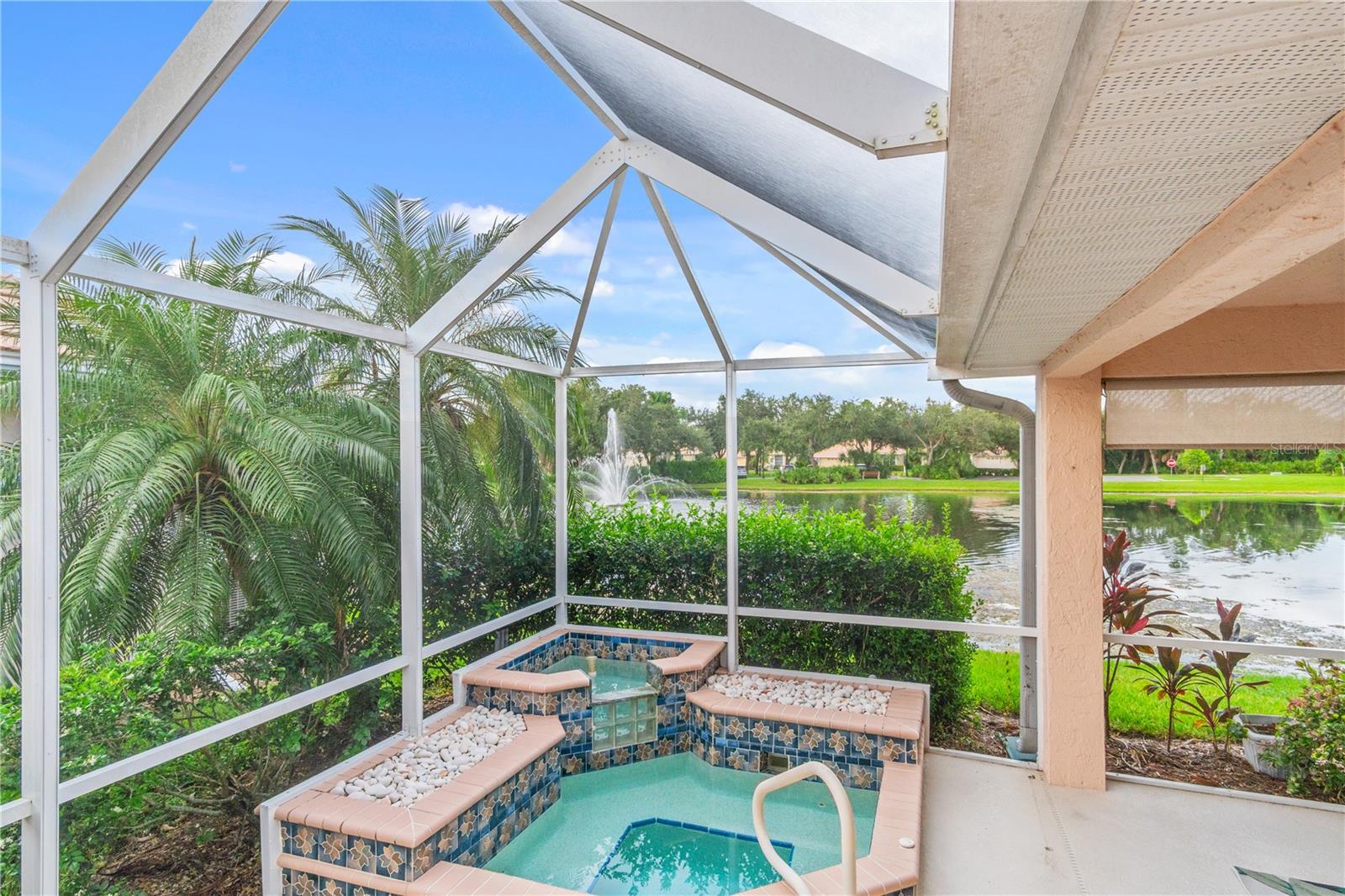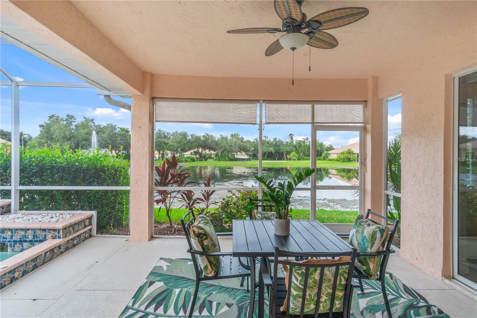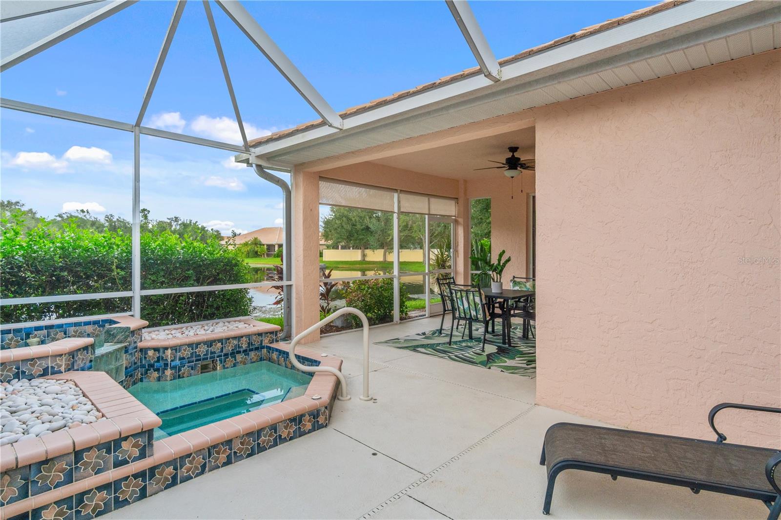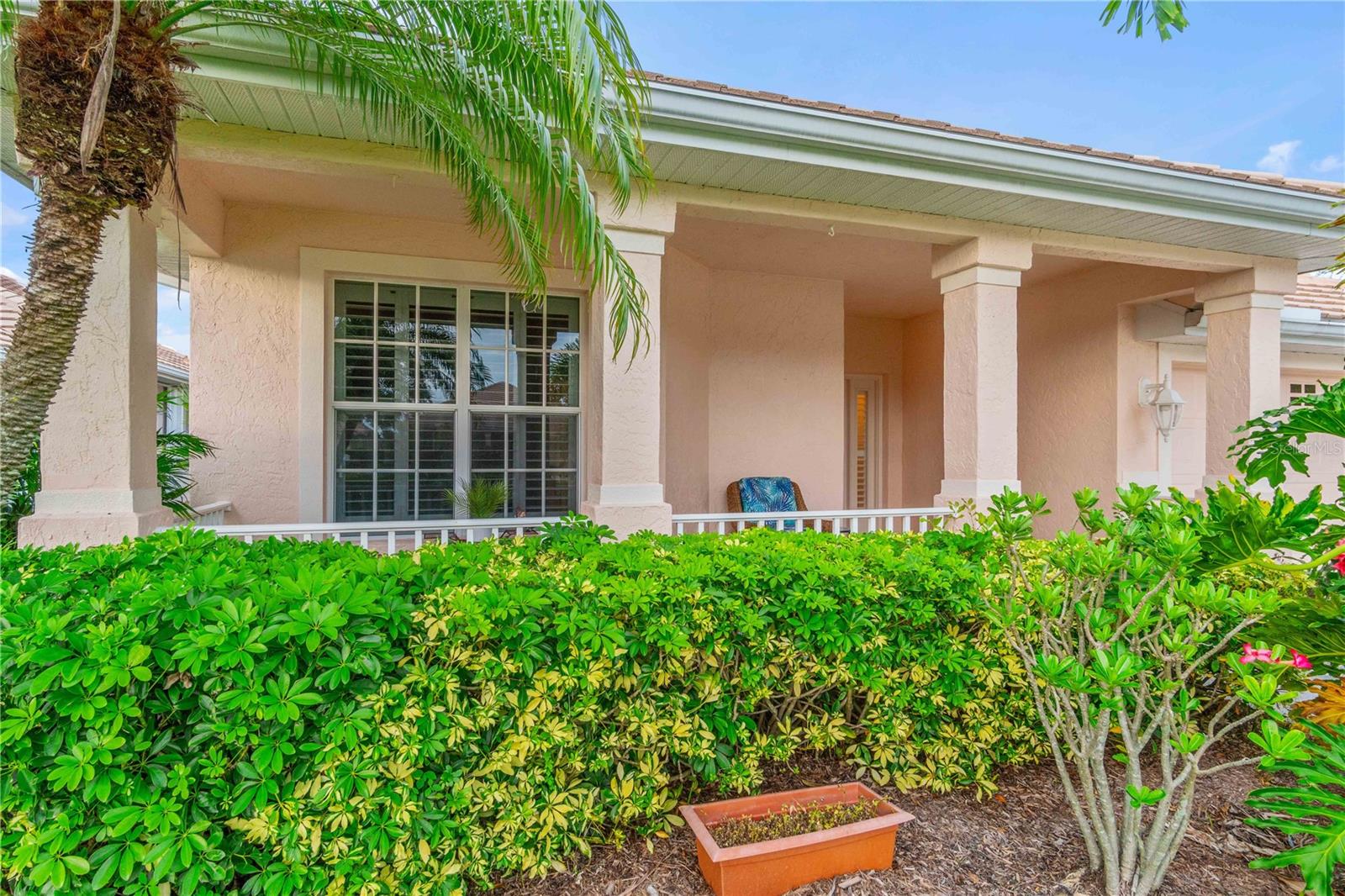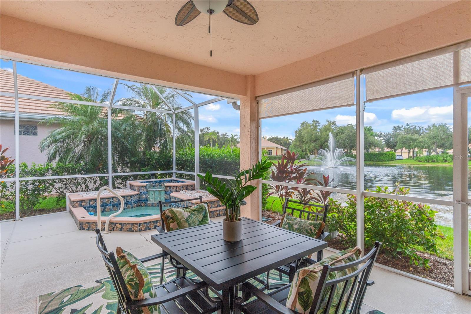 Enjoy this private gated and beautifully landscaped community with sidewalks, pond fountains, park benches, and lantern-lit streets. This recently painted, meticulously maintained home is at the end of a private cul-de-sac and offers the perfect blend of comfort and style. Inside, you’ll find move-in ready 3 bedrooms, 2 full baths, impact glass windows, plantation window shutters, crown molding, tray ceilings, and updated plank ceramic tile flooring. A full-sized laundry room with cabinets and utility sink adds convenience. The covered front porch leads into a spacious foyer with arched doorways, tray ceiling and welcoming wet bar. The well-equipped kitchen is designed for entertaining, featuring ample cabinets, pull out sliding shelving, a serving island, breakfast bar, tray ceiling and dinette area. The open living space has ceramic tile plank flooring and flows seamlessly to the outdoors through triple sliding glass doors. Step onto the expansive wrap-around screened lanai with a private spa looking out to the attractive pond with lighted fountain—ideal for morning coffee or relaxing evenings. The spacious master suite with double sliders offers lanai access, a walk-in closet, and a private en-suite bath with double sinks and a Roman walk-in shower. A split-bedroom layout ensures privacy for guests, with two additional bedrooms and a conveniently located full guest bath. Quality curb appeal includes a tile roof, mature landscaping, inviting front porch, long and wide expanded driveway. Community amenities include resort-style tropical pool with sundeck, clubhouse with fitness room, library, and billiards, patio with tables and umbrellas. Whether living here full-time or seasonally, you’ll enjoy a low-maintenance lifestyle with low HOA fees, no CDD fees, and X flood zone. Centrally located just 15 minutes to Wellen Park, golf, beaches, MLB spring training baseball, boat launches, world class fishing, biking and walking paths, shopping, and medical facilities.