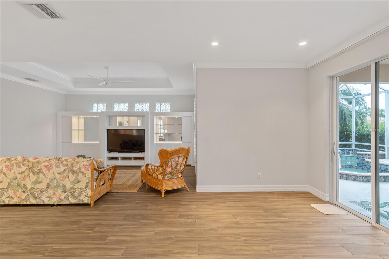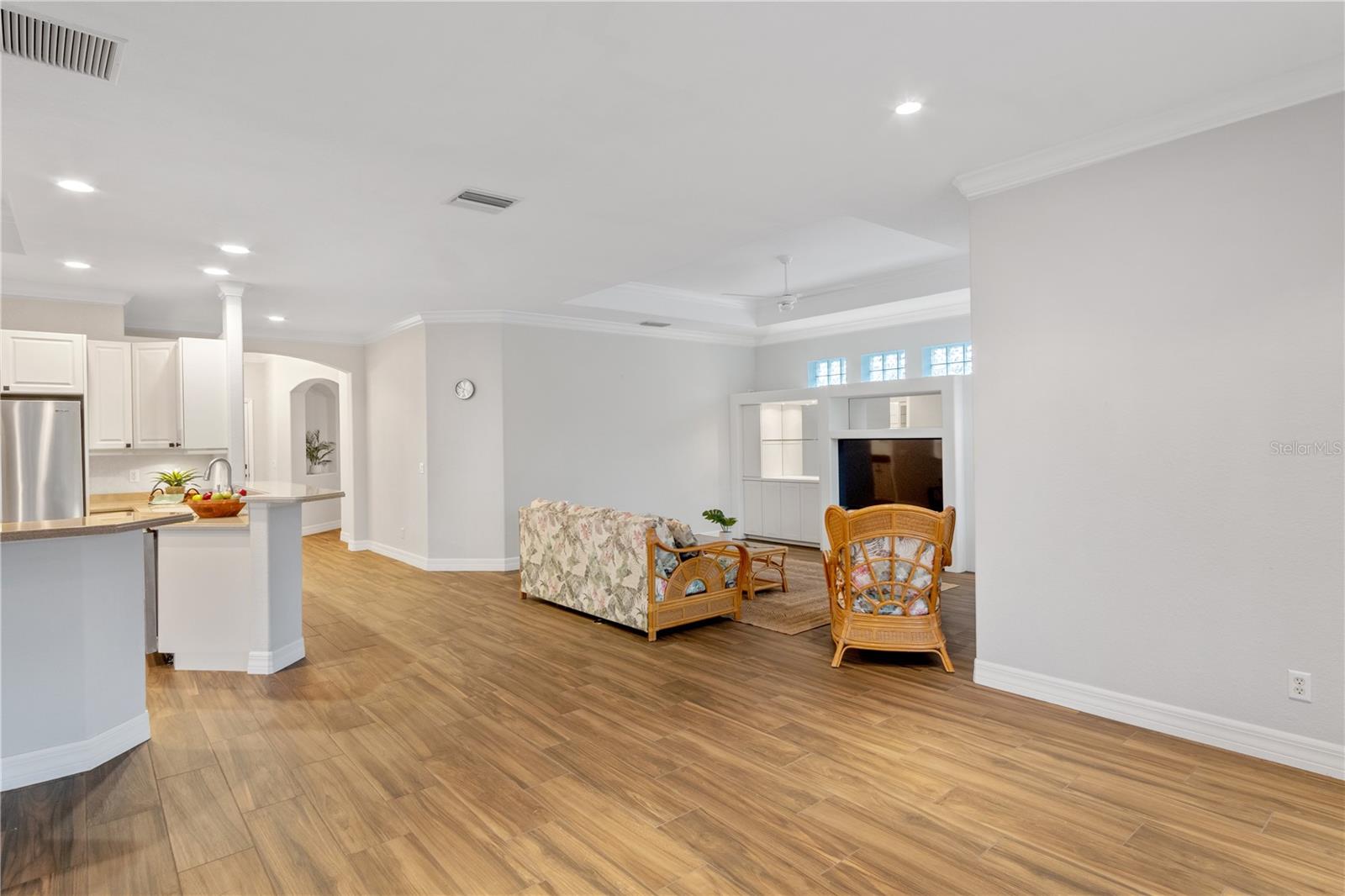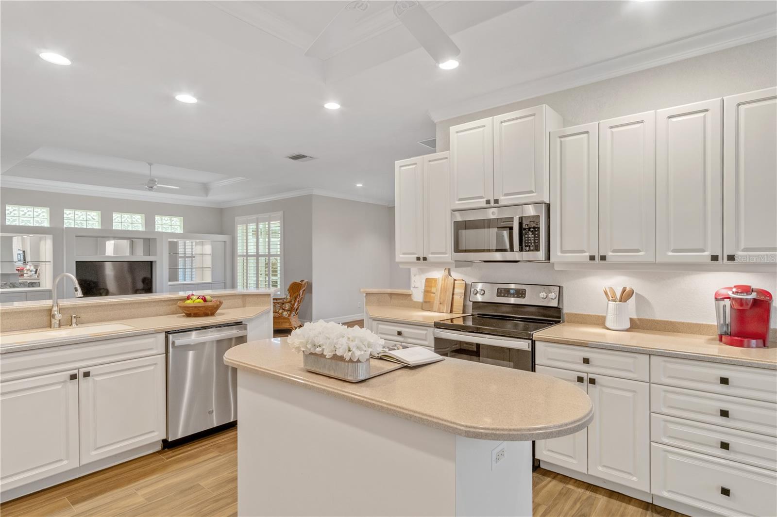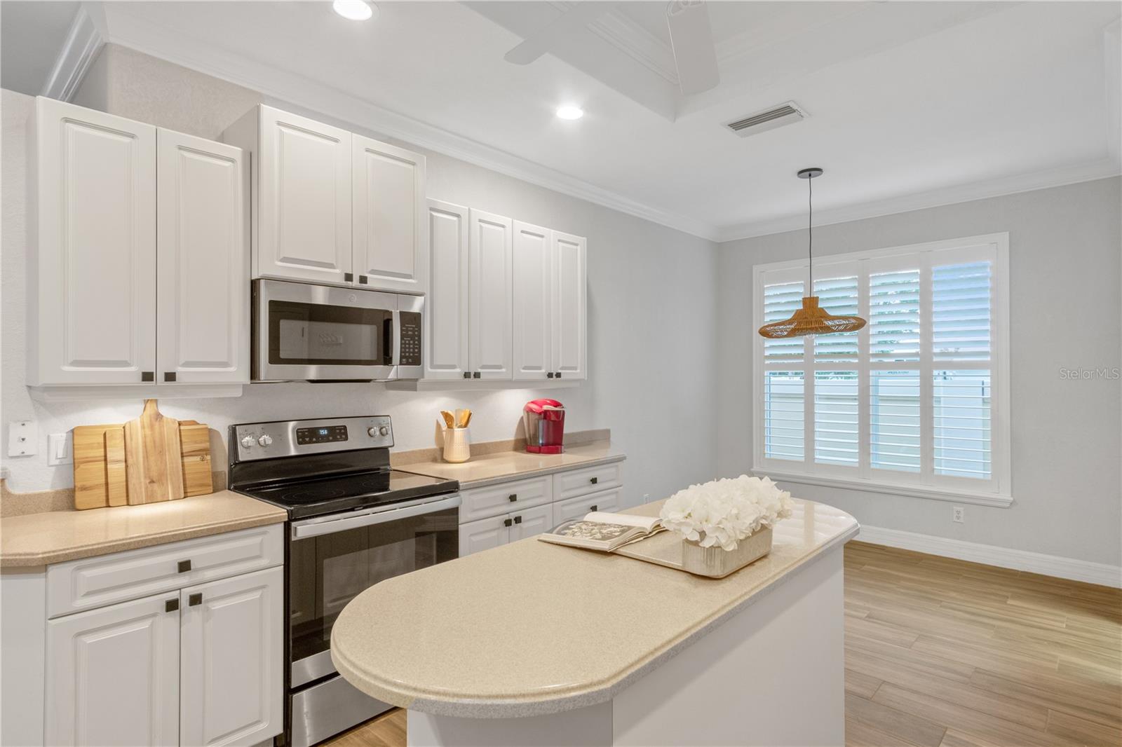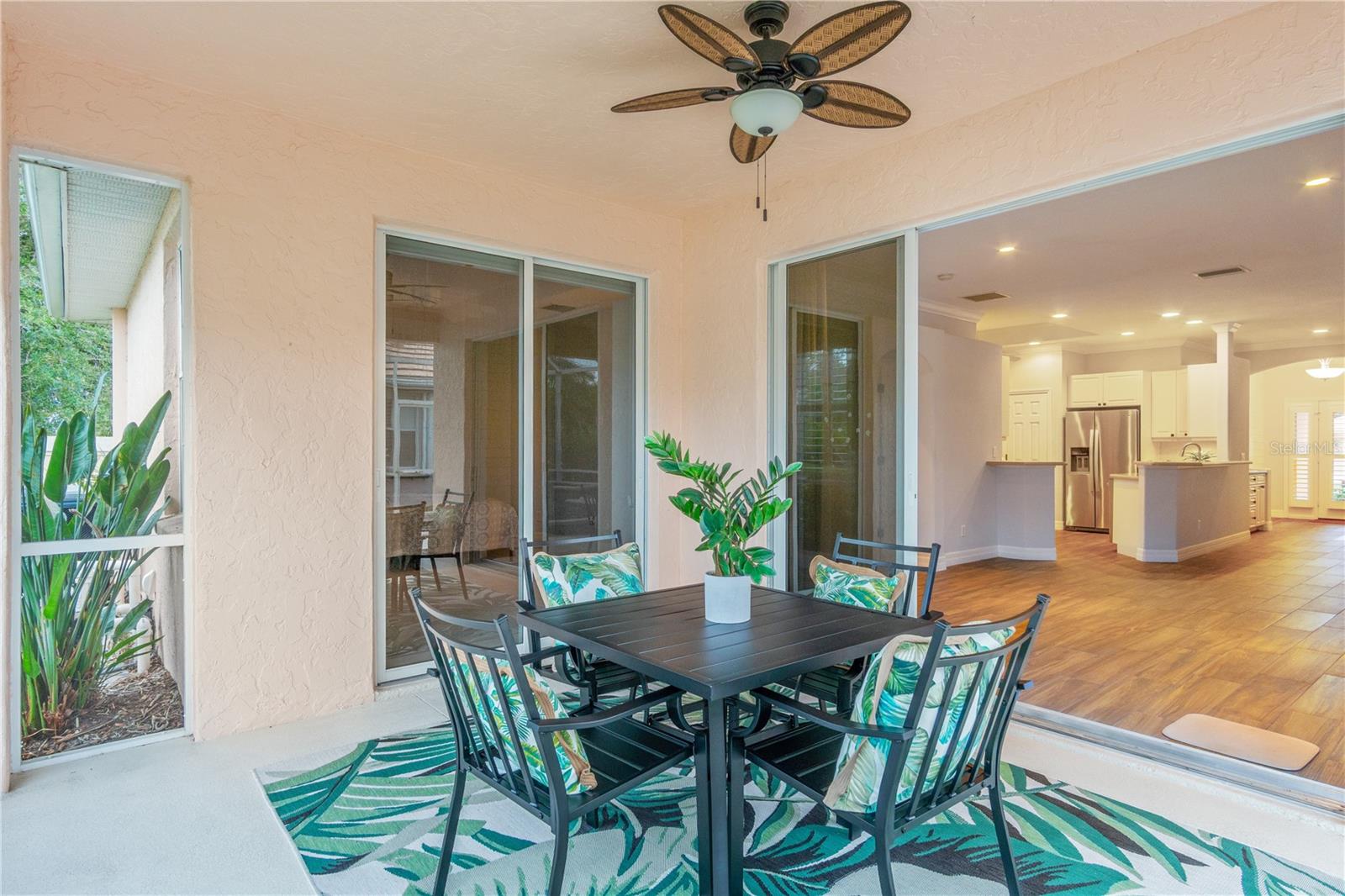 Enjoy this private gated and beautifully landscaped community with sidewalks, pond fountains, park benches, and lantern-lit streets. This recently painted, meticulously maintained home is at the end of a private cul-de-sac and offers the perfect blend of comfort and style. Inside, you’ll find move-in ready 3 bedrooms, 2 full baths, impact glass windows, plantation window shutters, crown molding, tray ceilings, and updated plank ceramic tile flooring. A full-sized laundry room with cabinets and utility sink adds convenience. The covered front porch leads into a spacious foyer with arched doorways, tray ceiling and welcoming wet bar. The well-equipped kitchen is designed for entertaining, featuring ample cabinets, pull out sliding shelving, a serving island, breakfast bar, tray ceiling and dinette area. The open living space has ceramic tile plank flooring and flows seamlessly to the outdoors through triple sliding glass doors. Step onto the expansive wrap-around screened lanai with a private spa looking out to the attractive pond with lighted fountain—ideal for morning coffee or relaxing evenings. The spacious master suite with double sliders offers lanai access, a walk-in closet, and a private en-suite bath with double sinks and a Roman walk-in shower. A split-bedroom layout ensures privacy for guests, with two additional bedrooms and a conveniently located full guest bath. Quality curb appeal includes a tile roof, mature landscaping, inviting front porch, long and wide expanded driveway. Community amenities include resort-style tropical pool with sundeck, clubhouse with fitness room, library, and billiards, patio with tables and umbrellas. Whether living here full-time or seasonally, you’ll enjoy a low-maintenance lifestyle with low HOA fees, no CDD fees, and X flood zone. Centrally located just 15 minutes to Wellen Park, golf, beaches, MLB spring training baseball, boat launches, world class fishing, biking and walking paths, shopping, and medical facilities.
