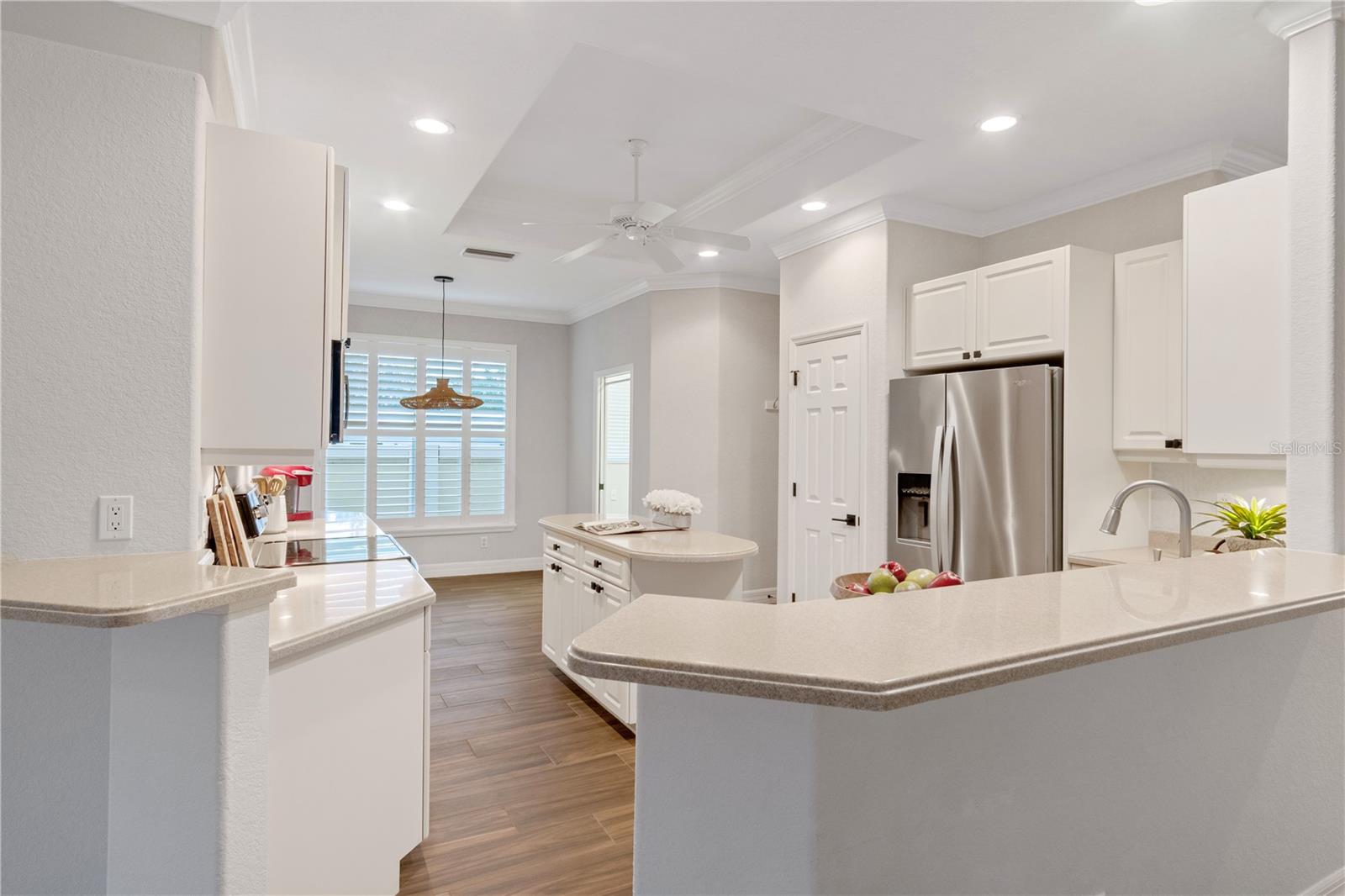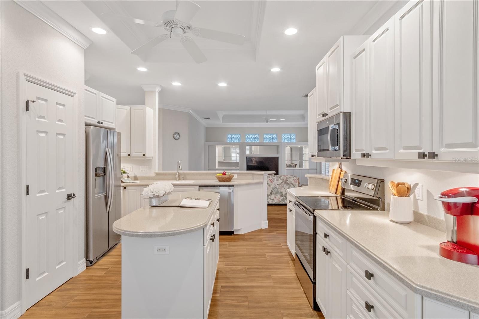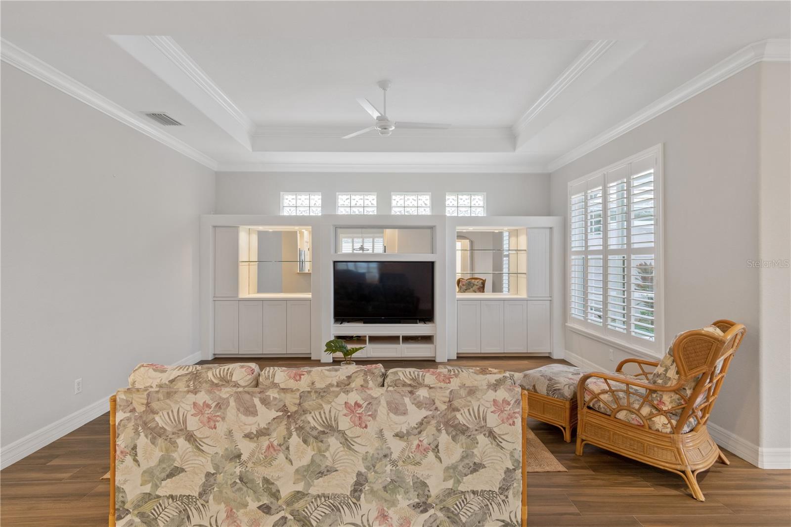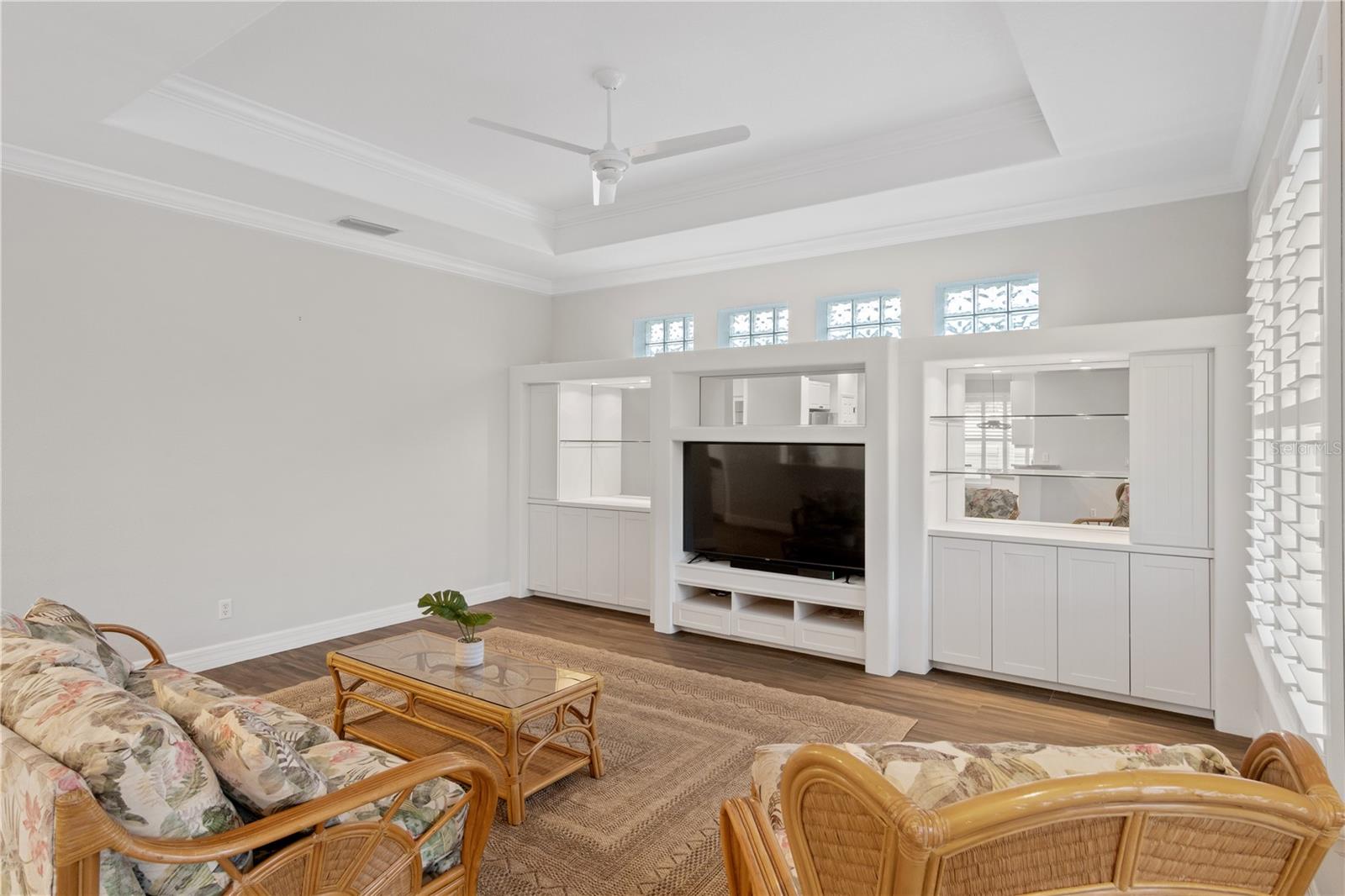 Enjoy this private gated and beautifully landscaped community with sidewalks, pond fountains, park benches, and lantern-lit streets. This recently painted, meticulously maintained home is at the end of a private cul-de-sac and offers the perfect blend of comfort and style. Inside, you’ll find move-in ready 3 bedrooms, 2 full baths, impact glass windows, plantation window shutters, crown molding, tray ceilings, and updated plank ceramic tile flooring. A full-sized laundry room with cabinets and utility sink adds convenience. The covered front porch leads into a spacious foyer with arched doorways, tray ceiling and welcoming wet bar. The well-equipped kitchen is designed for entertaining, featuring ample cabinets, pull out sliding shelving, a serving island, breakfast bar, tray ceiling and dinette area. The open living space has ceramic tile plank flooring and flows seamlessly to the outdoors through triple sliding glass doors. Step onto the expansive wrap-around screened lanai with a private spa looking out to the attractive pond with lighted fountain—ideal for morning coffee or relaxing evenings. The spacious master suite with double sliders offers lanai access, a walk-in closet, and a private en-suite bath with double sinks and a Roman walk-in shower. A split-bedroom layout ensures privacy for guests, with two additional bedrooms and a conveniently located full guest bath. Quality curb appeal includes a tile roof, mature landscaping, inviting front porch, long and wide expanded driveway. Community amenities include resort-style tropical pool with sundeck, clubhouse with fitness room, library, and billiards, patio with tables and umbrellas. Whether living here full-time or seasonally, you’ll enjoy a low-maintenance lifestyle with low HOA fees, no CDD fees, and X flood zone. Centrally located just 15 minutes to Wellen Park, golf, beaches, MLB spring training baseball, boat launches, world class fishing, biking and walking paths, shopping, and medical facilities.