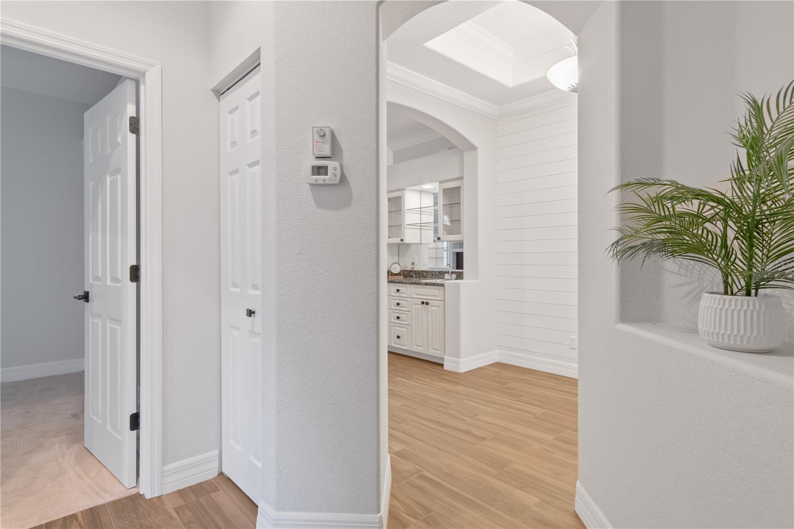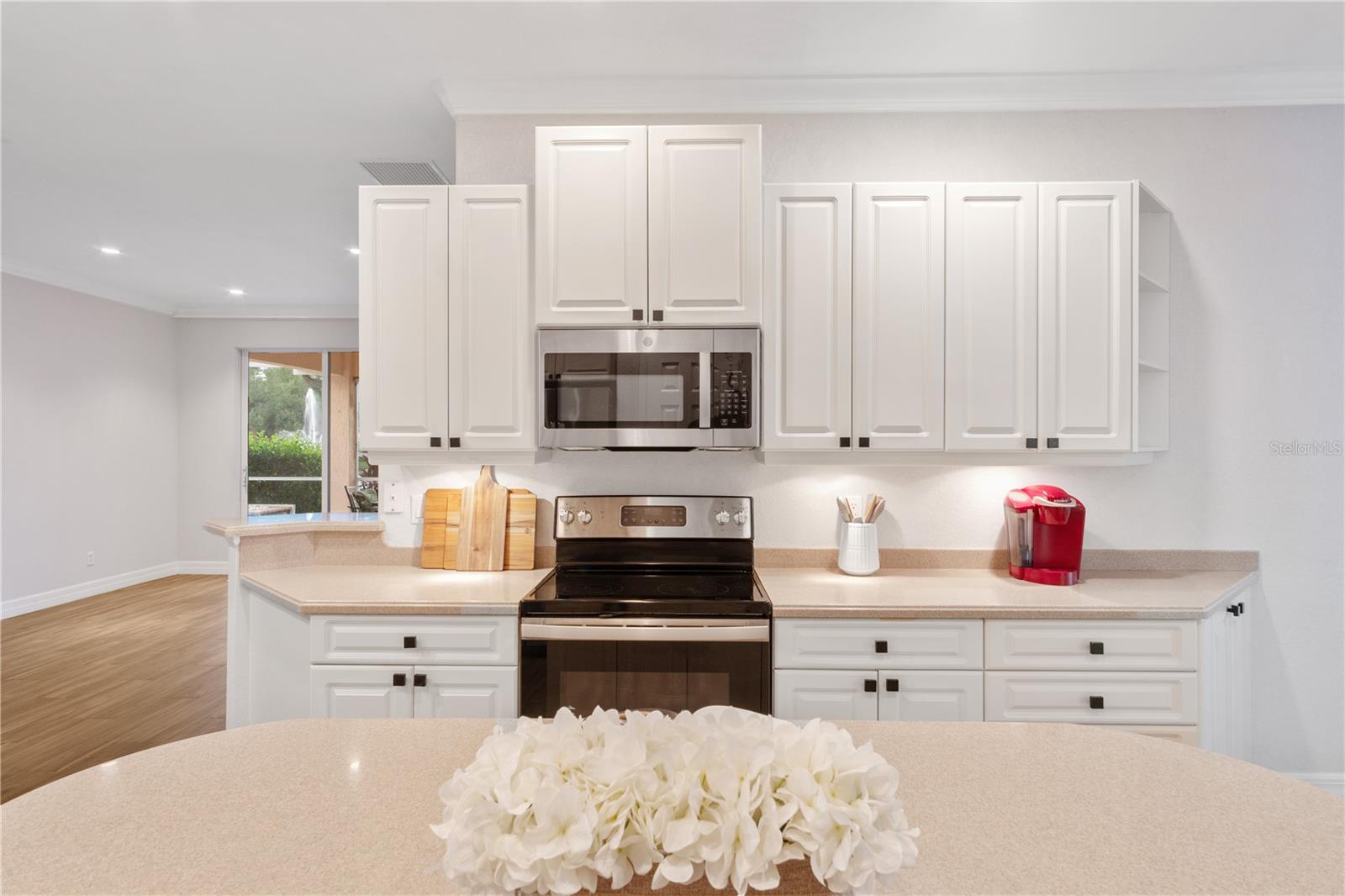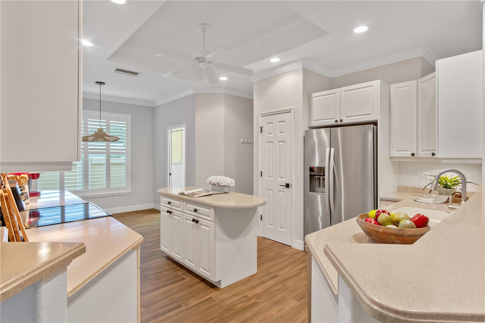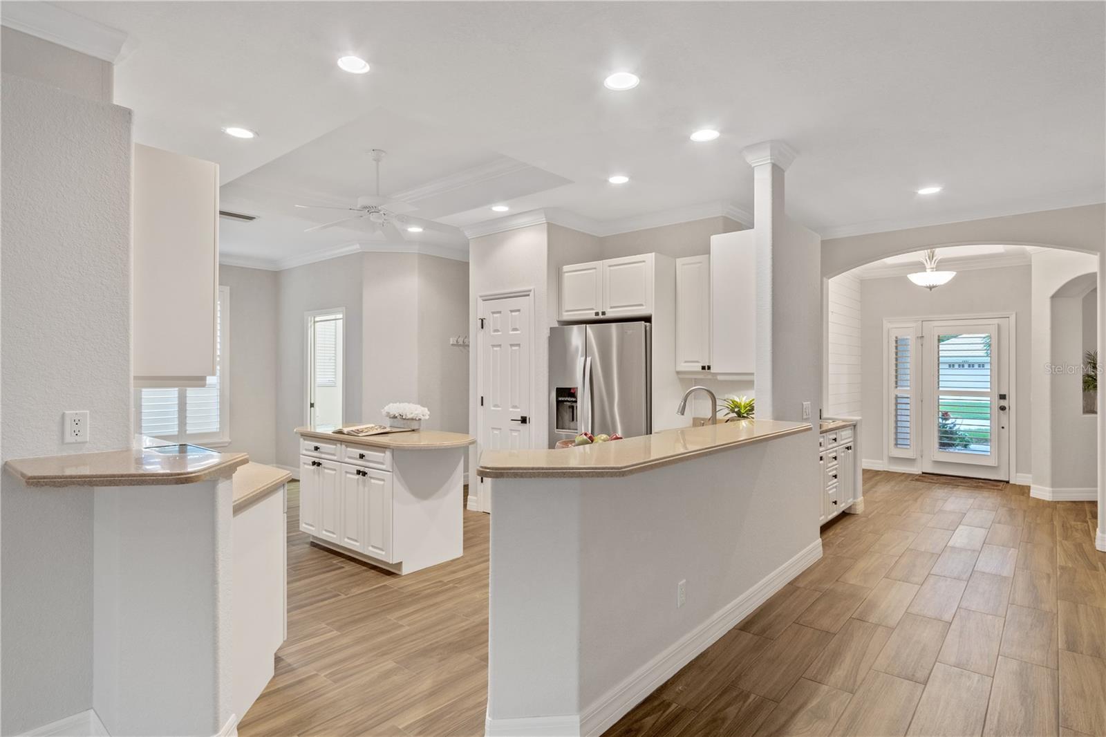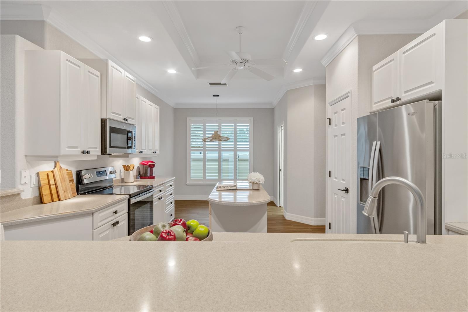 Enjoy this private gated and beautifully landscaped community with sidewalks, pond fountains, park benches, and lantern-lit streets. This recently painted, meticulously maintained home is at the end of a private cul-de-sac and offers the perfect blend of comfort and style. Inside, you’ll find move-in ready 3 bedrooms, 2 full baths, impact glass windows, plantation window shutters, crown molding, tray ceilings, and updated plank ceramic tile flooring. A full-sized laundry room with cabinets and utility sink adds convenience. The covered front porch leads into a spacious foyer with arched doorways, tray ceiling and welcoming wet bar. The well-equipped kitchen is designed for entertaining, featuring ample cabinets, pull out sliding shelving, a serving island, breakfast bar, tray ceiling and dinette area. The open living space has ceramic tile plank flooring and flows seamlessly to the outdoors through triple sliding glass doors. Step onto the expansive wrap-around screened lanai with a private spa looking out to the attractive pond with lighted fountain—ideal for morning coffee or relaxing evenings. The spacious master suite with double sliders offers lanai access, a walk-in closet, and a private en-suite bath with double sinks and a Roman walk-in shower. A split-bedroom layout ensures privacy for guests, with two additional bedrooms and a conveniently located full guest bath. Quality curb appeal includes a tile roof, mature landscaping, inviting front porch, long and wide expanded driveway. Community amenities include resort-style tropical pool with sundeck, clubhouse with fitness room, library, and billiards, patio with tables and umbrellas. Whether living here full-time or seasonally, you’ll enjoy a low-maintenance lifestyle with low HOA fees, no CDD fees, and X flood zone. Centrally located just 15 minutes to Wellen Park, golf, beaches, MLB spring training baseball, boat launches, world class fishing, biking and walking paths, shopping, and medical facilities.