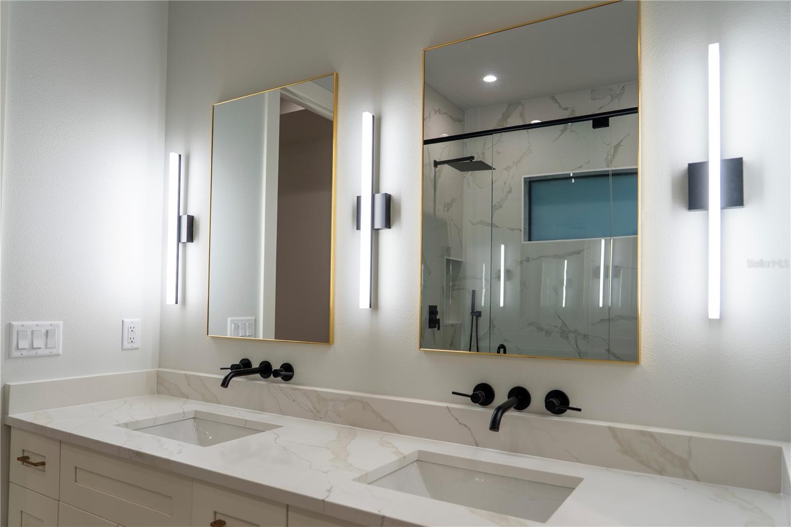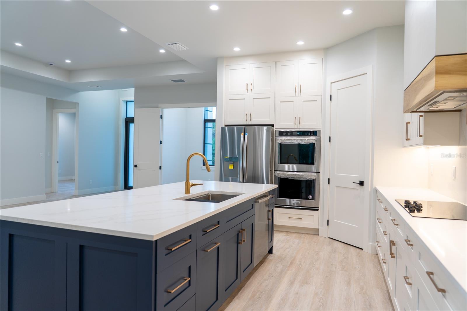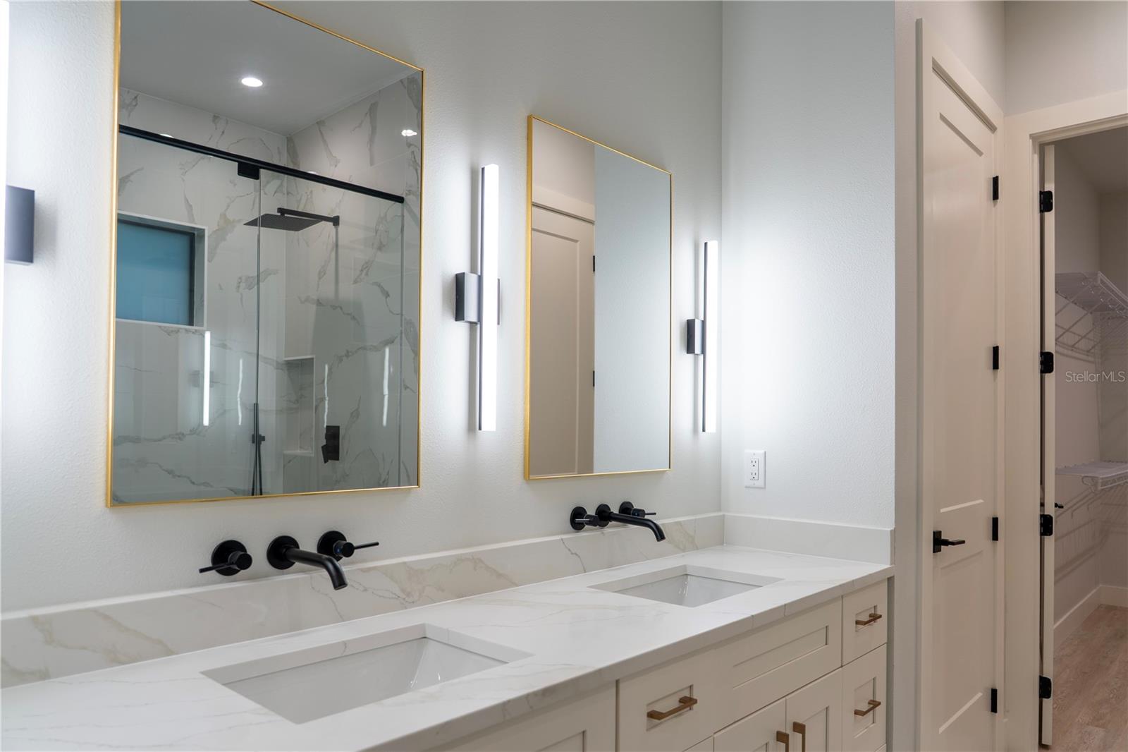 NEW CONSTRUCTION!!! WELCOME TO THIS STUNNING LUXURIOUS CUSTOM-BUILT HOME, featuring 3 bedrooms, 2 bathrooms, an office, a 2-car garage and 1,937 square feet of living space. From the moment you enter this dazzling property, you'll be captivated by the open floor plan that features 10-foot ceilings throughout the home, high-end finishes, large custom windows, fantastic design and contemporary lighting package. PREMIUM UPGRADES THROUGHOUT! The living space feature wall offers a wired space for a TV and fireplace. A true chef's kitchen with Quartz countertops and backsplash, stainless steel appliances, built-in double oven, walk-in pantry, upgraded 42" and 18" double-stacked cabinets that include pullouts to maximize storage, LED lights under cabinets, quartz back splash and large center island for entertaining! The kitchen is open to the dinette area and great room with sliding doors leading to the large lanai. You will love the owner's suite, which features a walk-in closet, dual-sinks, private water closet, and glass-enclosed walk-in luxury tile shower. Your new home has been upgraded with beautiful fixtures and finishes, including Luxury Vinyl Floors, Hurricane Impact Glass throughout, 8' doors, outdoor kitchen, outdoor shower, all the wiring ready for the pool, oversized driveway with flat and leveled frontage, sidewalk around the house and so much more! Also, the house is wired for security cameras outside. This home is NOT in a flood zone and has been constructed to the most current building codes and standards, resulting in homeowners’ insurance premiums that are surprisingly affordable. There are NO mandatory HOA or CDD fees. Outside the home, gorgeous natural landscaping offers plenty of privacy and the opportunity to enjoy the Florida sunshine. This house is located just a short distance from stunning gulf beaches, fishing, boating, golfing, and the brand-new Downtown Wellen Park, which features shops, restaurants, groceries, Atlanta Braves Spring Training Facility and more! Easy access to I-75 and US 41. Relax and enjoy the peace & tranquility while enjoying the Florida sunshine! OWN A PIECE OF PARADISE!