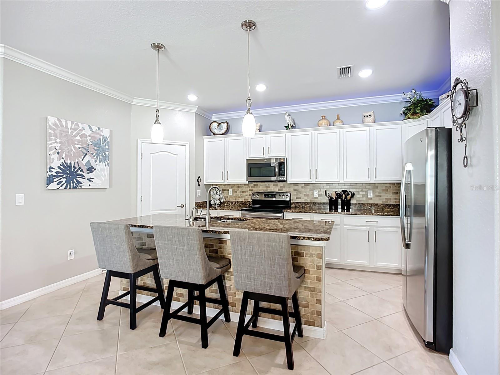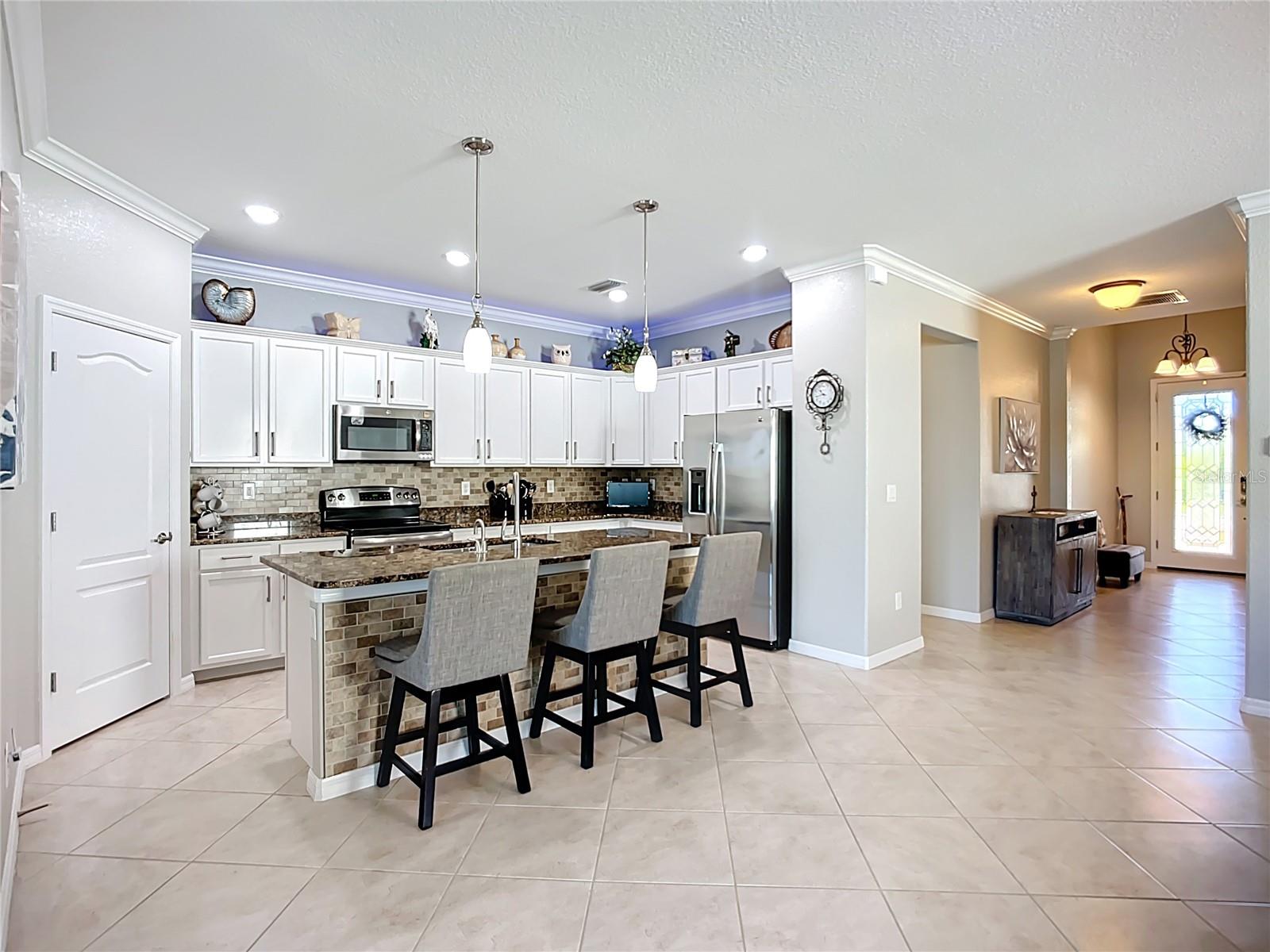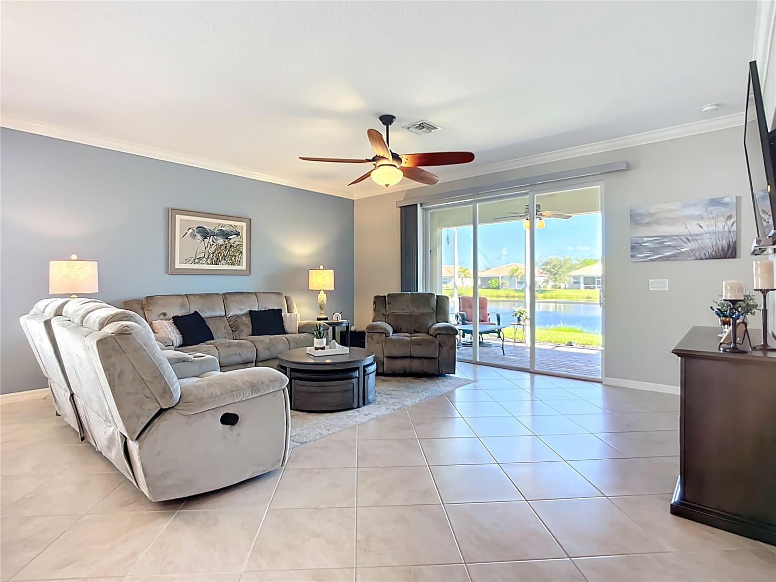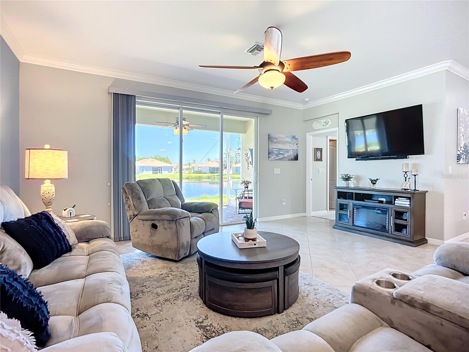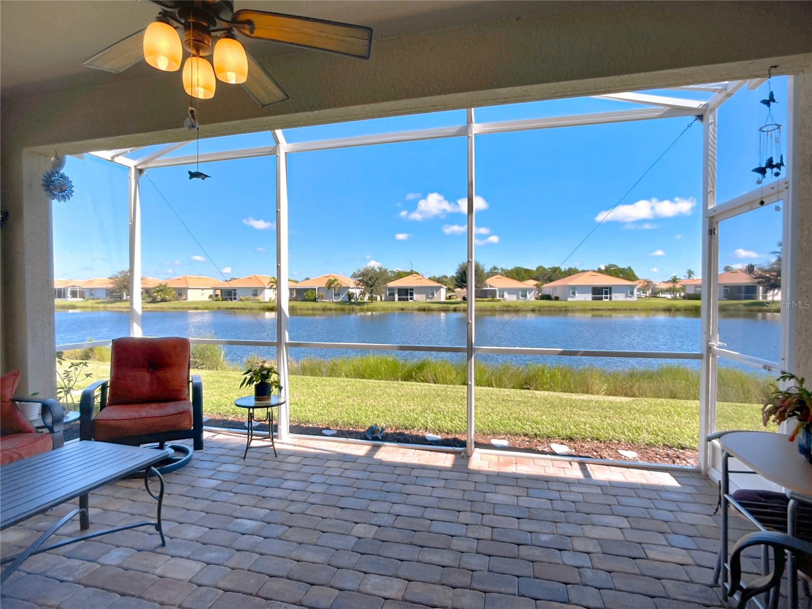 This home combines modern comfort with timeless elegance, offering an inviting retreat in the heart of North Port. From the moment you step into the welcoming foyer, you’ll appreciate the thoughtful design, functionality, and charm throughout. Curb appeal abounds with mature landscaping, a tile roof, and a brick paver walkway and driveway. Inside, you’ll find updated flooring, fresh interior paint, and crown molding. The large extended screened lanai (19’ x 16’) with pavers enhances your outdoor living overlooking a tranquil pond—perfect for morning coffee, evening relaxation, or entertaining friends. The kitchen is designed for both style and function, featuring granite countertops, a tile backsplash, updated stainless steel appliances, generous cabinet space, a walk-in pantry, and a large food-prep island with seating. The split-bedroom layout ensures privacy for all. The primary suite includes two walk-in closets, a ceiling fan, and a spa-like en suite bath with dual vanities, a walk-in shower, and a soaking tub. For added guest comfort, the second bedroom offers its own private bath—ideal for visitors or in-laws. With three full bathrooms in total, the home provides both convenience and versatility. Located in The Villas at Charleston Park, this meticulously maintained gated community features single-family homes surrounded by lush landscaping, sidewalks, ponds with lighted fountains, and lantern-lit streetlamps. Residents enjoy resort-style amenities including a tropical pool with sundeck, a clubhouse with fitness center, library, billiards room, and a calendar of community activities. The community’s peaceful setting is just minutes from Wellen Park, biking and walking trails, golf courses, beaches, a boat launch, spring training facilities, shopping, dining, and medical centers. With no CDD fees, Flood Zone X, New roof in July of 2025, new AC in 2024, this home offers both peace of mind and an exceptional lifestyle. THIS HOME IS TRULY MOVE IN READY FOR THE MOST DESCERNING BUYER.