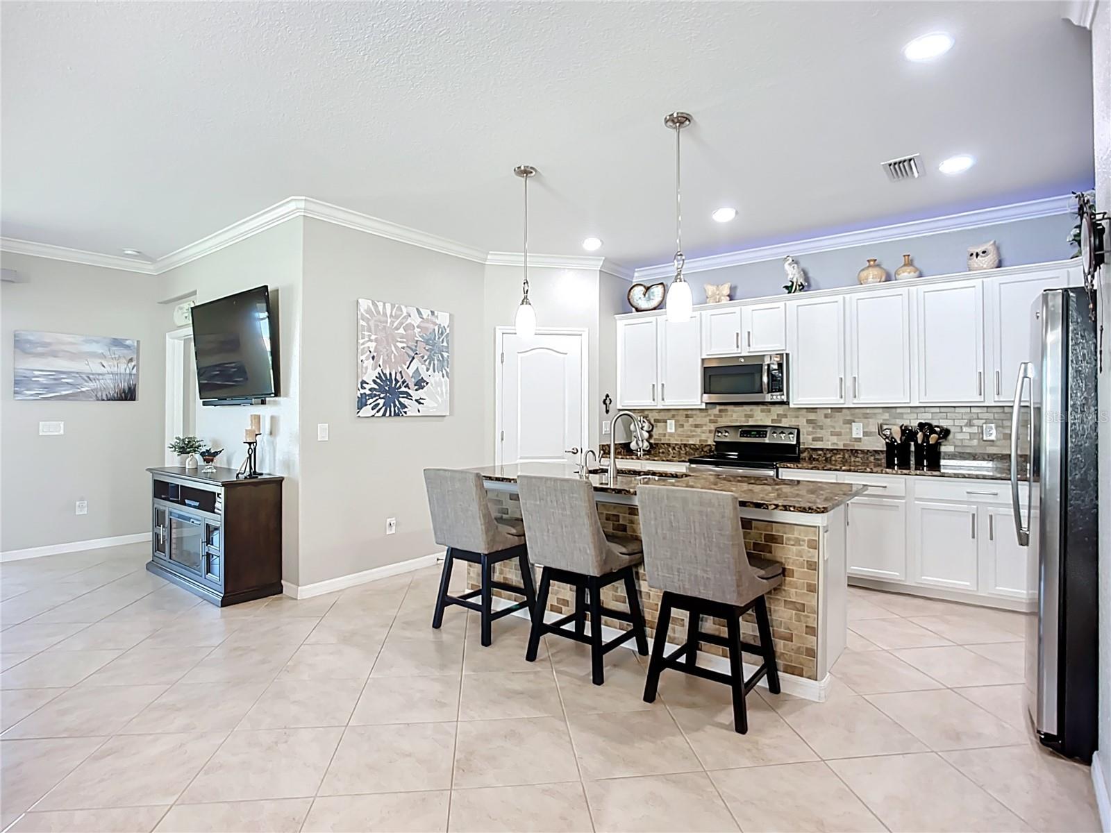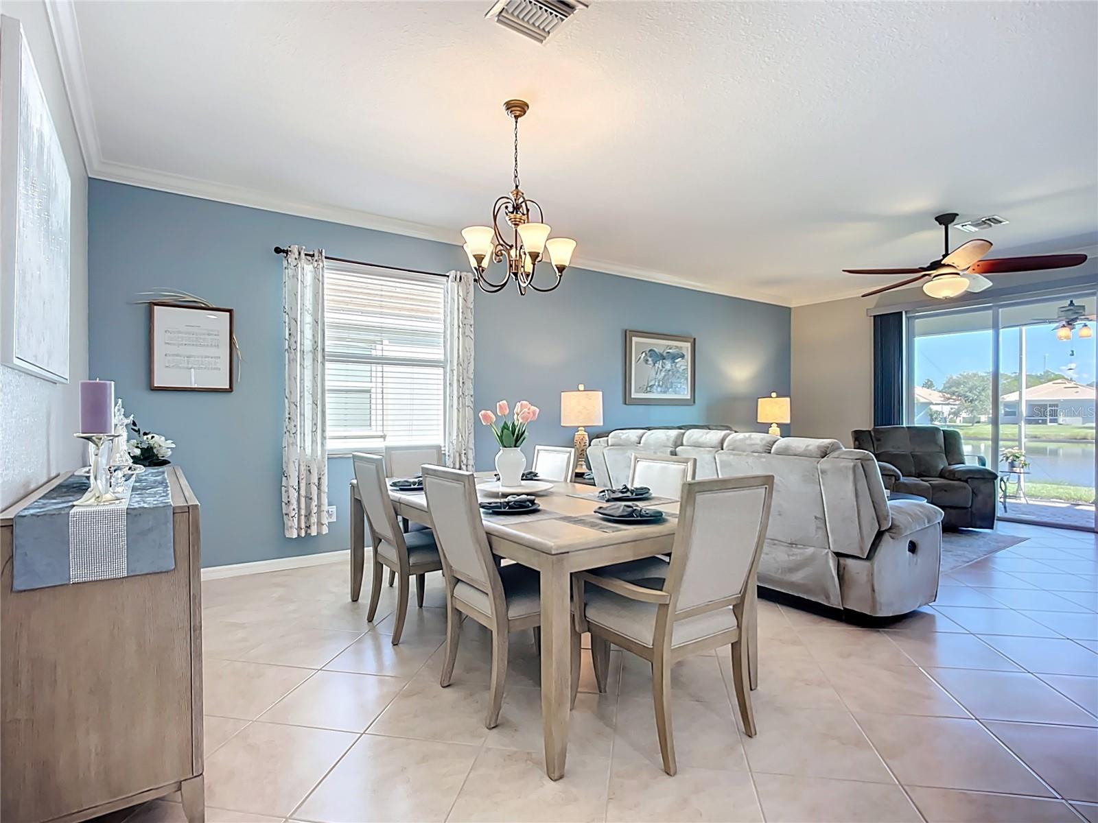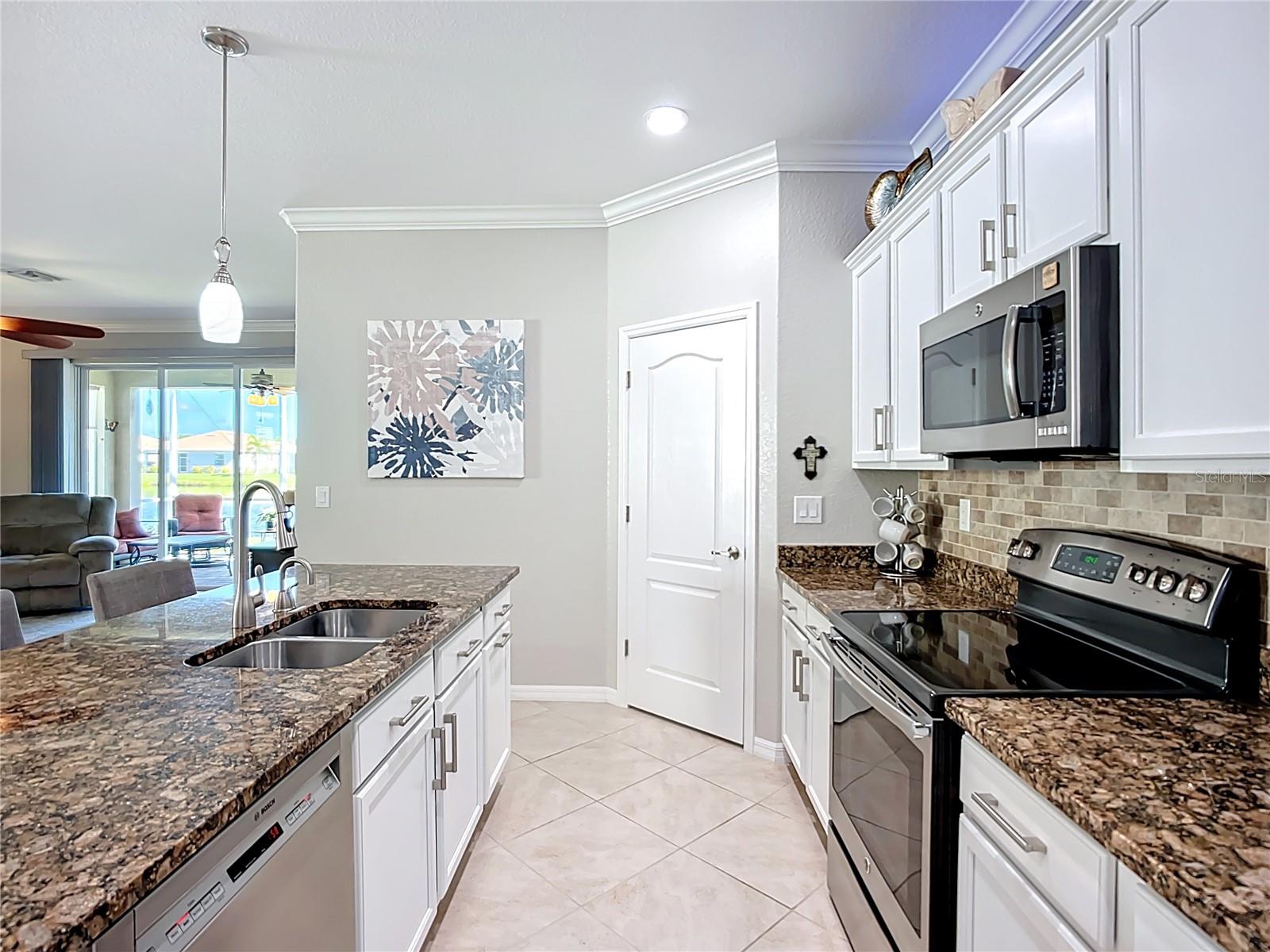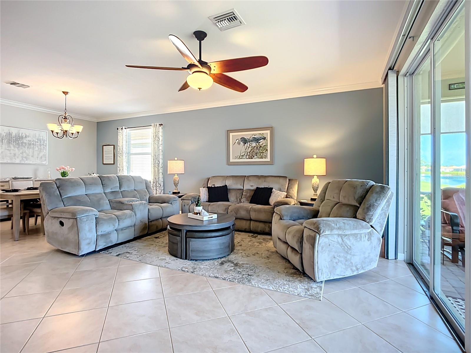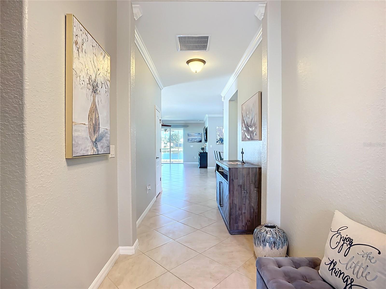 This home combines modern comfort with timeless elegance, offering an inviting retreat in the heart of North Port. From the moment you step into the welcoming foyer, you’ll appreciate the thoughtful design, functionality, and charm throughout. Curb appeal abounds with mature landscaping, a tile roof, and a brick paver walkway and driveway. Inside, you’ll find updated flooring, fresh interior paint, and crown molding. The large extended screened lanai (19’ x 16’) with pavers enhances your outdoor living overlooking a tranquil pond—perfect for morning coffee, evening relaxation, or entertaining friends. The kitchen is designed for both style and function, featuring granite countertops, a tile backsplash, updated stainless steel appliances, generous cabinet space, a walk-in pantry, and a large food-prep island with seating. The split-bedroom layout ensures privacy for all. The primary suite includes two walk-in closets, a ceiling fan, and a spa-like en suite bath with dual vanities, a walk-in shower, and a soaking tub. For added guest comfort, the second bedroom offers its own private bath—ideal for visitors or in-laws. With three full bathrooms in total, the home provides both convenience and versatility. Located in The Villas at Charleston Park, this meticulously maintained gated community features single-family homes surrounded by lush landscaping, sidewalks, ponds with lighted fountains, and lantern-lit streetlamps. Residents enjoy resort-style amenities including a tropical pool with sundeck, a clubhouse with fitness center, library, billiards room, and a calendar of community activities. The community’s peaceful setting is just minutes from Wellen Park, biking and walking trails, golf courses, beaches, a boat launch, spring training facilities, shopping, dining, and medical centers. With no CDD fees, Flood Zone X, New roof in July of 2025, new AC in 2024, this home offers both peace of mind and an exceptional lifestyle. THIS HOME IS TRULY MOVE IN READY FOR THE MOST DESCERNING BUYER.