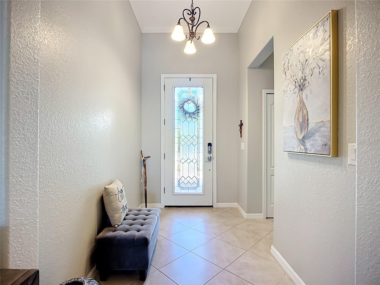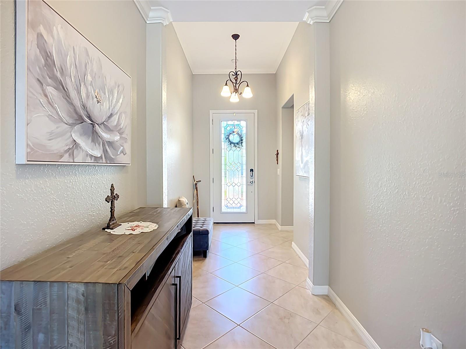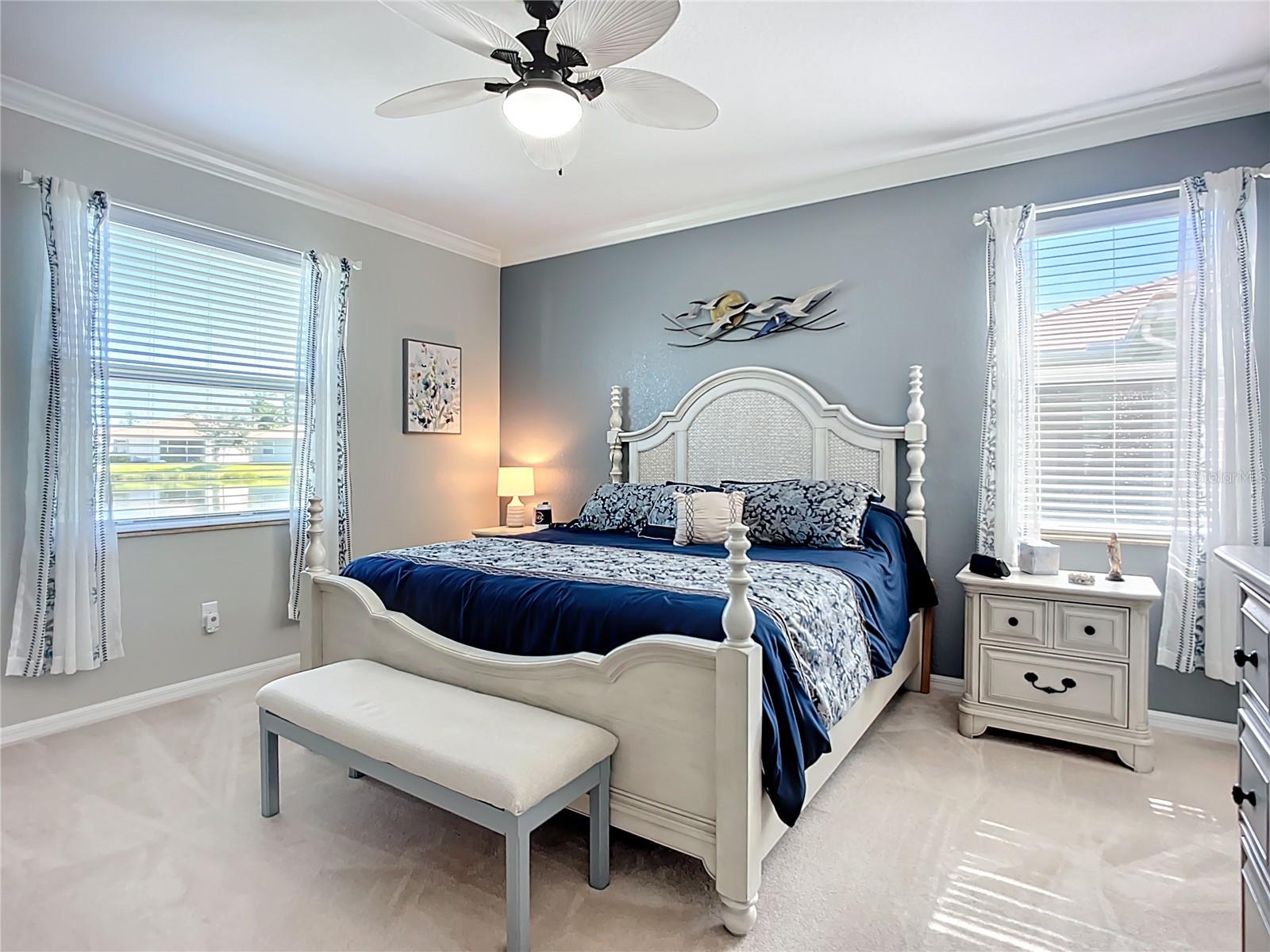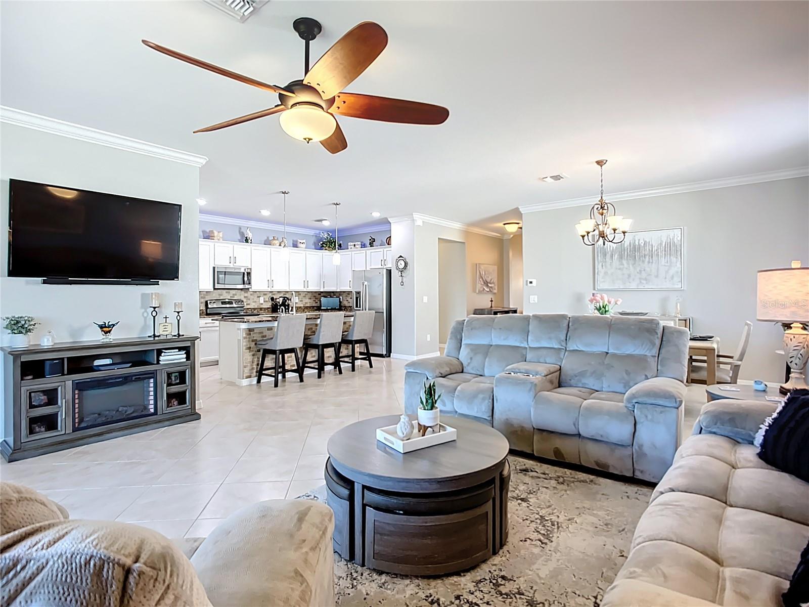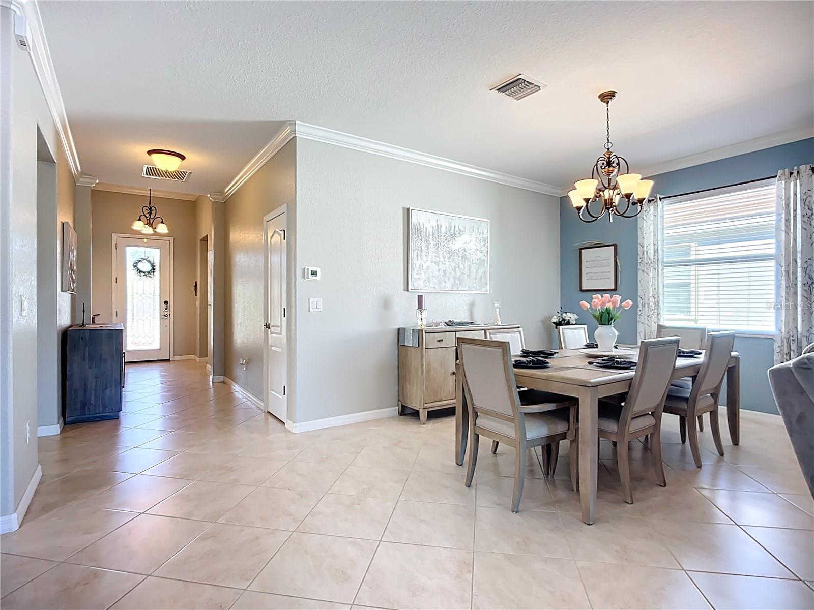 This home combines modern comfort with timeless elegance, offering an inviting retreat in the heart of North Port. From the moment you step into the welcoming foyer, you’ll appreciate the thoughtful design, functionality, and charm throughout. Curb appeal abounds with mature landscaping, a tile roof, and a brick paver walkway and driveway. Inside, you’ll find updated flooring, fresh interior paint, and crown molding. The large extended screened lanai (19’ x 16’) with pavers enhances your outdoor living overlooking a tranquil pond—perfect for morning coffee, evening relaxation, or entertaining friends. The kitchen is designed for both style and function, featuring granite countertops, a tile backsplash, updated stainless steel appliances, generous cabinet space, a walk-in pantry, and a large food-prep island with seating. The split-bedroom layout ensures privacy for all. The primary suite includes two walk-in closets, a ceiling fan, and a spa-like en suite bath with dual vanities, a walk-in shower, and a soaking tub. For added guest comfort, the second bedroom offers its own private bath—ideal for visitors or in-laws. With three full bathrooms in total, the home provides both convenience and versatility. Located in The Villas at Charleston Park, this meticulously maintained gated community features single-family homes surrounded by lush landscaping, sidewalks, ponds with lighted fountains, and lantern-lit streetlamps. Residents enjoy resort-style amenities including a tropical pool with sundeck, a clubhouse with fitness center, library, billiards room, and a calendar of community activities. The community’s peaceful setting is just minutes from Wellen Park, biking and walking trails, golf courses, beaches, a boat launch, spring training facilities, shopping, dining, and medical centers. With no CDD fees, Flood Zone X, New roof in July of 2025, new AC in 2024, this home offers both peace of mind and an exceptional lifestyle. THIS HOME IS TRULY MOVE IN READY FOR THE MOST DESCERNING BUYER.