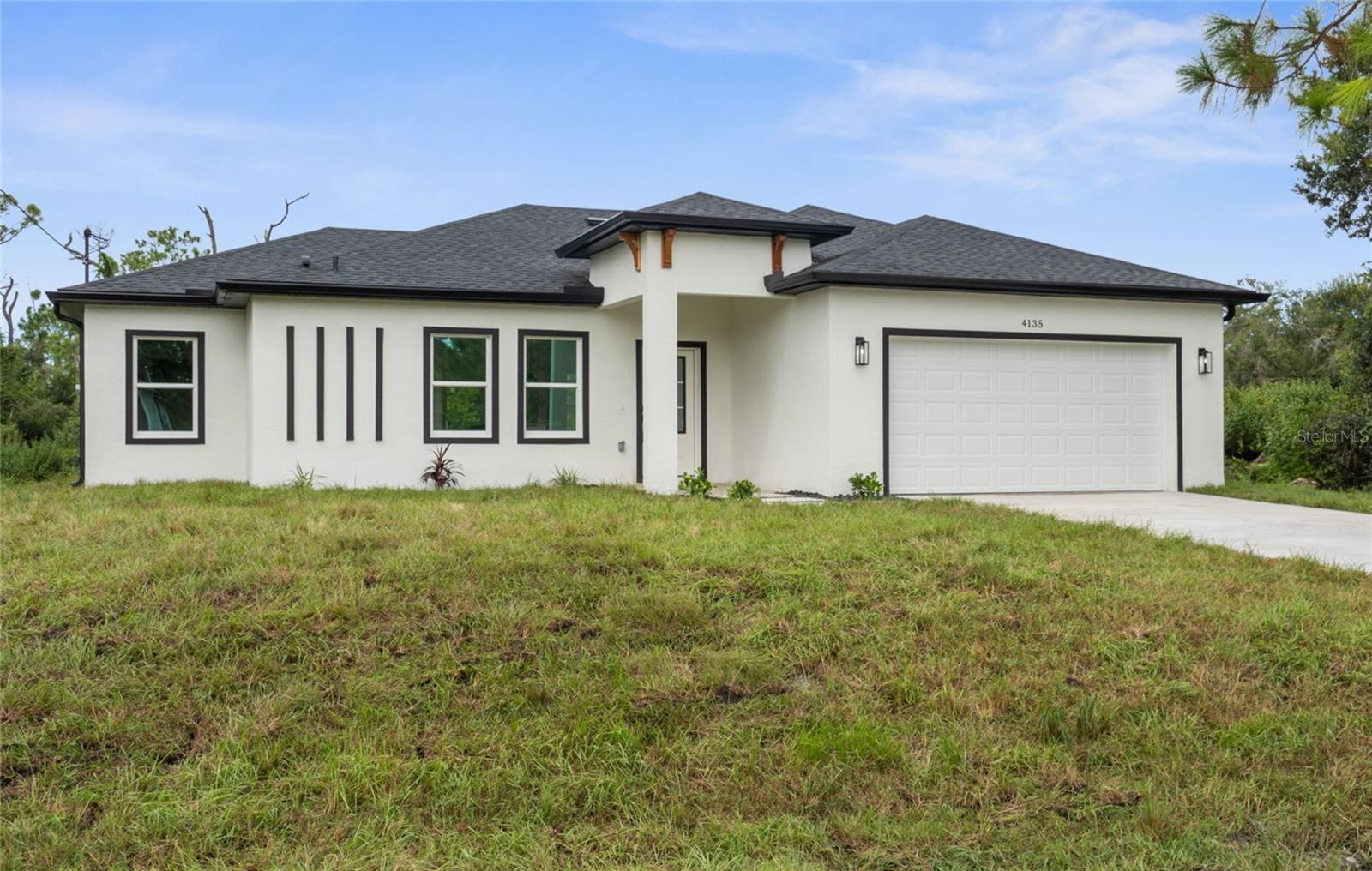One or more photos have been virtually staged* Stunning brand-new construction **BUILDER WILL CONTRIBUTE TO BUYER CLOSING COSTS!** Check out this modern design meets effortless style. Just-completed 4 bedroom, 2 bathroom home offers a clean, contemporary layout with tile flooring throughout and thoughtfully selected high-end finishes. The gourmet kitchen features stainless steel appliances, a spacious eat-at island, and sleek cabinetry – perfect for both everyday living and entertaining. Bathrooms are fully upgraded with designer touches, including anti-fog mirrors and modern fixtures. Enjoy peace of mind with hurricane impact windows and doors, plus the added durability of a 2-car garage with epoxy flooring. The entryway sets the tone with rock detail, while the home’s location outside of any flood zone makes it as practical as it is beautiful. A true turnkey home, blending quality, style, and security.