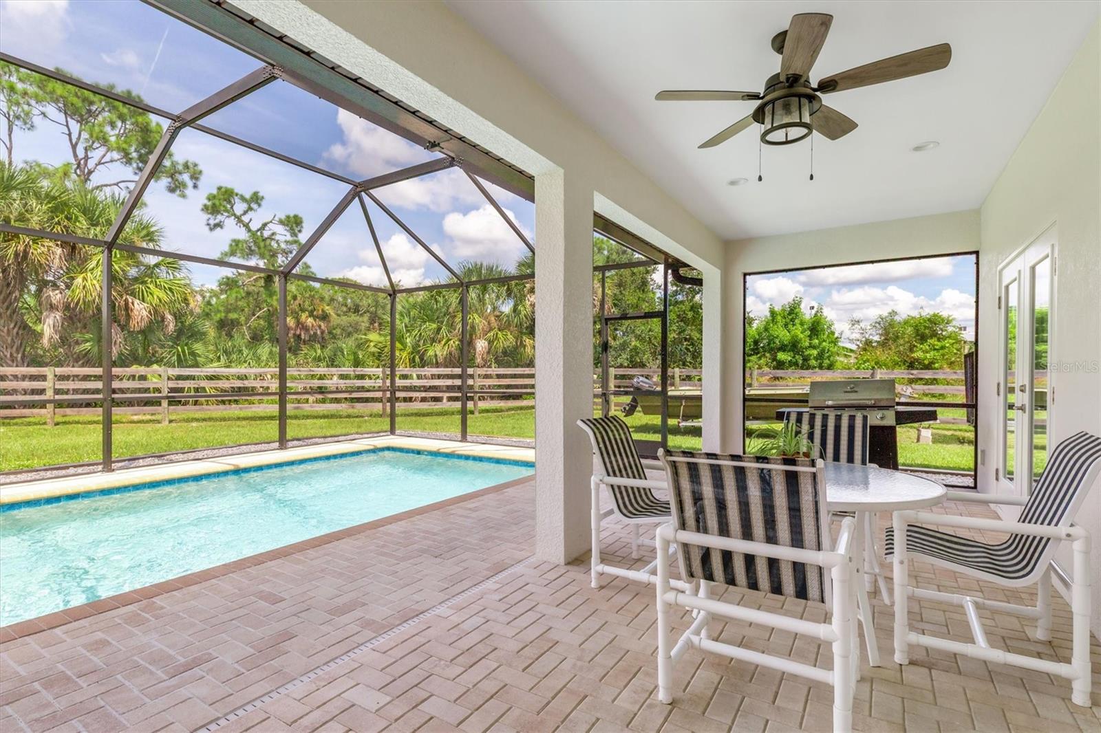 Live the Florida Dream in This Custom 2022 Saltwater Pool Home on Over Half an Acre Welcome to a home where thoughtful design meets effortless living. Nestled on a spacious .52-acre lot, this 3-bedroom, 2-bath custom-built retreat by Ben Dejong offers 1,857 sq ft of beautifully finished space and a 2-car garage—all crafted for comfort, style, and connection. Step inside and be greeted by granite countertops throughout, sleek tile flooring, and a Great Room that stuns with a tray ceiling, recessed lighting, and pendant accents over the kitchen island. The master suite is a private sanctuary with dual closets, dual sinks, a walk-in tile shower, and French doors that open directly to your poolside escape. The second bath mirrors the elegance with its own walk-in tile shower and thoughtful storage. Built for year-round enjoyment, the 12x24 saltwater pool is enclosed in a 20' x 40' screened lanai with a ceiling fan—perfect for morning swims or sunset gatherings. And thanks to the protected greenway behind the property, you’ll enjoy lasting privacy with the peace of mind that no one can build behind you. Energy-efficient features like RX20 spray foam insulation, impact windows, and a well-maintained HVAC system ensure comfort and peace of mind. Outside, a decorative stone band, estate-style fencing, and a 10' x 12' shed add charm and functionality. This is more than a home—it’s a lifestyle. One that blends luxury, practicality, and the best of Florida living. Just 35 minutes from Florida’s iconic coastline, this home offers the perfect balance of convenience and charm. Everyday essentials like Publix and Costco are nearby. Gulf beaches—including Venice, Manasota, and Englewood—are a quick 25–30 minute drive away. This property combines comfort, prime location, and lasting value. Schedule your tour today to experience the quality and opportunity firsthand.