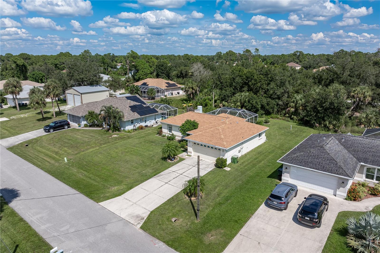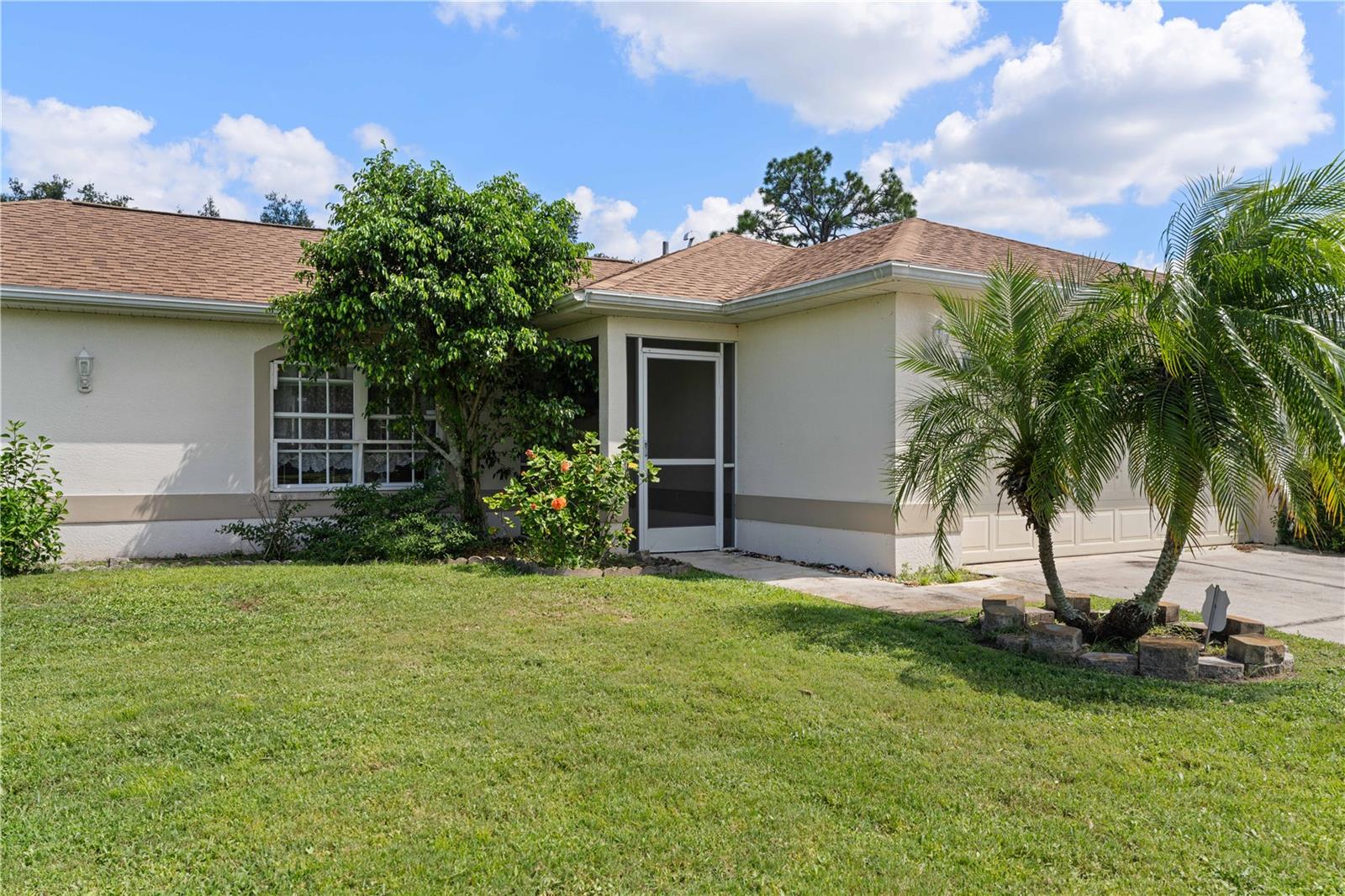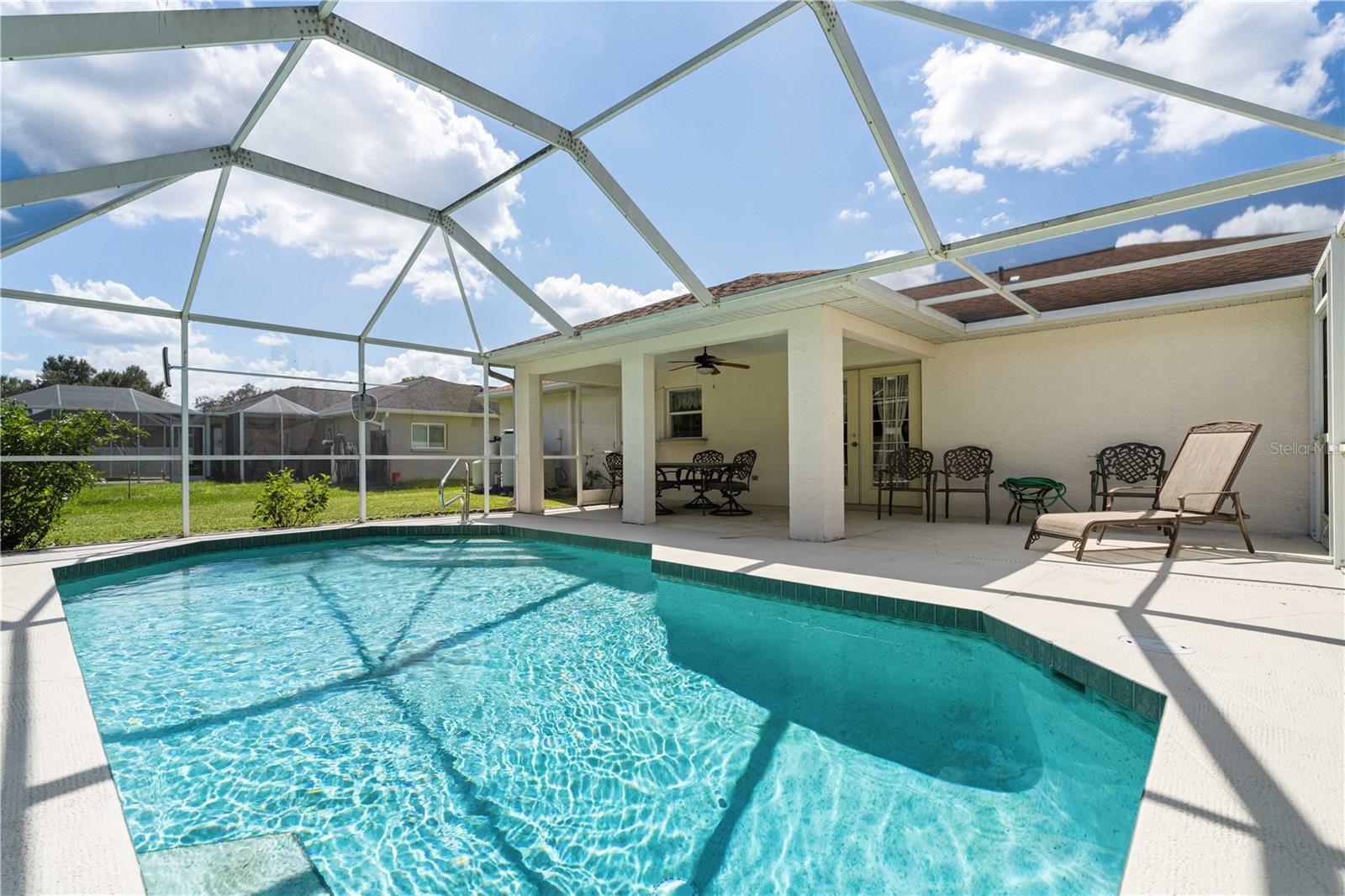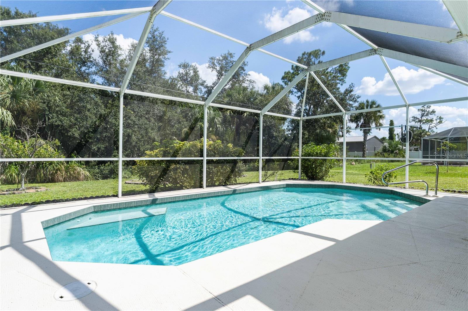 NORTH PORT POOL HOME W/NEW ROOF - Check out this 3 bed/2 bath home in the heart of North Port offering a heated pool, open layout, and a convenient location close to shopping, dining, and medical facilities. Inside, cathedral ceilings and an open layout create a light-filled great room that flows easily into the dining area and kitchen. Kitchen has an island w/breakfast bar seating, an adjacent dining area as well as a pass-through window to the lanai. The home features a large master retreat w/en-suite bath & oversized walk-in closet. The guest bedrooms share a full hall bath. The split-bedroom design ensures privacy, while an interior laundry/mudroom with utility sink and direct garage access adds everyday function. Outdoor living shines here with a covered lanai and in-ground, heated pool surrounded by a screened enclosure. Relax poolside or under the shade of the covered area. Spend your days lounging by the in-ground, heated pool or gathering with friends in the screened lanai. Set on a quiet street with no HOA restrictions, this property delivers Florida living without compromise. Priced right and full of potential, the home is a smart option whether you’re a first-time buyer, investor, or simply looking for an affordable way to enjoy Florida living.