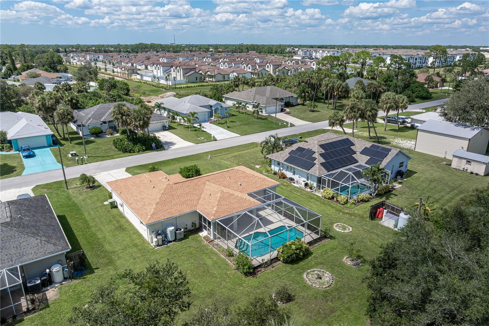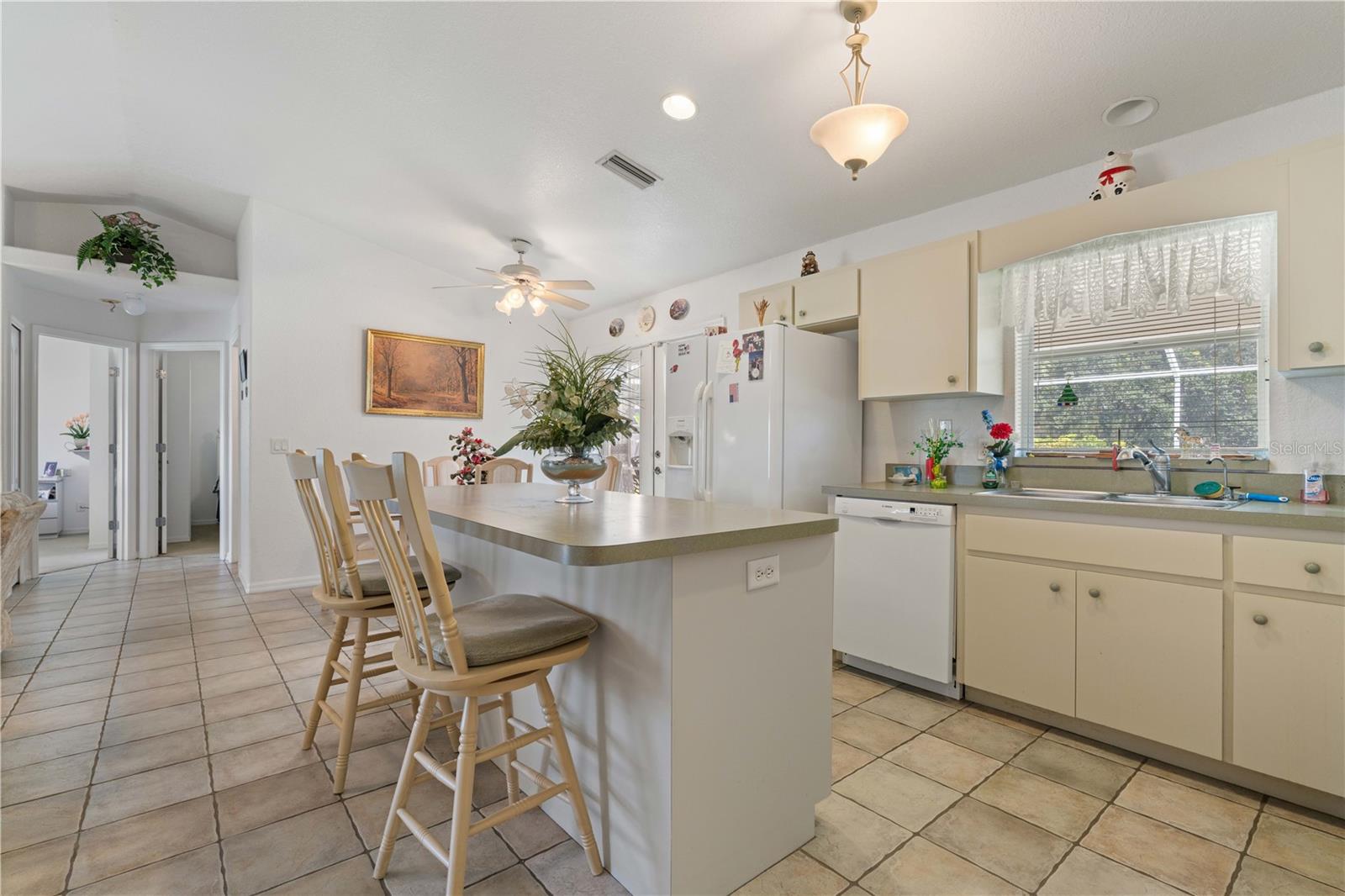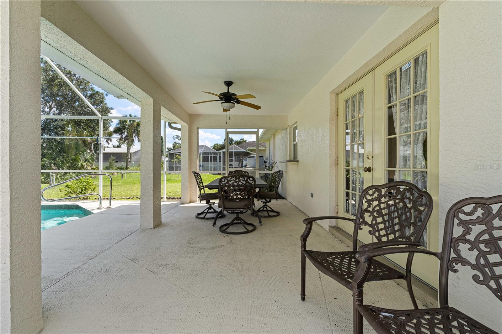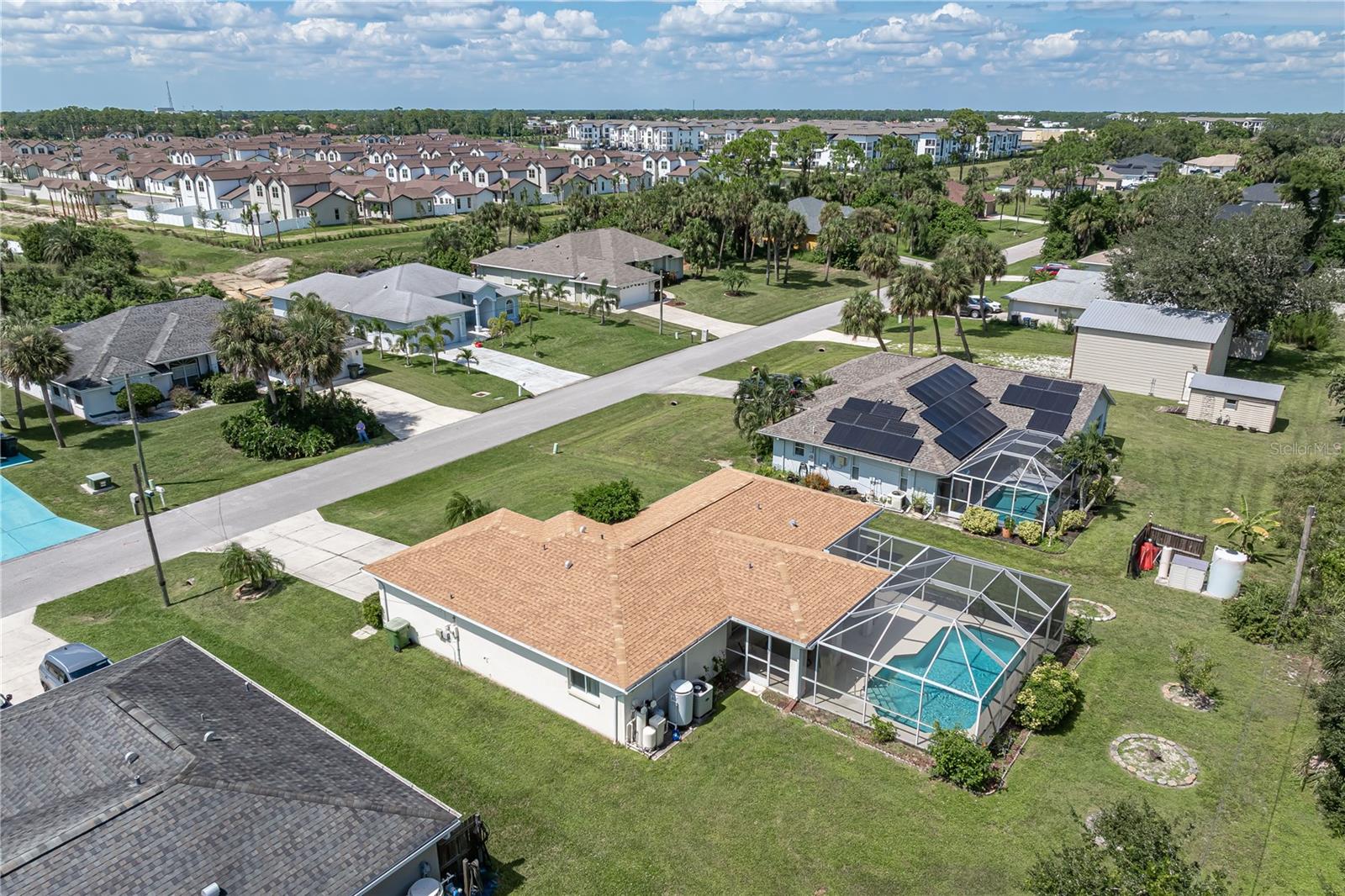 NORTH PORT POOL HOME W/NEW ROOF - Check out this 3 bed/2 bath home in the heart of North Port offering a heated pool, open layout, and a convenient location close to shopping, dining, and medical facilities. Inside, cathedral ceilings and an open layout create a light-filled great room that flows easily into the dining area and kitchen. Kitchen has an island w/breakfast bar seating, an adjacent dining area as well as a pass-through window to the lanai. The home features a large master retreat w/en-suite bath & oversized walk-in closet. The guest bedrooms share a full hall bath. The split-bedroom design ensures privacy, while an interior laundry/mudroom with utility sink and direct garage access adds everyday function. Outdoor living shines here with a covered lanai and in-ground, heated pool surrounded by a screened enclosure. Relax poolside or under the shade of the covered area. Spend your days lounging by the in-ground, heated pool or gathering with friends in the screened lanai. Set on a quiet street with no HOA restrictions, this property delivers Florida living without compromise. Priced right and full of potential, the home is a smart option whether you’re a first-time buyer, investor, or simply looking for an affordable way to enjoy Florida living.