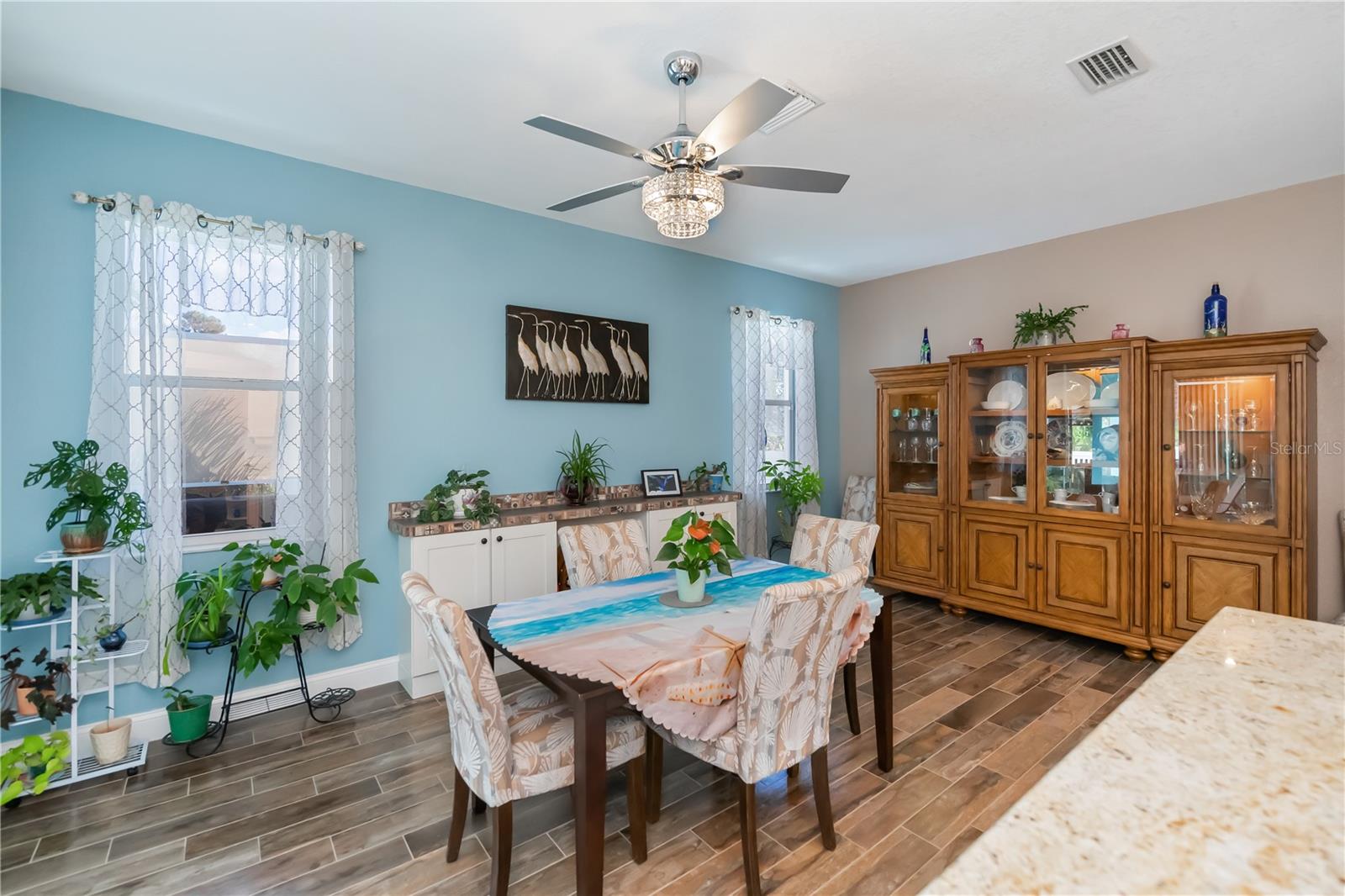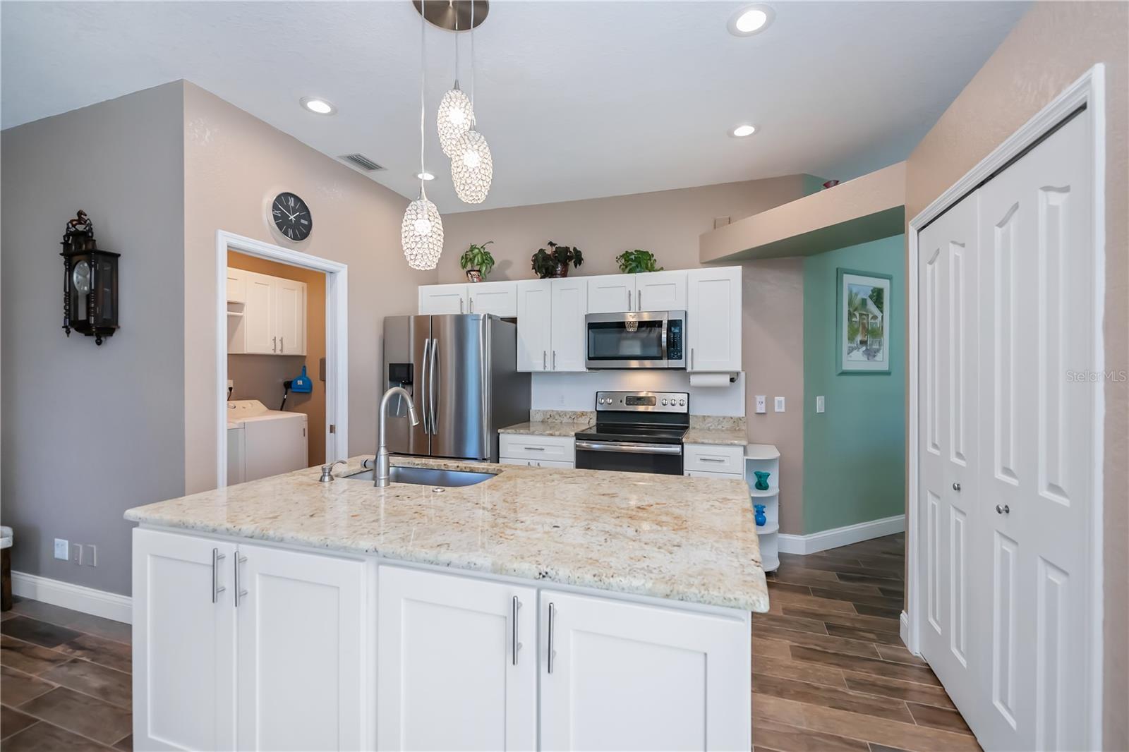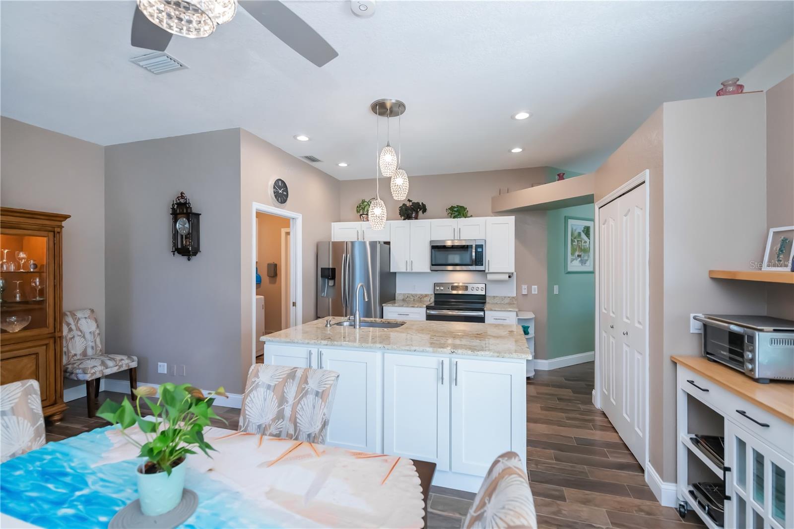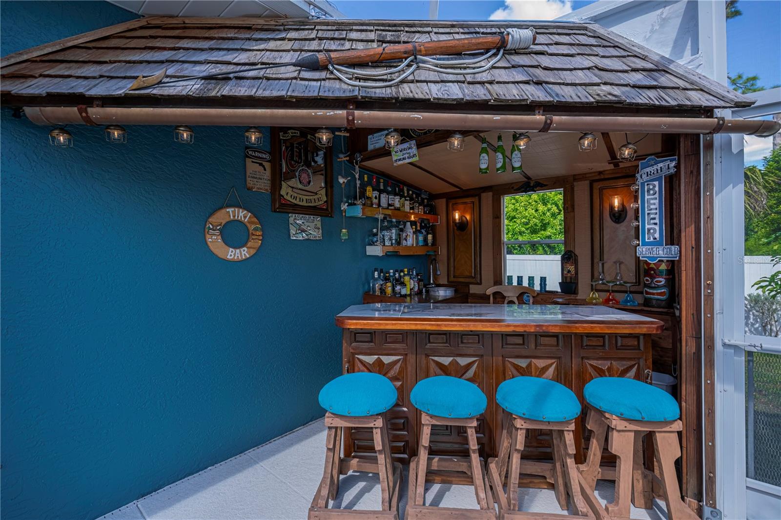 ABSOLUTELY STUNNING 3-bedroom, 2-bathroom, 2-car garage POOL HOME in North Port featuring the ULTIMATE BACKYARD SHOWSTOPPER—a one-of-a-kind POOLSIDE TIKI BAR perfect for unforgettable gatherings and fun-filled weekends! This beautifully updated residence offers incredible SOLAR SAVINGS and custom decorator touches throughout that make it truly unique. $$ PRICE IMPROVEMENT ALERT $$ Step inside through a welcoming entry to elegant ceramic plank tile flooring, rounded corners, and sunburst windows that bathe the home in natural light, all within a private, fully fenced yard. The chef’s dream kitchen boasts pristine white shaker cabinetry with soft-close doors and drawers, a subway tile backsplash, granite countertops, a spacious pantry, and a convenient breakfast island with high-quality appliances. Gather in the expansive living room and separate dining area, enhanced with stylish custom accents—ideal for entertaining family and friends. Retreat to the luxurious master suite featuring private patio access, pool entry, a large walk-in closet, and a beautifully updated ensuite with dual sinks, granite vanities, and a private commode. Guest bedrooms offer ample space and share a modern, updated bathroom. Step outside to your oversized private pool with a generous sundeck perfect for lounging, a large covered patio, and the show-stopping custom tiki-style outdoor wet bar—a backyard entertainer’s dream! Garden lovers will adore the pergola misting system designed to nurture orchids and create a serene outdoor oasis. Additional highlights include: *New 2023 pool cage and 2025 A/C system *Recent property survey *Public water & septic (2013) *Smart 8-zone sprinkler system with Bluetooth tech (2020) *Inside laundry with extra storage cabinetry *Miami-Dade Kevlar hurricane protection for peace of mind *29 solar panels (half already paid off by seller) delivering instant solar equity and an average power bill of only $279/month *Garage with sliding screened doors for airflow and privacy *8x10 outdoor shed with electricity and water—perfect for hobbies or storage *No HOA fees or flood insurance required Located near Myakka State Park and Myakkahatchee Creek Environmental Center with miles of trails, horseback riding, hiking, birdwatching, water access, plus close to Punta Gorda airport, shopping, dining, beaches, Warm Mineral Springs, and the aquatic center. This SOLAR-POWERED PARADISE blends luxury, comfort, and exceptional savings—your private resort awaits in North Port. DON'T MISS OUT—schedule your visit today before this spectacular home is gone!