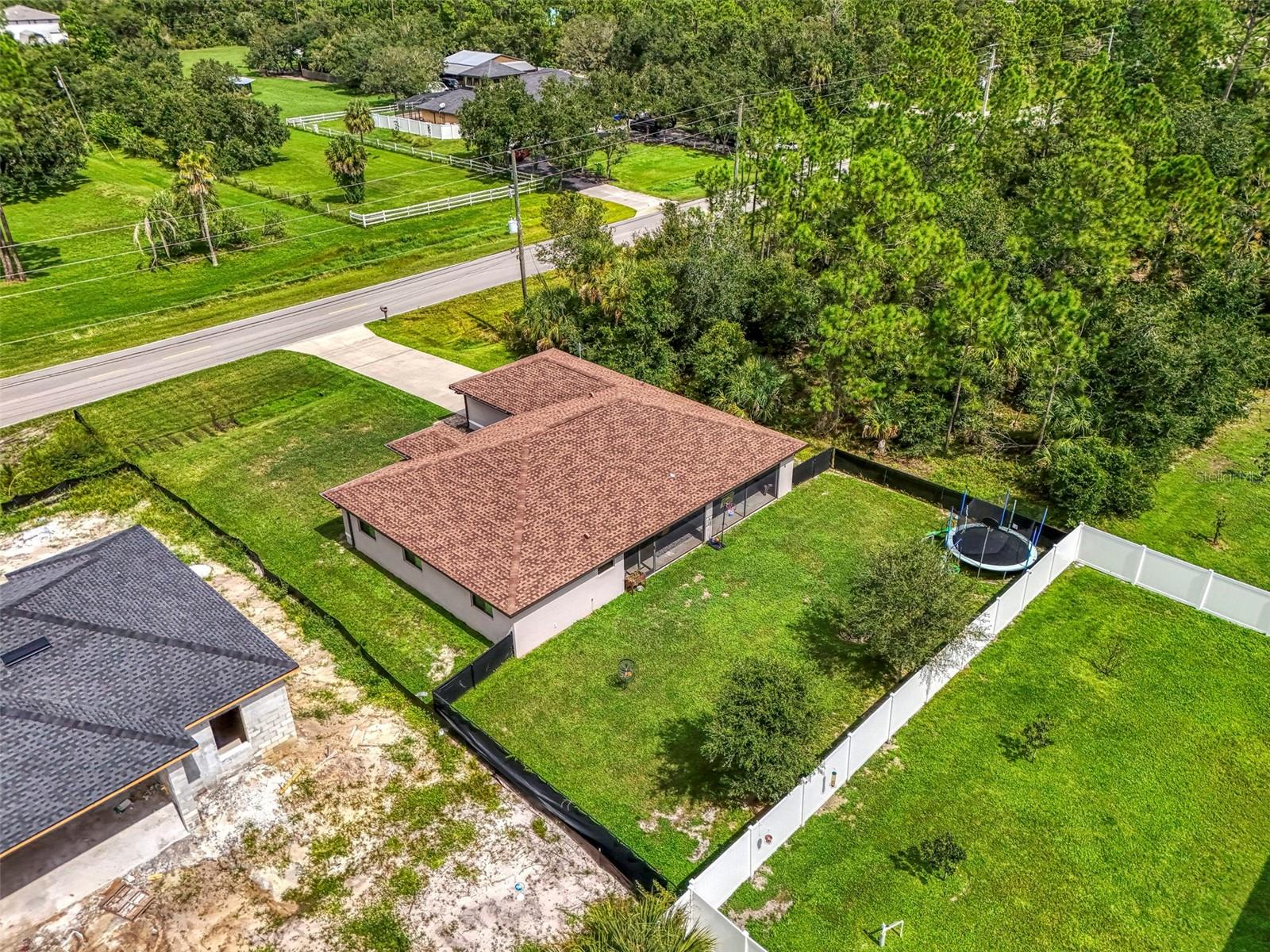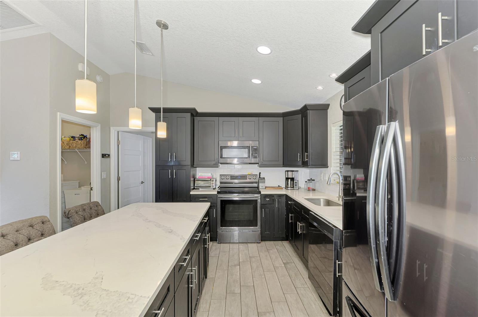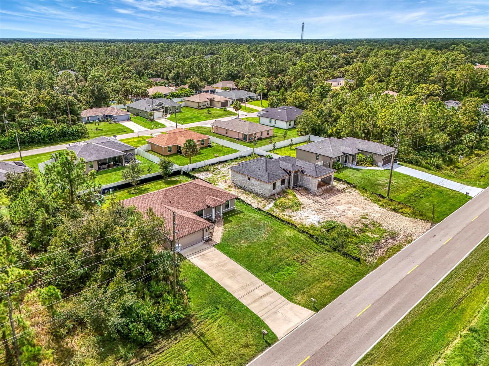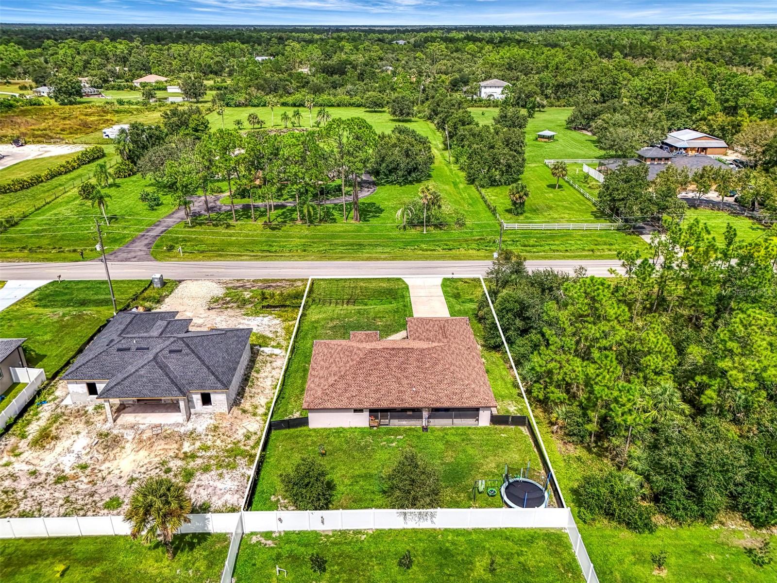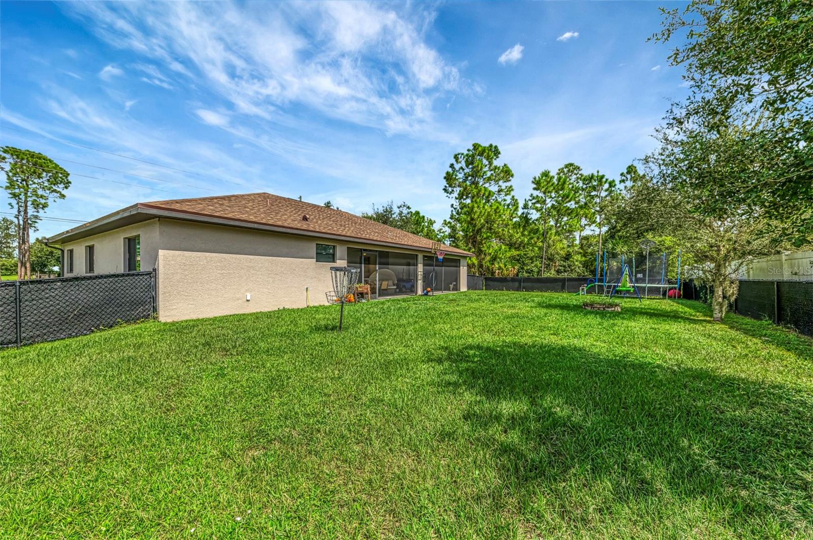 NORTH PORT ESTATES BEAUTY! Built in 2019 and offering nearly 1,700 square feet of UPGRADED living space, this 3-bedroom, 2-bathroom home—with an ADDITIONAL DEN OR OFFICE featuring a decorative BARN DOOR that can easily serve as a 4th bedroom—delivers the perfect blend of style, comfort, and practicality. With a NEW ROOF (2023), no HOA fees, and NO FLOOD ZONE, this property is ready for worry-free living. Step inside and feel the open flow of cathedral ceilings and elegant plank tile flooring throughout. The great room seamlessly connects to a gorgeous modern kitchen, complete with a CENTER ISLAND QUARTZ OPEN BREAKFAST BAR, SLOW-CLOSE WOOD CABINETRY WITH CROWN MOLDING, SUBWAY TILE BACKSPLASH & BLACK STAINLESS -STEEL APPLIANCES and UPGRADED PENDANT LIGHTING. Whether preparing a meal or entertaining, this kitchen makes it easy and enjoyable. The dining area’s FRENCH DOORS open to an HUGE OVERSIZED 12x37-FT. COVERED LANAI, overlooking a FENCED BACKYARD with room to relax, play, or garden. (Yes, the trampoline can stay!) Enjoy outdoor living all year long in privacy and peace. The primary suite is a showpiece with a tray ceiling, a large walk-in closet, and a luxurious ensuite featuring DUAL QUARTZ SINKS, a GARDEN TUB, and a MULTI HEAD SHOWER. Both guest bedrooms are generously sized—13x11—with walk-in closets and ceiling fans. The guest bath includes a tub/shower combo and stylish finishes. Additional highlights include: indoor laundry with washer and dryer, BRICK PAVER DRIVEWAY & WALKWAY, FULL HURRICANE PROTECTION, newer well, UPDATED A/C, WATER SOFTNOR, and SECURITY CAMERAS. Located in sought-after North Port Estates, you’ll enjoy the quiet country feel while being just minutes from city conveniences. Nearby Myakkahatchee Creek Environmental Park offers scenic walking and biking trails, horseback riding, fishing, and picnic areas. You’re also close to I-75, the new Sarasota Memorial Hospital, shopping, restaurants, and top local attractions. Move-in ready, beautifully maintained, and priced right—this home checks every box. FURNITURE IS NEGOTIALE! Schedule your private showing today!