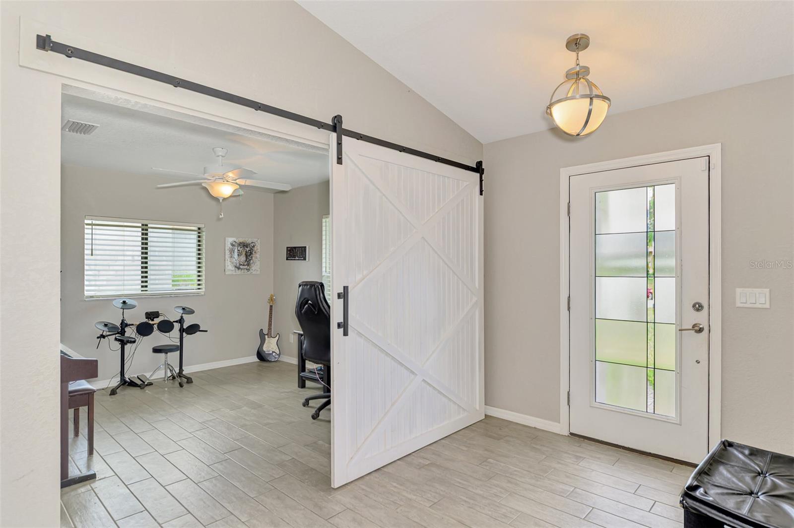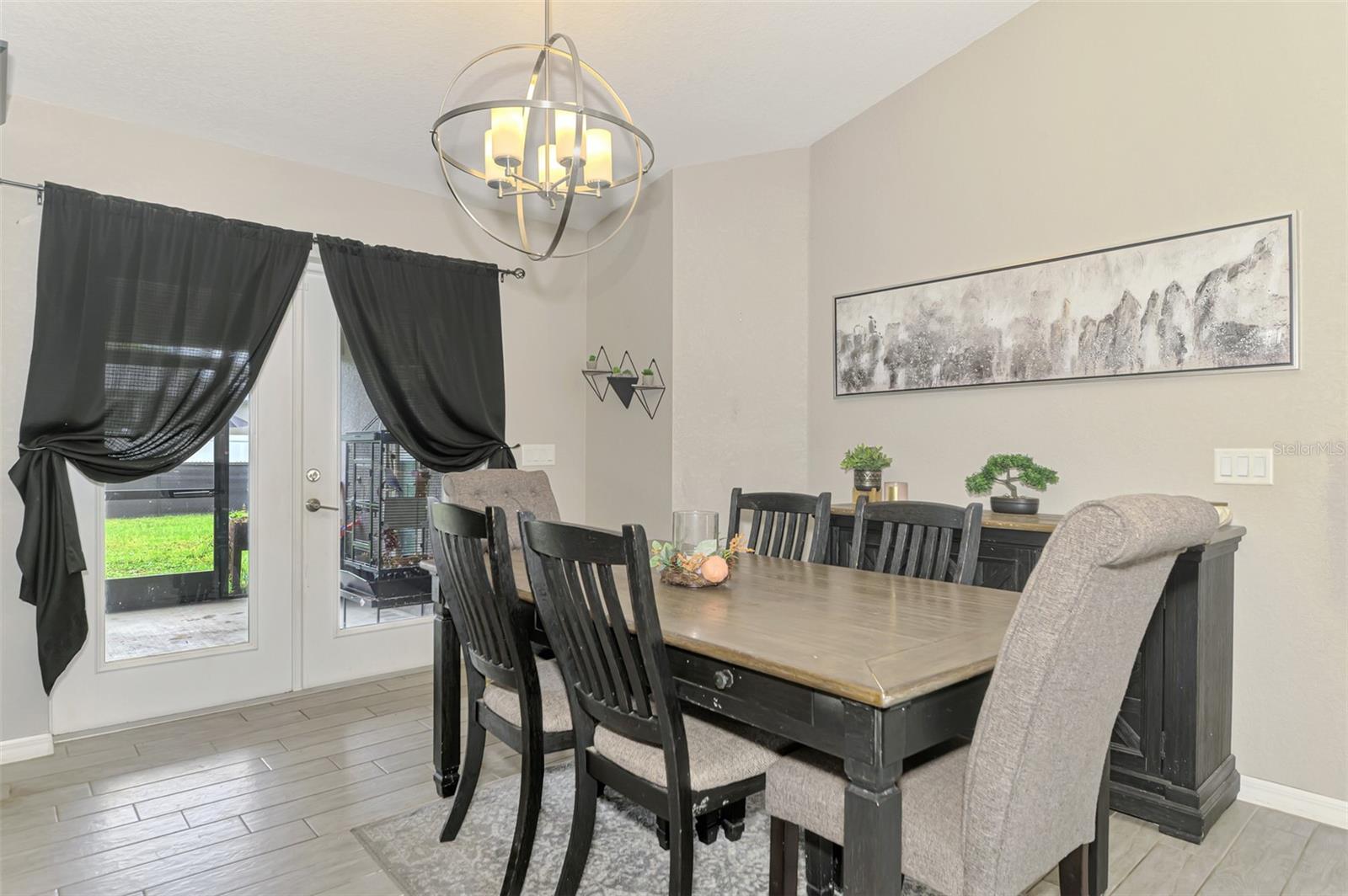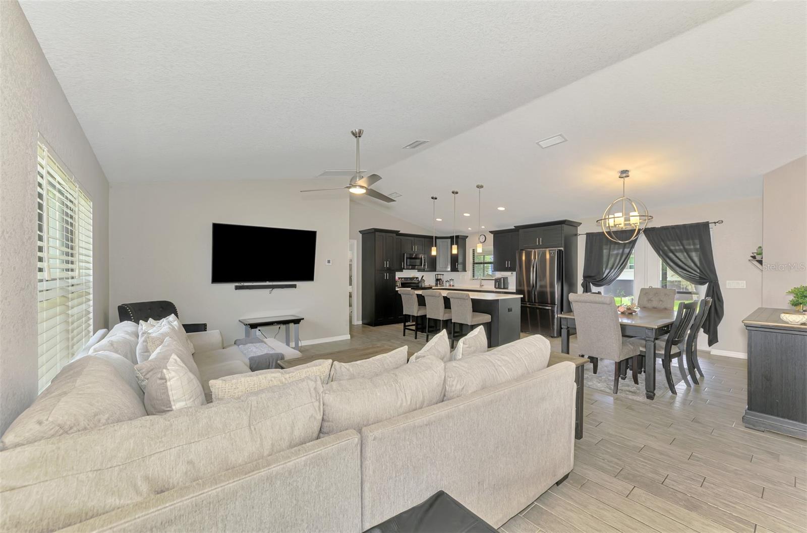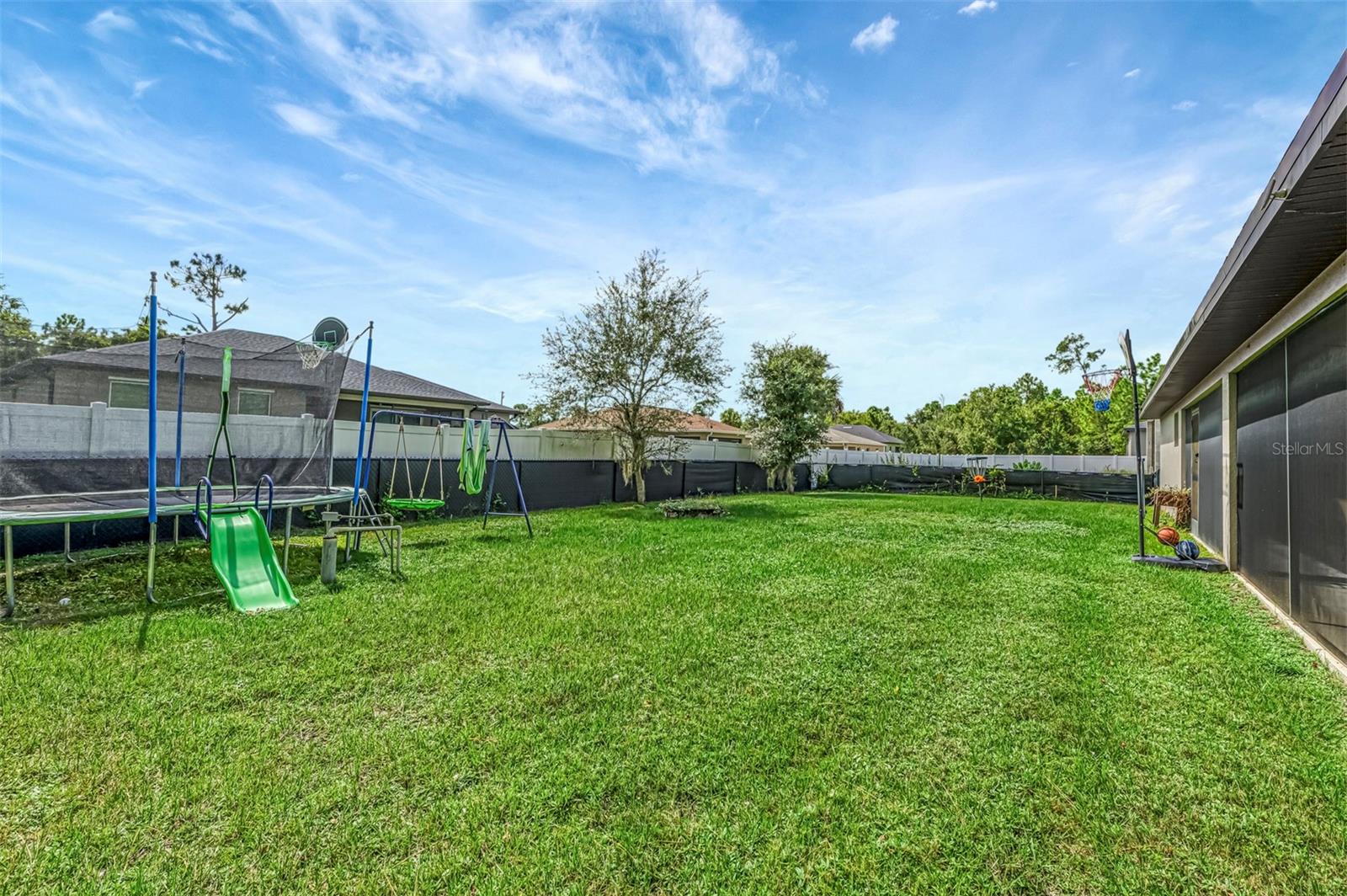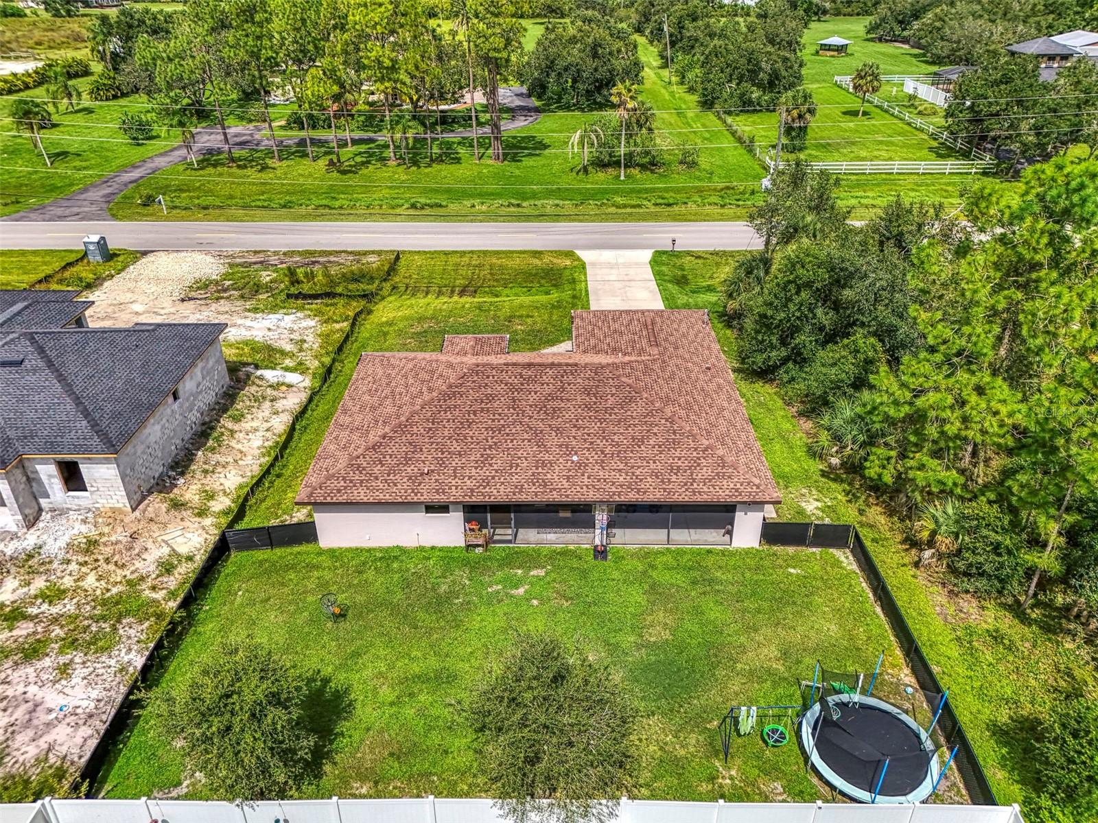 NORTH PORT ESTATES BEAUTY! Built in 2019 and offering nearly 1,700 square feet of UPGRADED living space, this 3-bedroom, 2-bathroom home—with an ADDITIONAL DEN OR OFFICE featuring a decorative BARN DOOR that can easily serve as a 4th bedroom—delivers the perfect blend of style, comfort, and practicality. With a NEW ROOF (2023), no HOA fees, and NO FLOOD ZONE, this property is ready for worry-free living. Step inside and feel the open flow of cathedral ceilings and elegant plank tile flooring throughout. The great room seamlessly connects to a gorgeous modern kitchen, complete with a CENTER ISLAND QUARTZ OPEN BREAKFAST BAR, SLOW-CLOSE WOOD CABINETRY WITH CROWN MOLDING, SUBWAY TILE BACKSPLASH & BLACK STAINLESS -STEEL APPLIANCES and UPGRADED PENDANT LIGHTING. Whether preparing a meal or entertaining, this kitchen makes it easy and enjoyable. The dining area’s FRENCH DOORS open to an HUGE OVERSIZED 12x37-FT. COVERED LANAI, overlooking a FENCED BACKYARD with room to relax, play, or garden. (Yes, the trampoline can stay!) Enjoy outdoor living all year long in privacy and peace. The primary suite is a showpiece with a tray ceiling, a large walk-in closet, and a luxurious ensuite featuring DUAL QUARTZ SINKS, a GARDEN TUB, and a MULTI HEAD SHOWER. Both guest bedrooms are generously sized—13x11—with walk-in closets and ceiling fans. The guest bath includes a tub/shower combo and stylish finishes. Additional highlights include: indoor laundry with washer and dryer, BRICK PAVER DRIVEWAY & WALKWAY, FULL HURRICANE PROTECTION, newer well, UPDATED A/C, WATER SOFTNOR, and SECURITY CAMERAS. Located in sought-after North Port Estates, you’ll enjoy the quiet country feel while being just minutes from city conveniences. Nearby Myakkahatchee Creek Environmental Park offers scenic walking and biking trails, horseback riding, fishing, and picnic areas. You’re also close to I-75, the new Sarasota Memorial Hospital, shopping, restaurants, and top local attractions. Move-in ready, beautifully maintained, and priced right—this home checks every box. FURNITURE IS NEGOTIALE! Schedule your private showing today!
