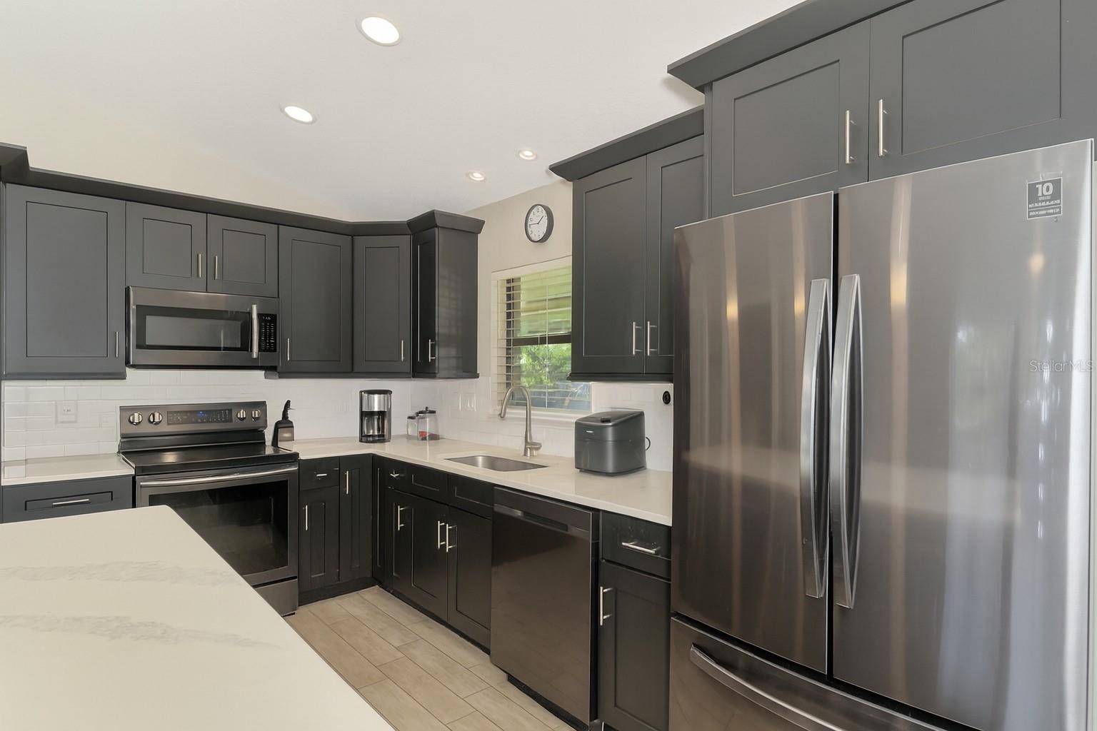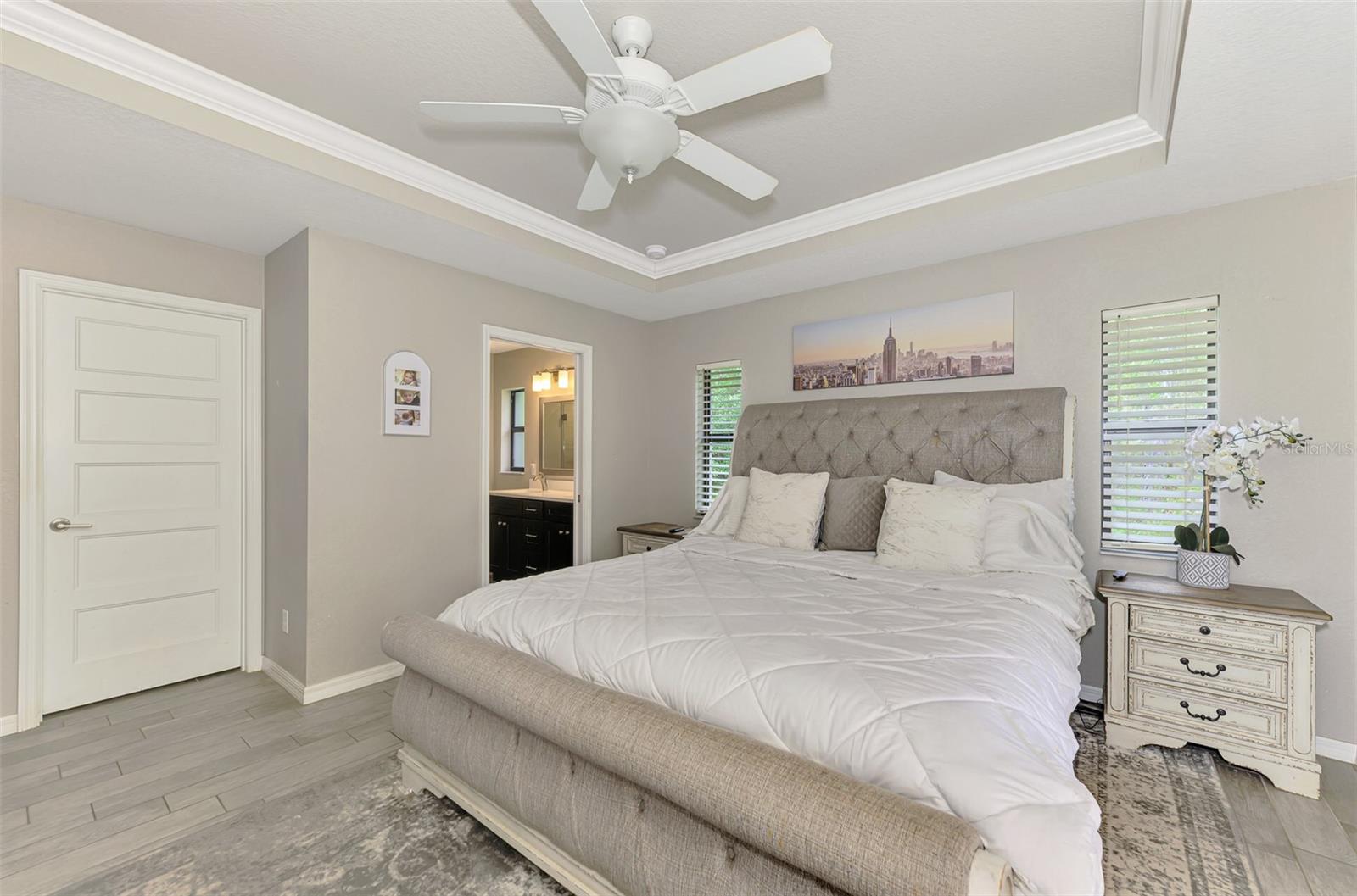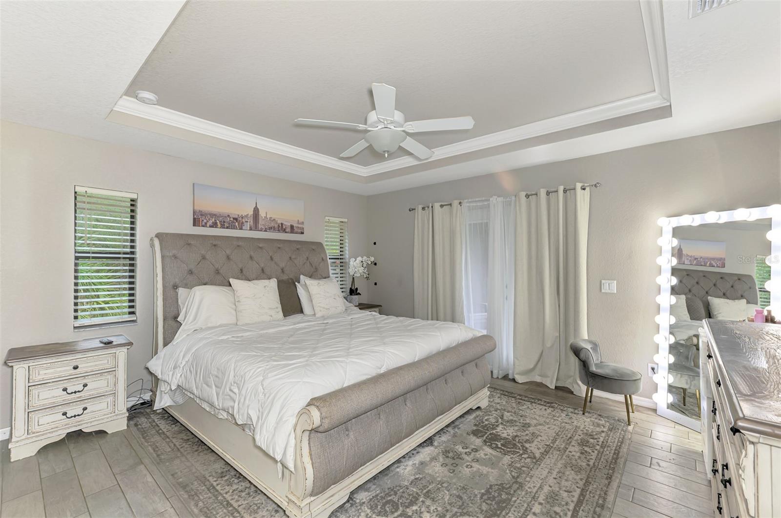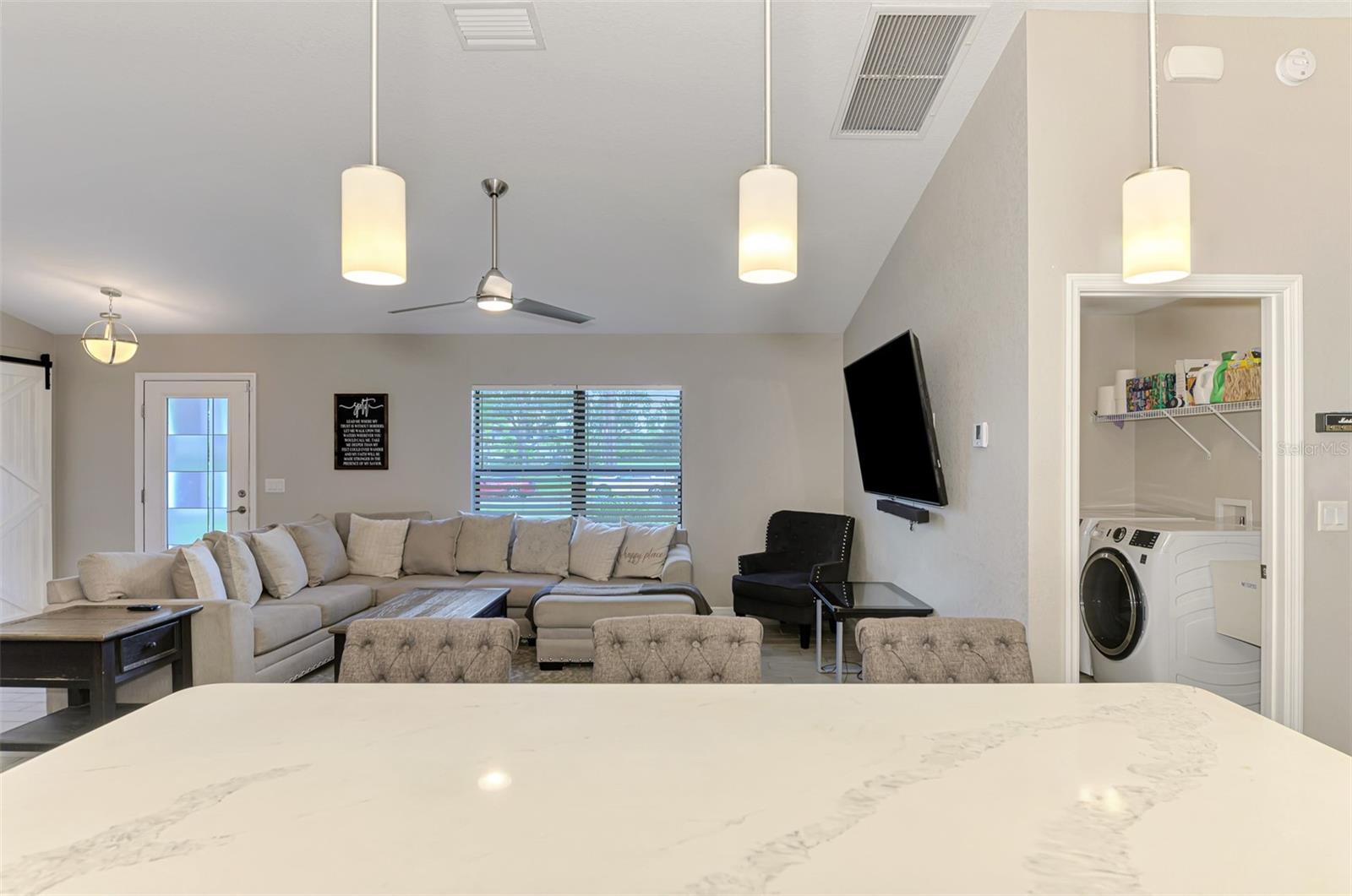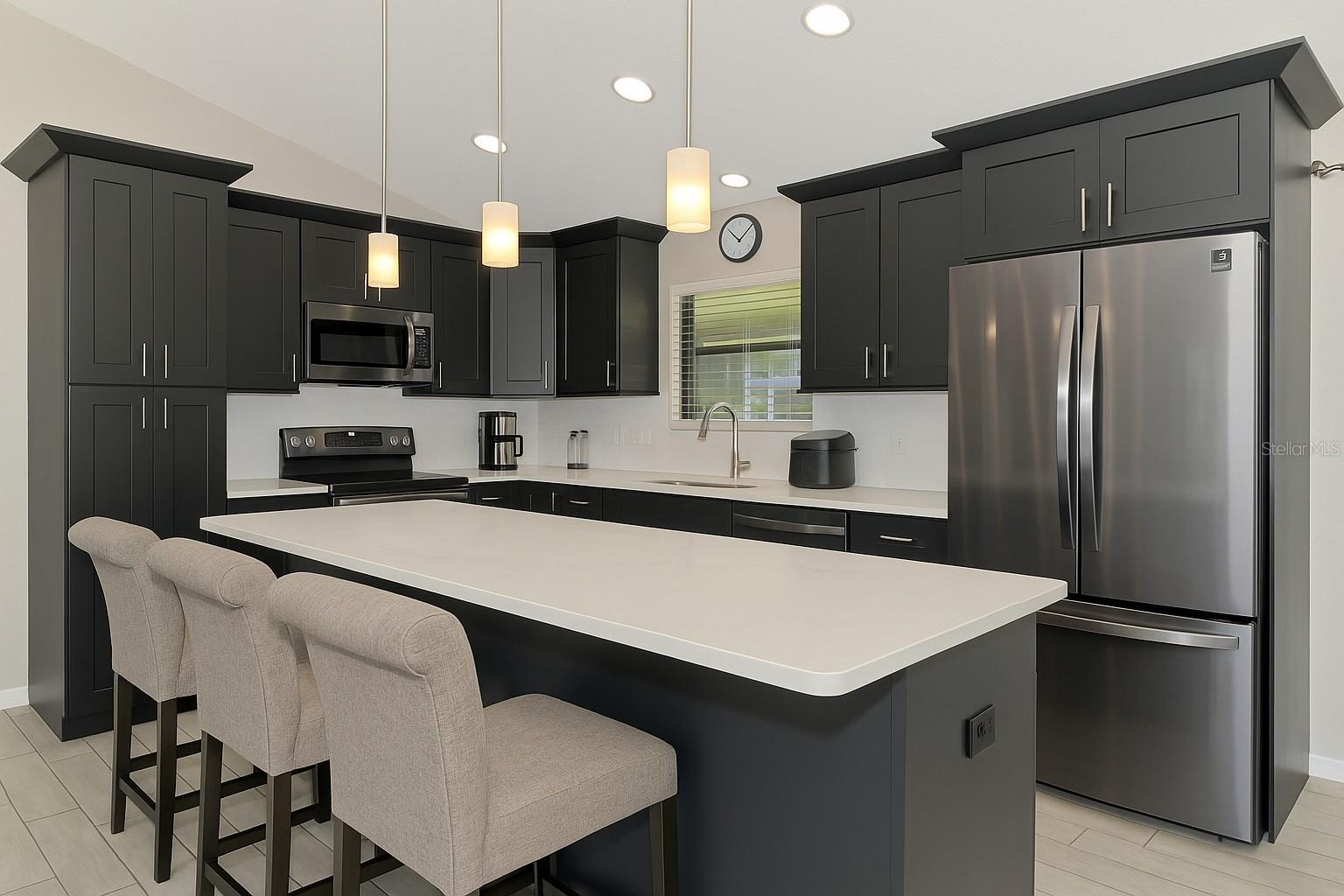 NORTH PORT ESTATES BEAUTY! Built in 2019 and offering nearly 1,700 square feet of UPGRADED living space, this 3-bedroom, 2-bathroom home—with an ADDITIONAL DEN OR OFFICE featuring a decorative BARN DOOR that can easily serve as a 4th bedroom—delivers the perfect blend of style, comfort, and practicality. With a NEW ROOF (2023), no HOA fees, and NO FLOOD ZONE, this property is ready for worry-free living. Step inside and feel the open flow of cathedral ceilings and elegant plank tile flooring throughout. The great room seamlessly connects to a gorgeous modern kitchen, complete with a CENTER ISLAND QUARTZ OPEN BREAKFAST BAR, SLOW-CLOSE WOOD CABINETRY WITH CROWN MOLDING, SUBWAY TILE BACKSPLASH & BLACK STAINLESS -STEEL APPLIANCES and UPGRADED PENDANT LIGHTING. Whether preparing a meal or entertaining, this kitchen makes it easy and enjoyable. The dining area’s FRENCH DOORS open to an HUGE OVERSIZED 12x37-FT. COVERED LANAI, overlooking a FENCED BACKYARD with room to relax, play, or garden. (Yes, the trampoline can stay!) Enjoy outdoor living all year long in privacy and peace. The primary suite is a showpiece with a tray ceiling, a large walk-in closet, and a luxurious ensuite featuring DUAL QUARTZ SINKS, a GARDEN TUB, and a MULTI HEAD SHOWER. Both guest bedrooms are generously sized—13x11—with walk-in closets and ceiling fans. The guest bath includes a tub/shower combo and stylish finishes. Additional highlights include: indoor laundry with washer and dryer, BRICK PAVER DRIVEWAY & WALKWAY, FULL HURRICANE PROTECTION, newer well, UPDATED A/C, WATER SOFTNOR, and SECURITY CAMERAS. Located in sought-after North Port Estates, you’ll enjoy the quiet country feel while being just minutes from city conveniences. Nearby Myakkahatchee Creek Environmental Park offers scenic walking and biking trails, horseback riding, fishing, and picnic areas. You’re also close to I-75, the new Sarasota Memorial Hospital, shopping, restaurants, and top local attractions. Move-in ready, beautifully maintained, and priced right—this home checks every box. FURNITURE IS NEGOTIALE! Schedule your private showing today!