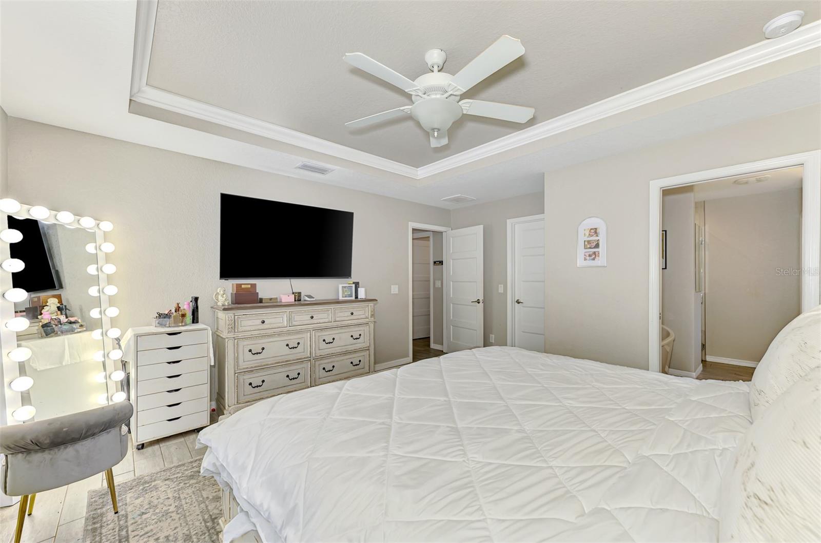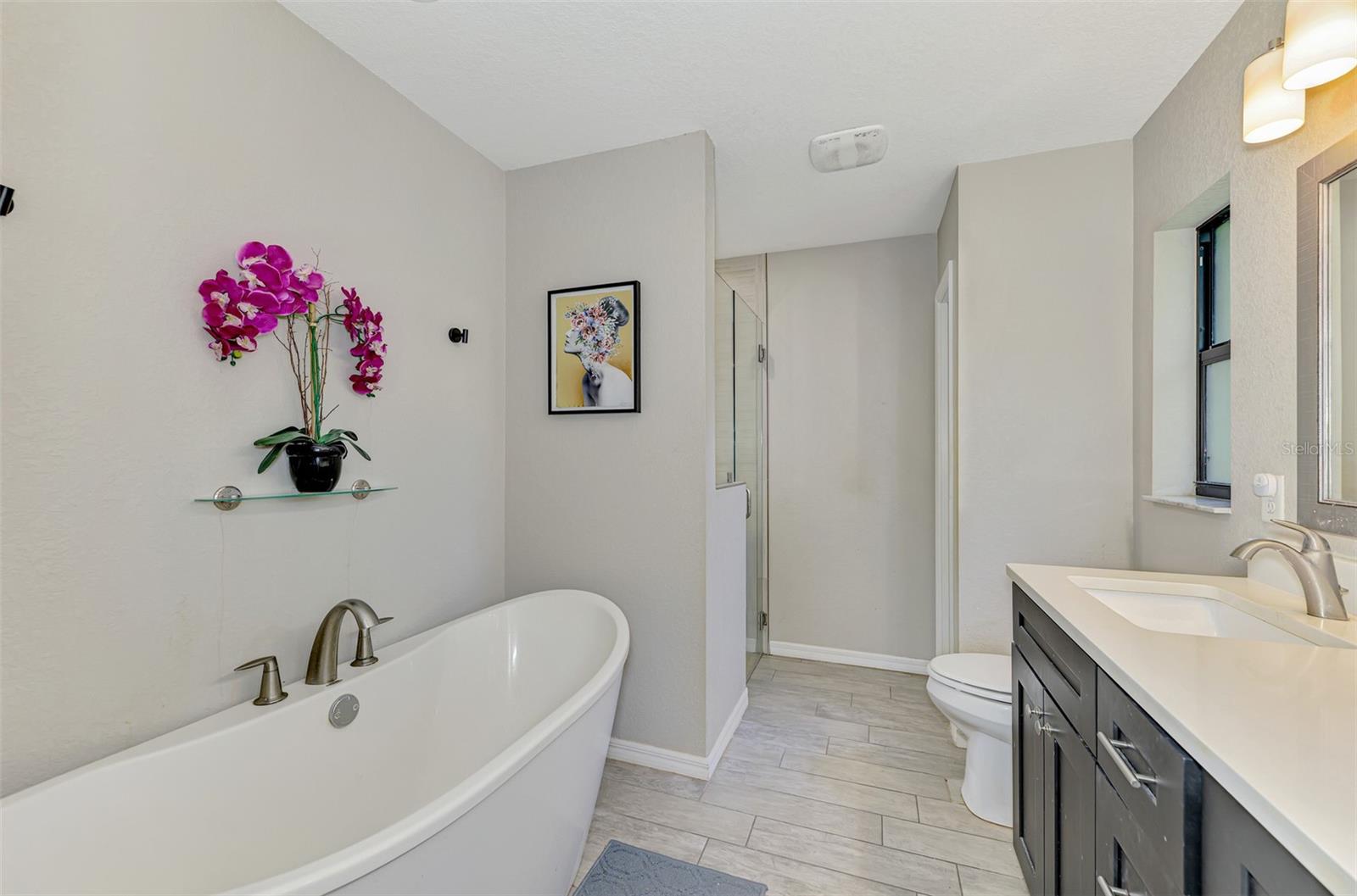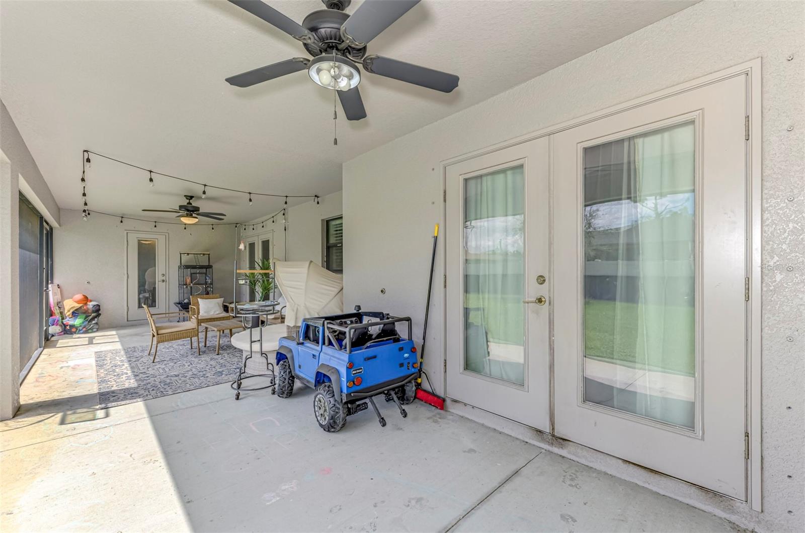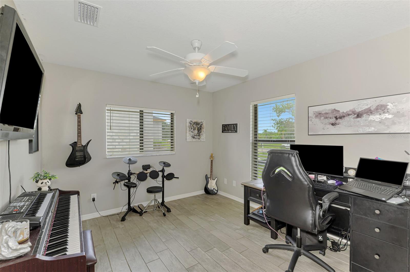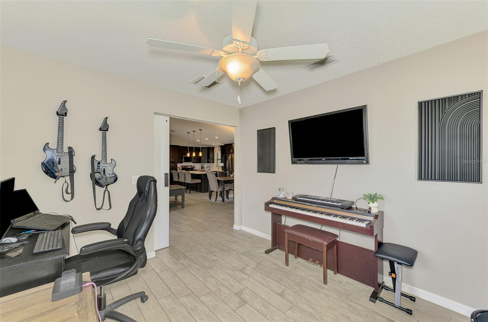 NORTH PORT ESTATES BEAUTY! Built in 2019 and offering nearly 1,700 square feet of UPGRADED living space, this 3-bedroom, 2-bathroom home—with an ADDITIONAL DEN OR OFFICE featuring a decorative BARN DOOR that can easily serve as a 4th bedroom—delivers the perfect blend of style, comfort, and practicality. With a NEW ROOF (2023), no HOA fees, and NO FLOOD ZONE, this property is ready for worry-free living. Step inside and feel the open flow of cathedral ceilings and elegant plank tile flooring throughout. The great room seamlessly connects to a gorgeous modern kitchen, complete with a CENTER ISLAND QUARTZ OPEN BREAKFAST BAR, SLOW-CLOSE WOOD CABINETRY WITH CROWN MOLDING, SUBWAY TILE BACKSPLASH & BLACK STAINLESS -STEEL APPLIANCES and UPGRADED PENDANT LIGHTING. Whether preparing a meal or entertaining, this kitchen makes it easy and enjoyable. The dining area’s FRENCH DOORS open to an HUGE OVERSIZED 12x37-FT. COVERED LANAI, overlooking a FENCED BACKYARD with room to relax, play, or garden. (Yes, the trampoline can stay!) Enjoy outdoor living all year long in privacy and peace. The primary suite is a showpiece with a tray ceiling, a large walk-in closet, and a luxurious ensuite featuring DUAL QUARTZ SINKS, a GARDEN TUB, and a MULTI HEAD SHOWER. Both guest bedrooms are generously sized—13x11—with walk-in closets and ceiling fans. The guest bath includes a tub/shower combo and stylish finishes. Additional highlights include: indoor laundry with washer and dryer, BRICK PAVER DRIVEWAY & WALKWAY, FULL HURRICANE PROTECTION, newer well, UPDATED A/C, WATER SOFTNOR, and SECURITY CAMERAS. Located in sought-after North Port Estates, you’ll enjoy the quiet country feel while being just minutes from city conveniences. Nearby Myakkahatchee Creek Environmental Park offers scenic walking and biking trails, horseback riding, fishing, and picnic areas. You’re also close to I-75, the new Sarasota Memorial Hospital, shopping, restaurants, and top local attractions. Move-in ready, beautifully maintained, and priced right—this home checks every box. FURNITURE IS NEGOTIALE! Schedule your private showing today!