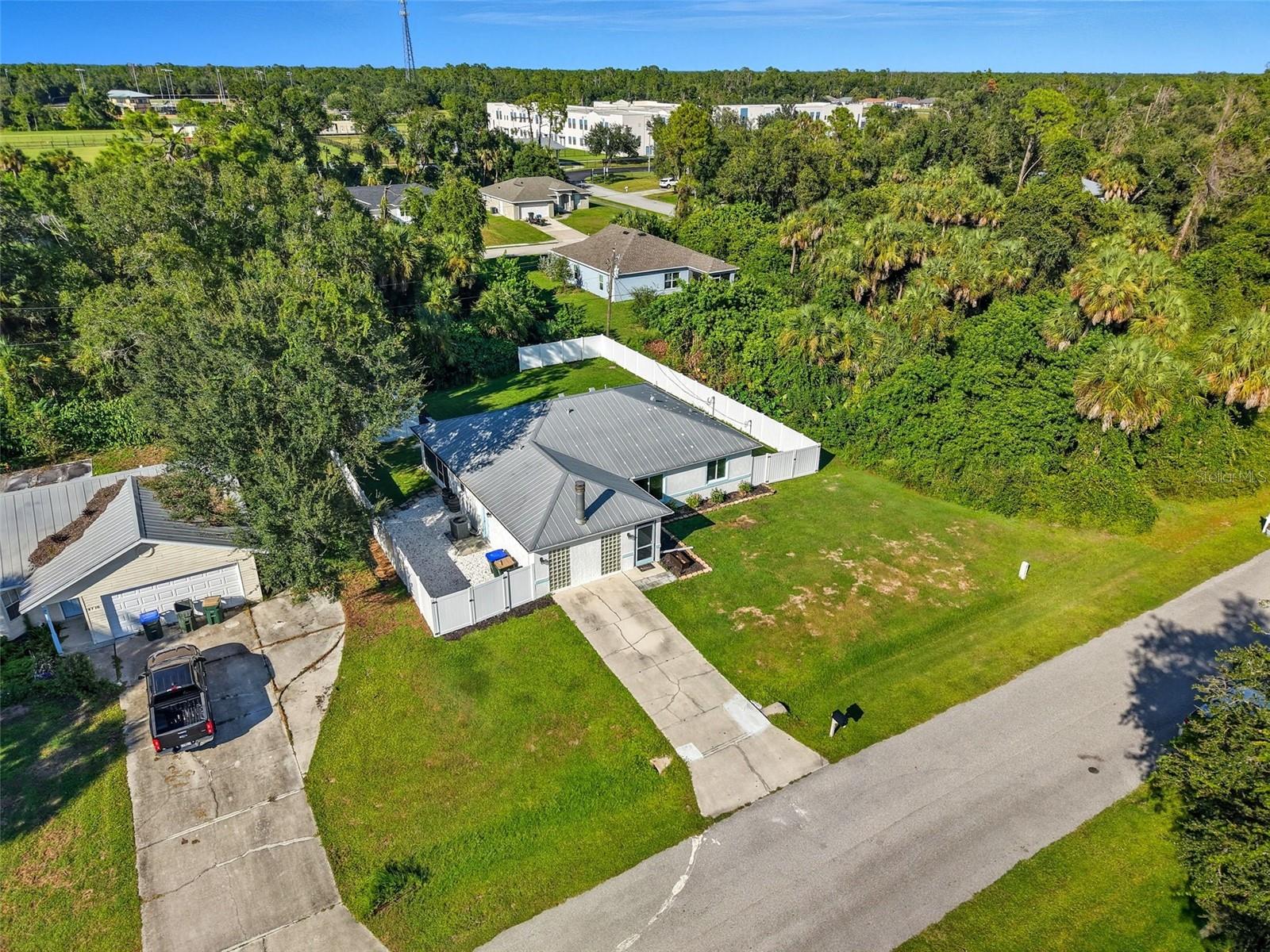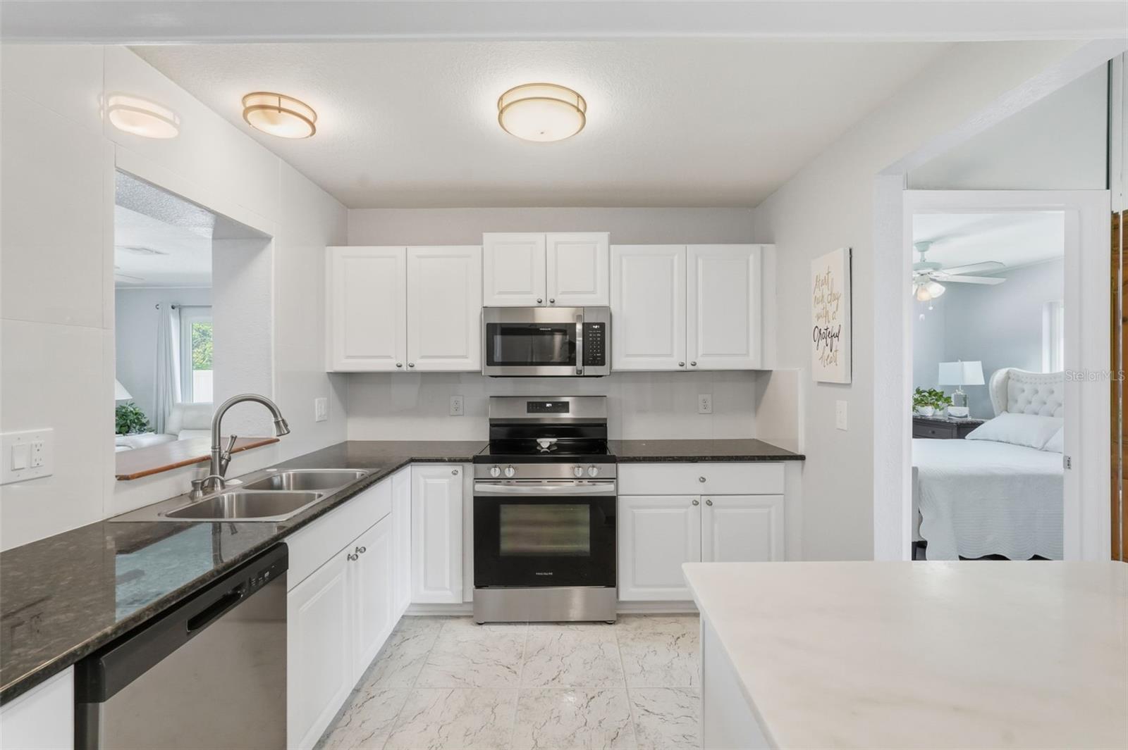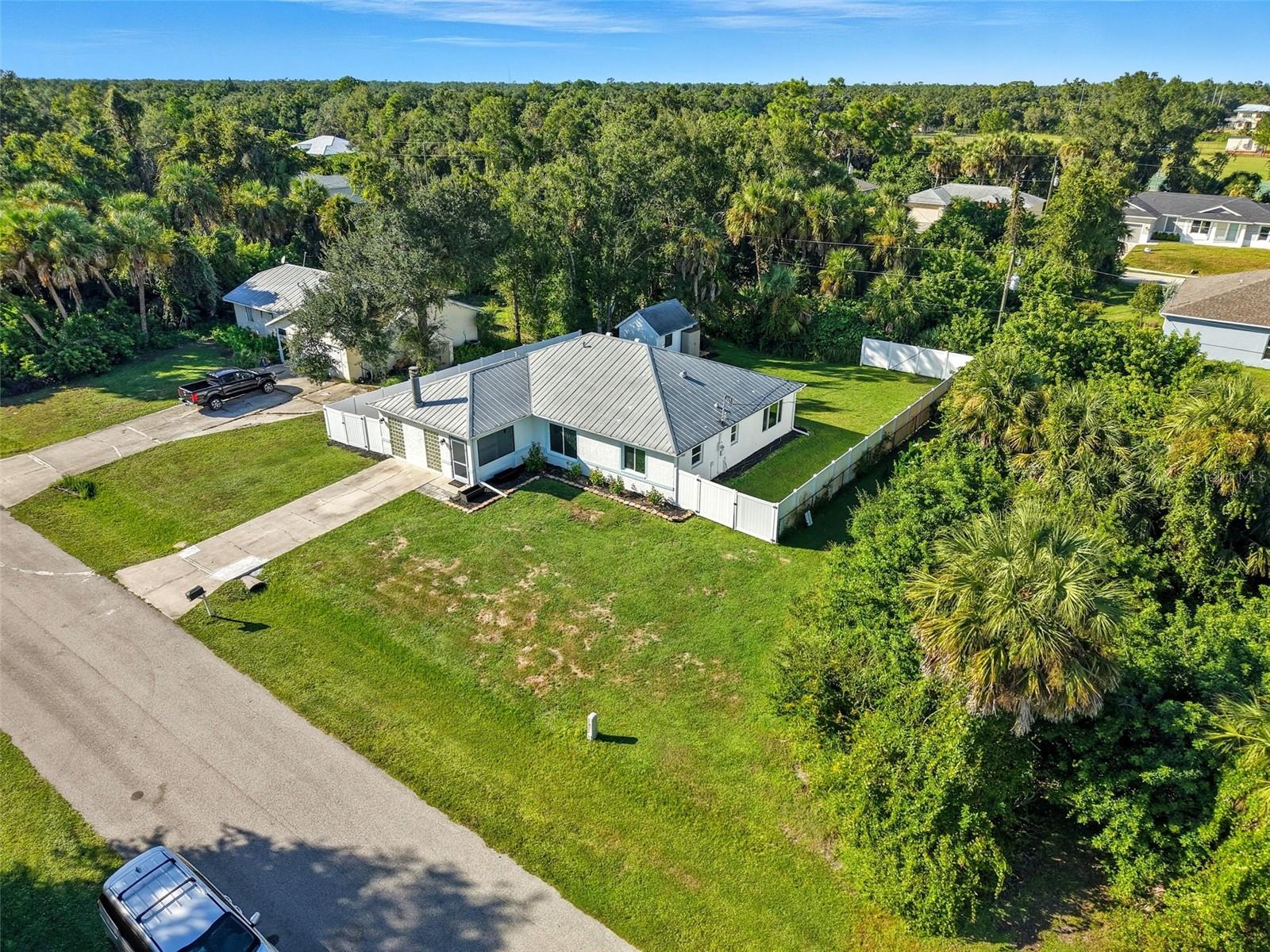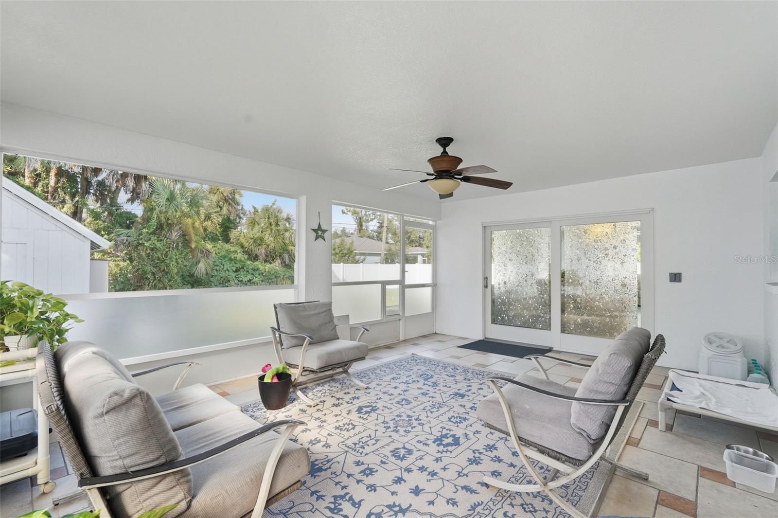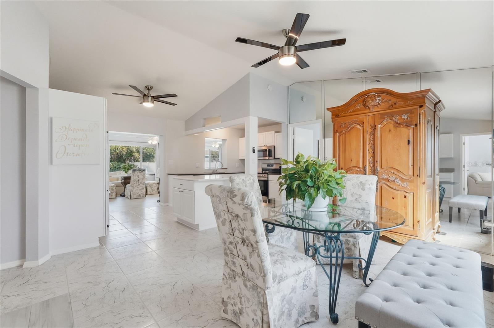 Welcome to this beautifully updated home in a desirable North Port location, just minutes from shopping, dining, schools, and easy access to I-75. With thoughtful upgrades inside and out, this residence is truly move-in ready. Step inside to discover a spacious 2-bedroom, 2-bathroom layout with a versatile family room with some storage, featuring a wood-burning fireplace—perfect for a cozy retreat, office, or den. The split floor plan provides privacy, while new tile flooring in the great room and both bedrooms adds a fresh, modern feel. The inviting great room is filled with natural light from the large windows and opens to the fully screened lanai through attractive sliding glass doors, creating the perfect flow for indoor-outdoor living. The kitchen has been refreshed with some new cabinets, and quartz countertops, an expanded island with elegant marble countertop (for it's heat resistance), offering both functionality and style for cooking, entertaining, and gathering. The interior and exterior have been freshly painted, giving the home a crisp, welcoming appeal. Additional updates include: new hurricane impact windows (2024), AC, hot water heater, and electrical panel (2023), plus a brand-new range/oven, dishwasher, washer, and dryer (2024). The durable metal roof (2007) provides peace of mind, and the property is not located in a flood zone. With modern finishes, low-maintenance living, and a convenient North Port location close to Gulf beaches, parks, and Warm Mineral Springs, this home is packed with character and ready for its new owner.