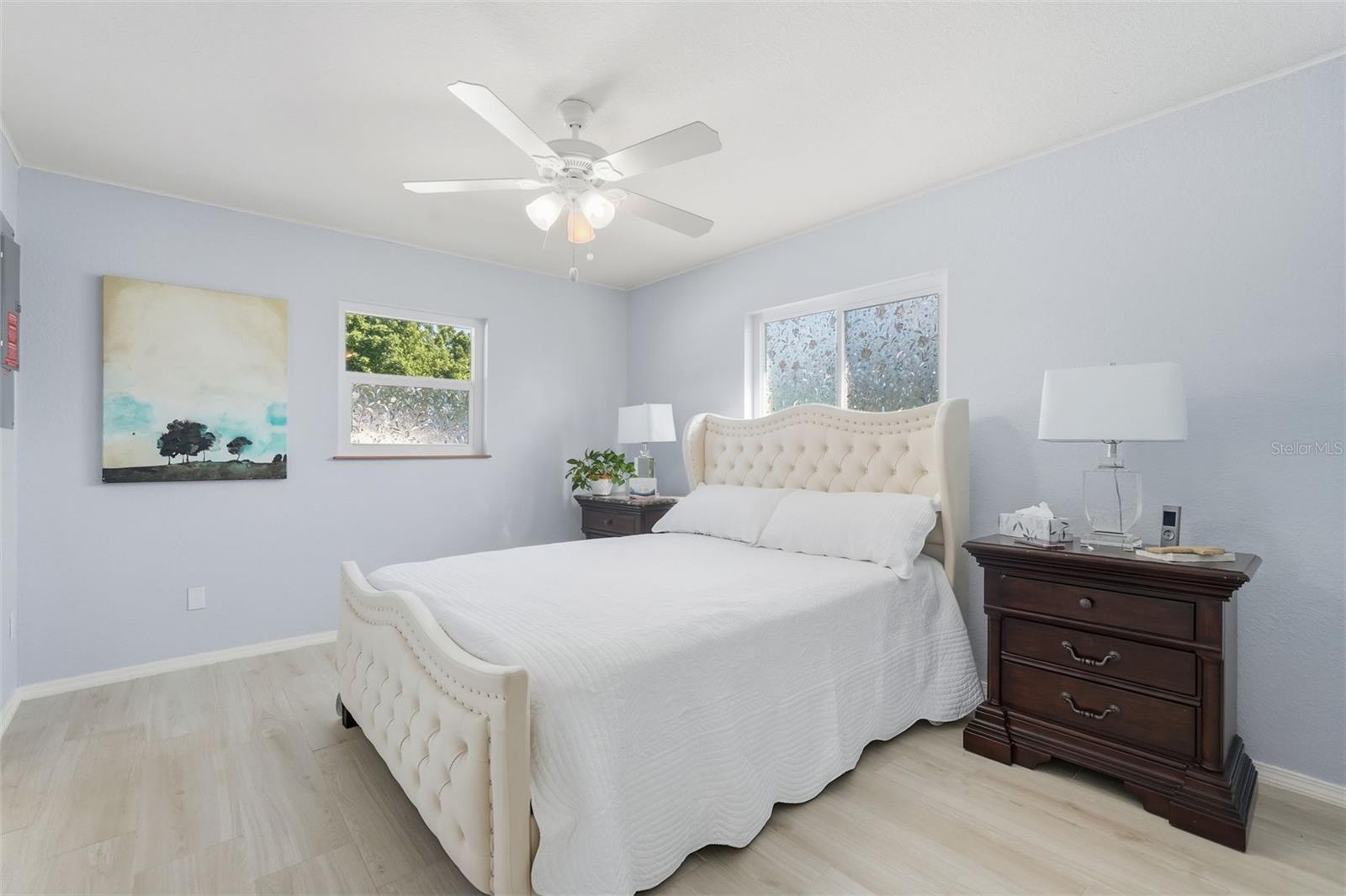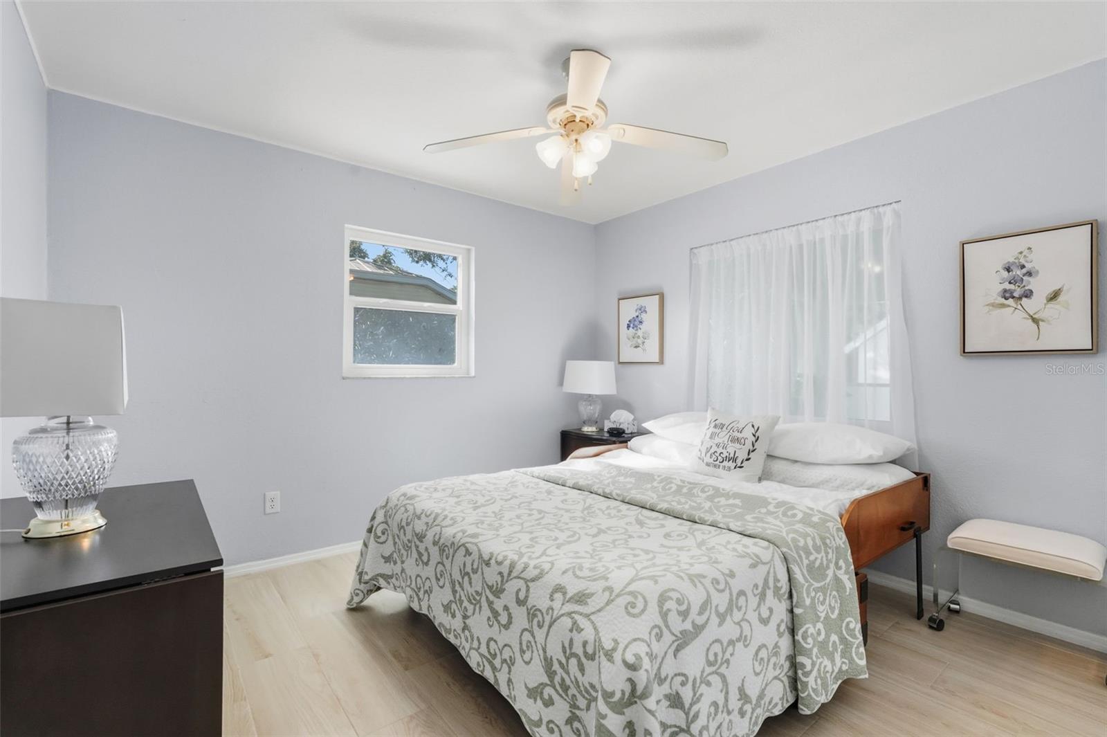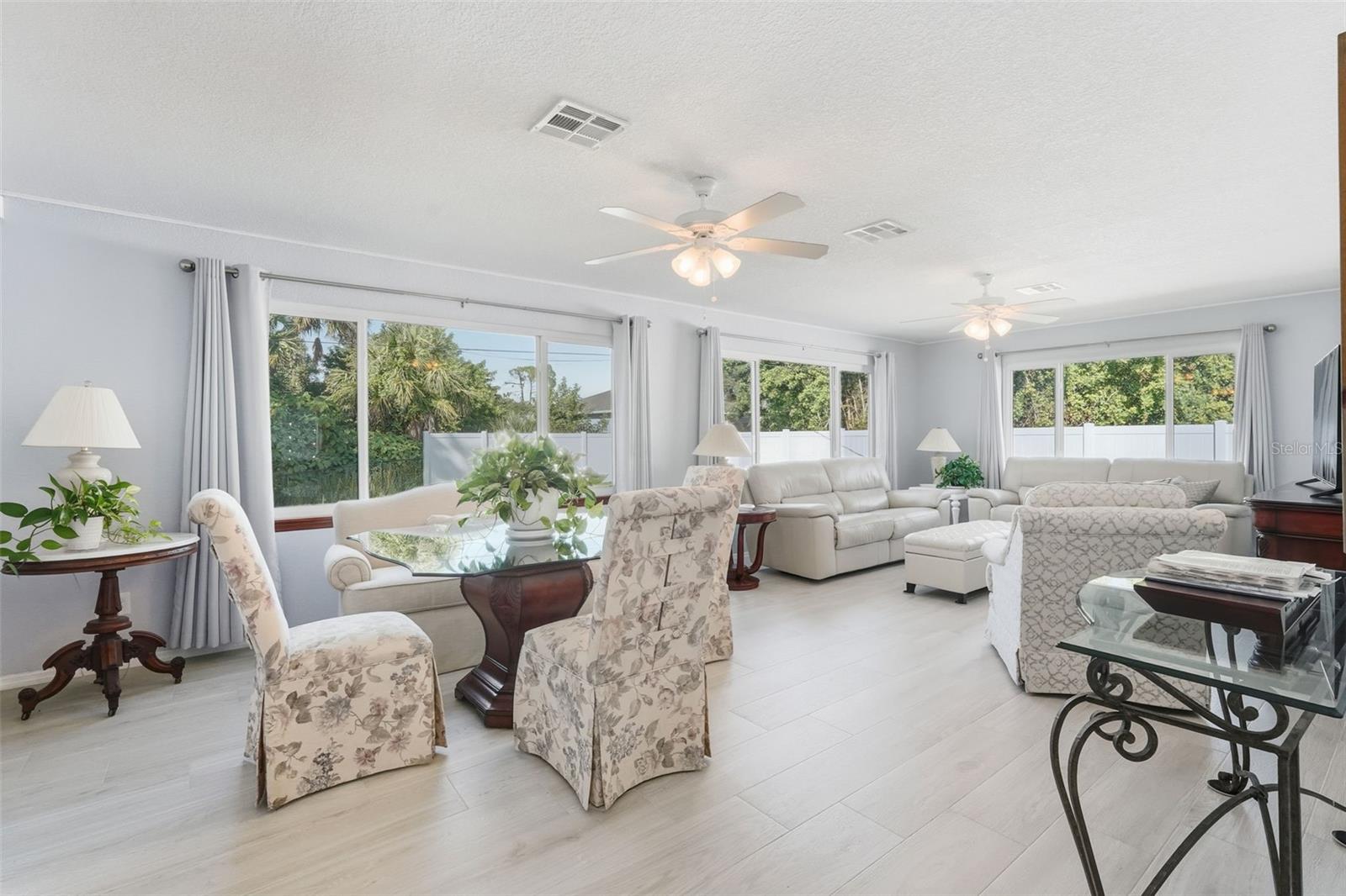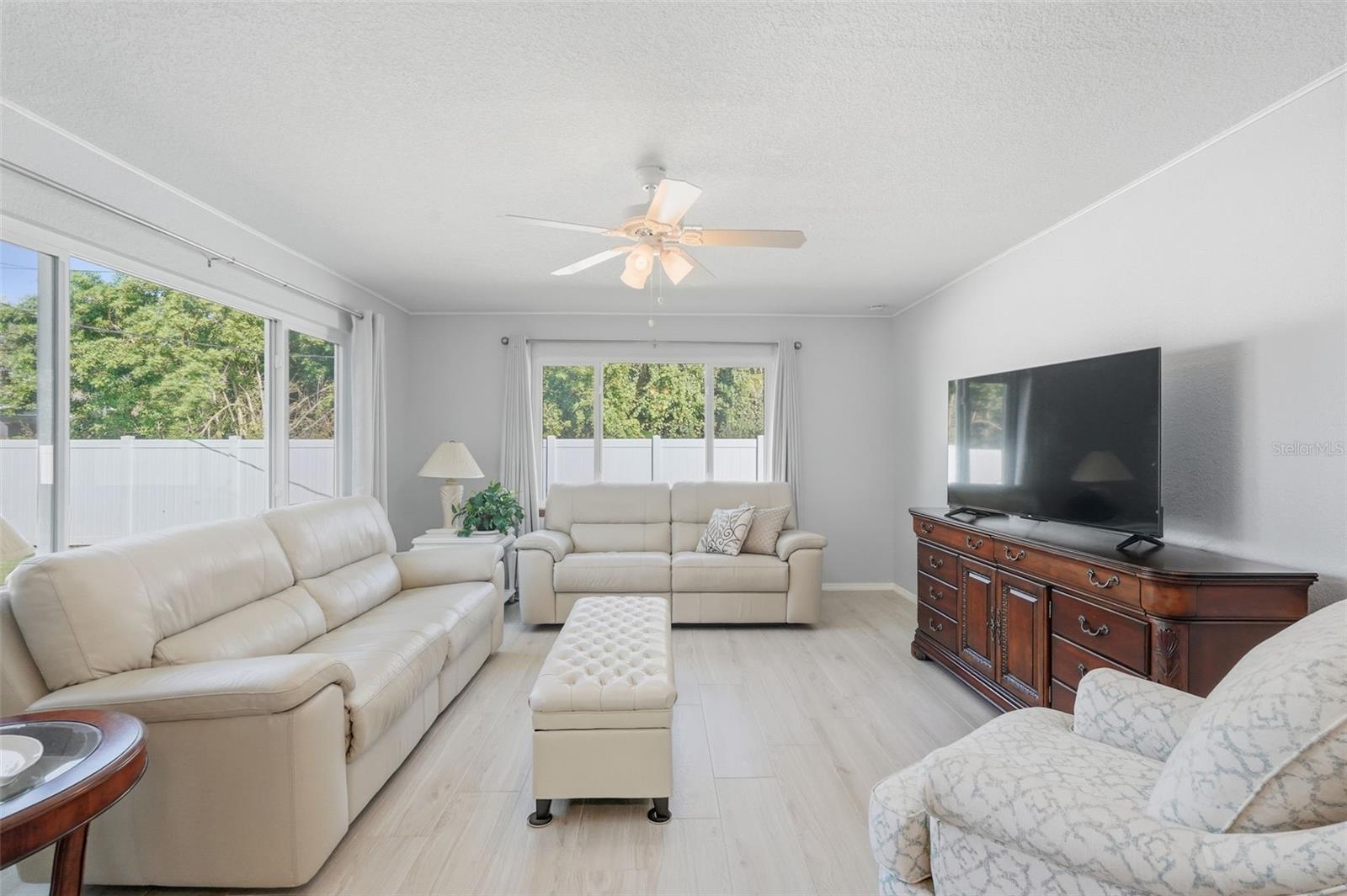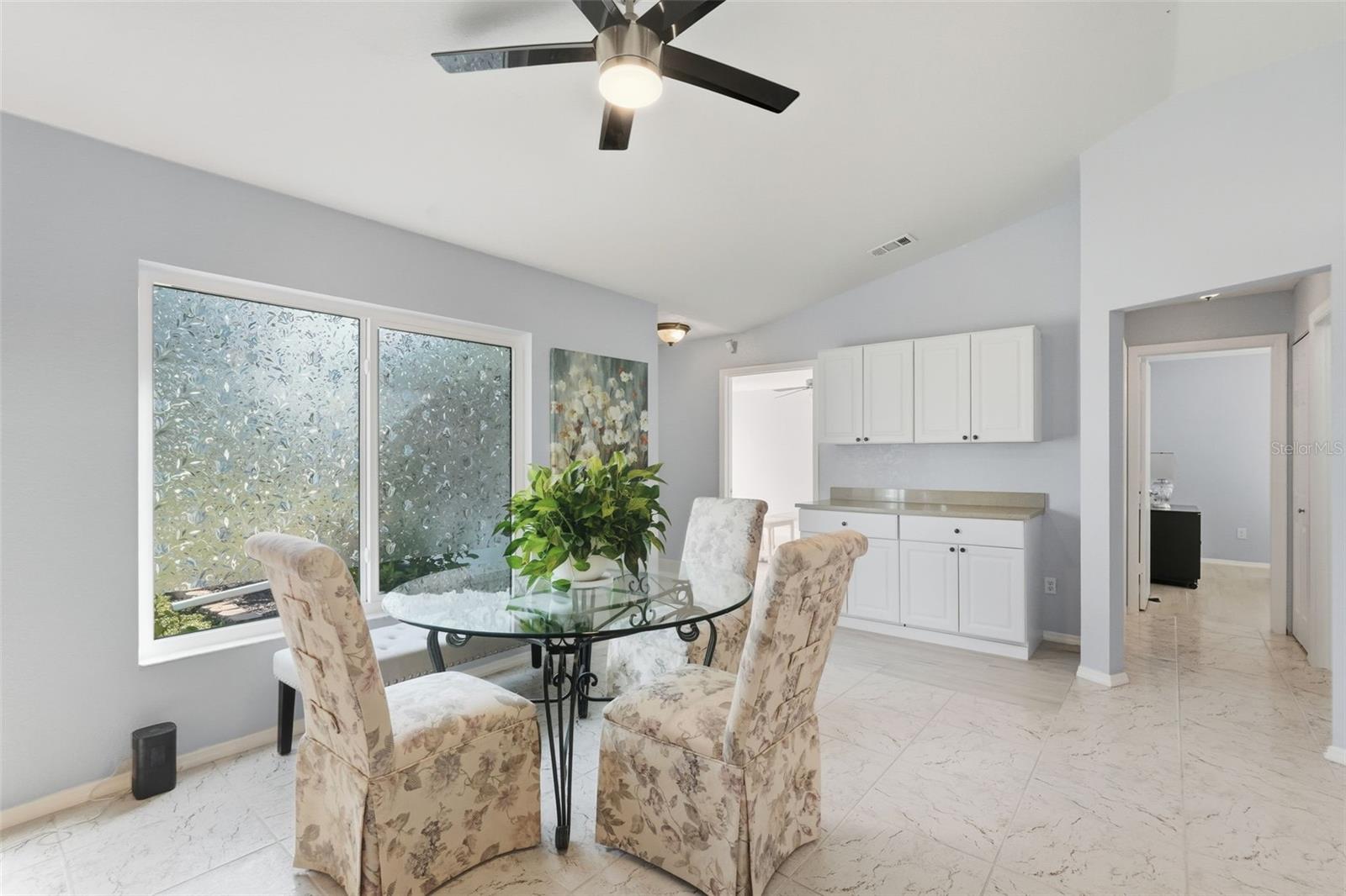 Welcome to this beautifully updated home in a desirable North Port location, just minutes from shopping, dining, schools, and easy access to I-75. With thoughtful upgrades inside and out, this residence is truly move-in ready. Step inside to discover a spacious 2-bedroom, 2-bathroom layout with a versatile family room with some storage, featuring a wood-burning fireplace—perfect for a cozy retreat, office, or den. The split floor plan provides privacy, while new tile flooring in the great room and both bedrooms adds a fresh, modern feel. The inviting great room is filled with natural light from the large windows and opens to the fully screened lanai through attractive sliding glass doors, creating the perfect flow for indoor-outdoor living. The kitchen has been refreshed with some new cabinets, and quartz countertops, an expanded island with elegant marble countertop (for it's heat resistance), offering both functionality and style for cooking, entertaining, and gathering. The interior and exterior have been freshly painted, giving the home a crisp, welcoming appeal. Additional updates include: new hurricane impact windows (2024), AC, hot water heater, and electrical panel (2023), plus a brand-new range/oven, dishwasher, washer, and dryer (2024). The durable metal roof (2007) provides peace of mind, and the property is not located in a flood zone. With modern finishes, low-maintenance living, and a convenient North Port location close to Gulf beaches, parks, and Warm Mineral Springs, this home is packed with character and ready for its new owner.