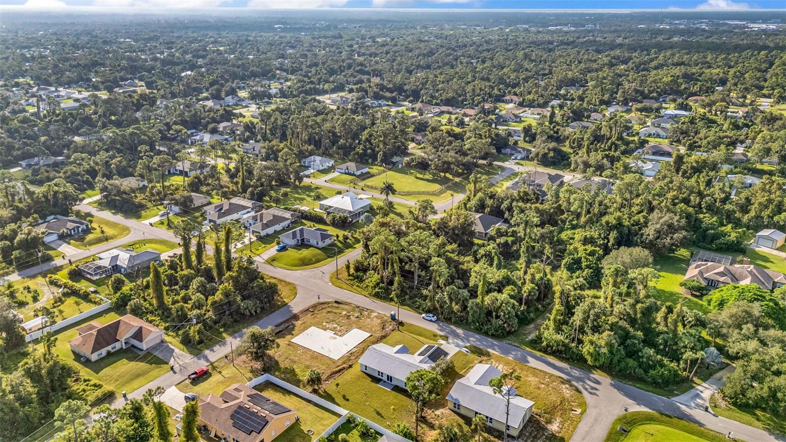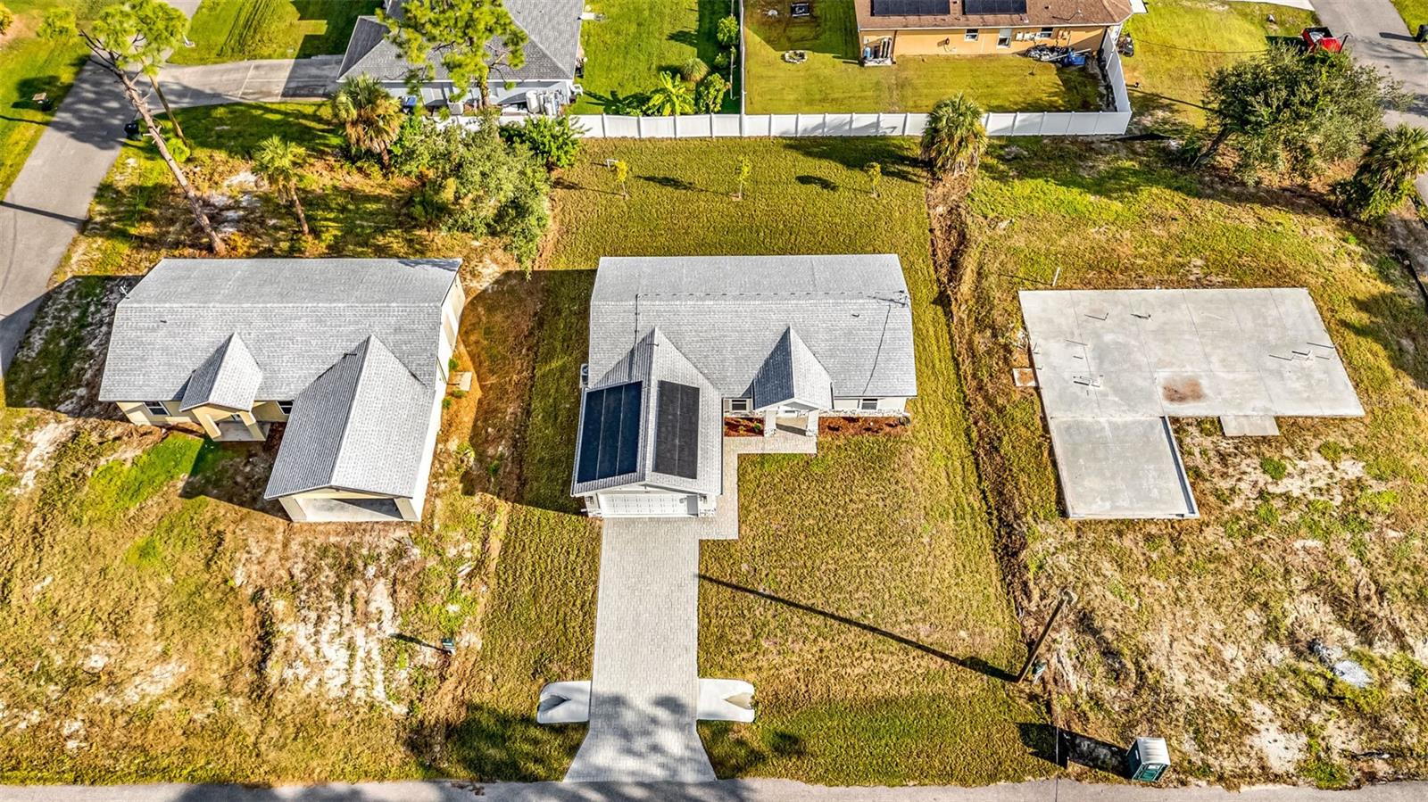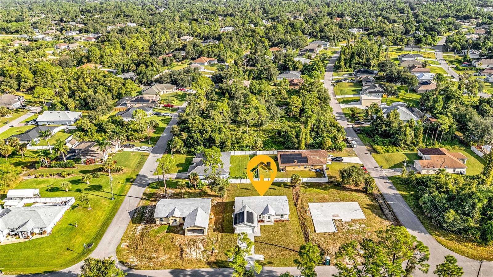 One or more photo(s) has been virtually staged. Solar-Powered, Energy-Efficient SIP Home – Modern Florida Living! This brand-new 3-bedroom, 2-bath home with a den/office and 2-car garage is not your traditional block or wood-framed home. Built with Structural Insulated Panels (SIPs)—a high-performance system featuring an insulating foam core and cement board exterior—this home can withstand winds up to 200 mph. SIPs are fire-resistant, self-extinguishing, non-toxic, and resistant to mold, corrosion, and termites, offering exceptional durability and energy efficiency. Step inside to a light and bright open split floor plan featuring luxury vinyl plank flooring, quartz countertops, and stainless steel appliances in the stylish kitchen. The den with barn doors provides the perfect flex space for an office for guest room. The primary suite offers a walk-in closet and ensuite bathroom with dual sinks and a walk-in shower, while the guest bedrooms are generously sized for comfort and versatility. Enjoy year-round savings with energy-efficient Low-E windows and your solar panels included with the house. Outside, the large backyard is a blank slate to create your own outdoor oasis. Conveniently located near shopping, dining, I-75, and CoolToday Park, this non-HOA home in an X flood zone means no flood insurance required and the freedom to live your way. Combining cutting-edge construction with modern finishes, this North Port home sets a new standard for comfort, sustainability, and durability.