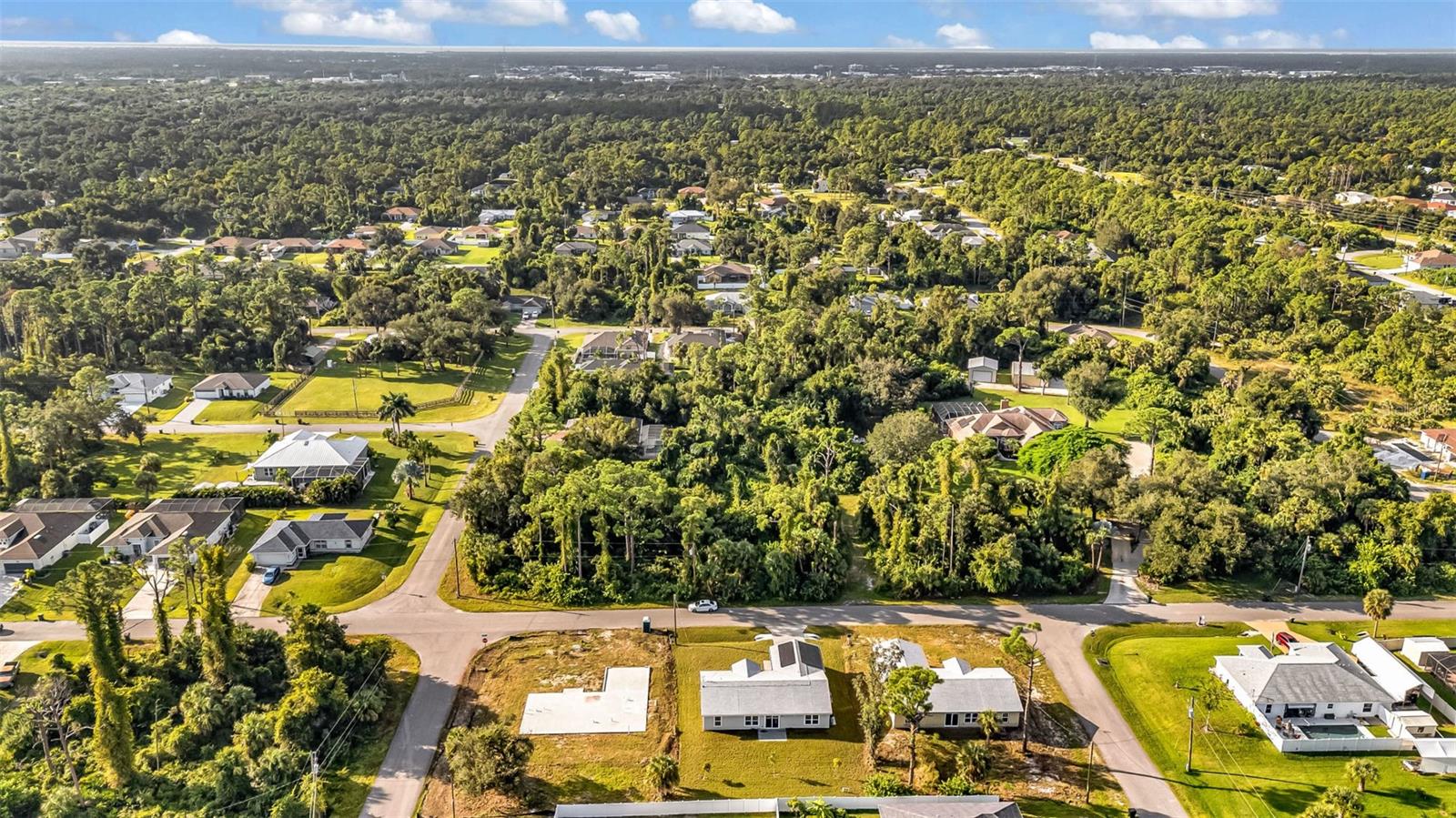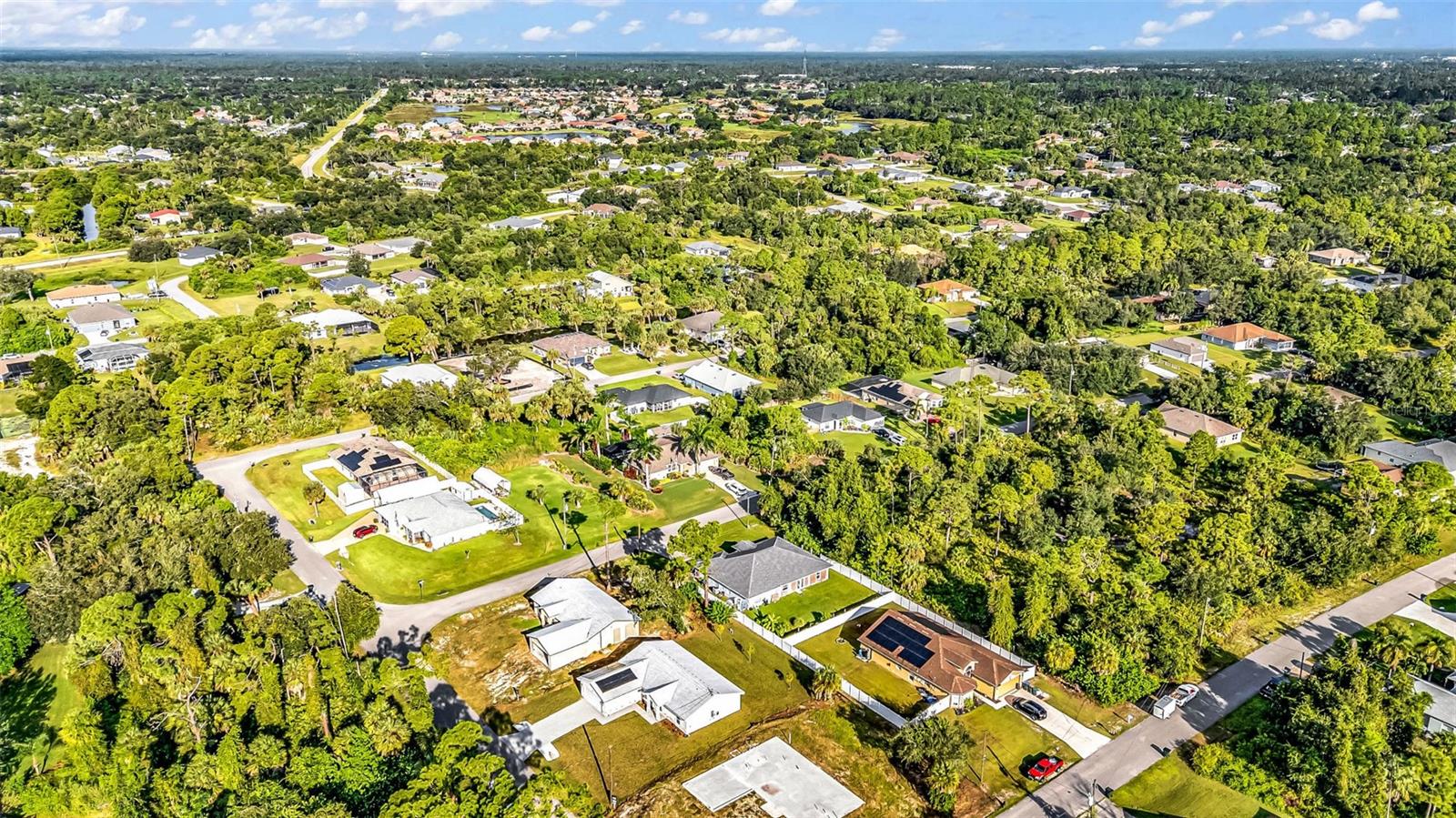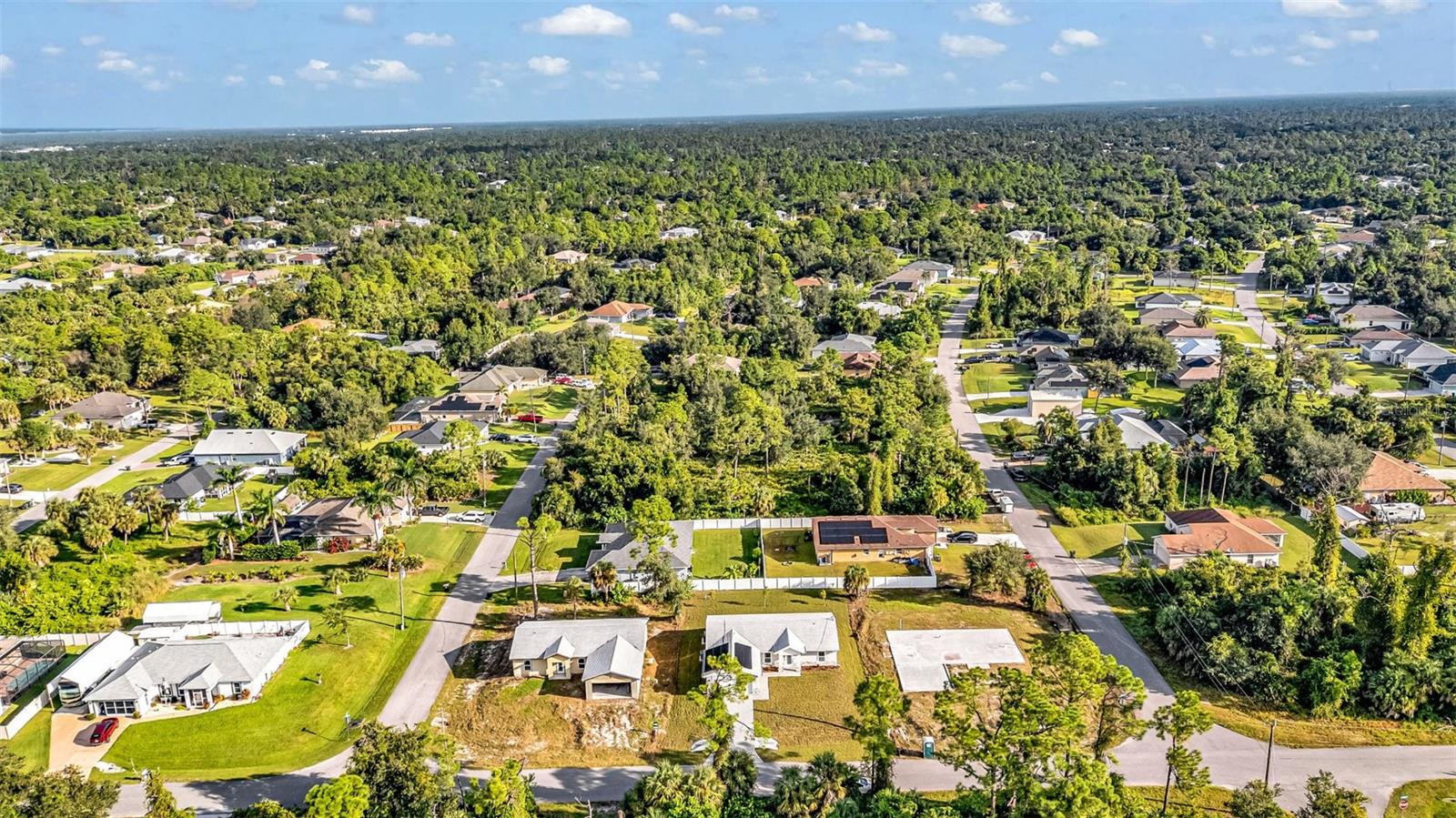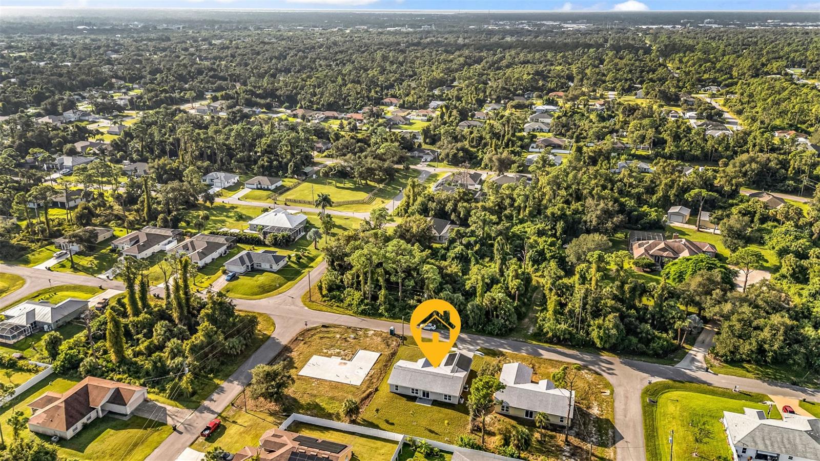 One or more photo(s) has been virtually staged. Solar-Powered, Energy-Efficient SIP Home – Modern Florida Living! This brand-new 3-bedroom, 2-bath home with a den/office and 2-car garage is not your traditional block or wood-framed home. Built with Structural Insulated Panels (SIPs)—a high-performance system featuring an insulating foam core and cement board exterior—this home can withstand winds up to 200 mph. SIPs are fire-resistant, self-extinguishing, non-toxic, and resistant to mold, corrosion, and termites, offering exceptional durability and energy efficiency. Step inside to a light and bright open split floor plan featuring luxury vinyl plank flooring, quartz countertops, and stainless steel appliances in the stylish kitchen. The den with barn doors provides the perfect flex space for an office for guest room. The primary suite offers a walk-in closet and ensuite bathroom with dual sinks and a walk-in shower, while the guest bedrooms are generously sized for comfort and versatility. Enjoy year-round savings with energy-efficient Low-E windows and your solar panels included with the house. Outside, the large backyard is a blank slate to create your own outdoor oasis. Conveniently located near shopping, dining, I-75, and CoolToday Park, this non-HOA home in an X flood zone means no flood insurance required and the freedom to live your way. Combining cutting-edge construction with modern finishes, this North Port home sets a new standard for comfort, sustainability, and durability.