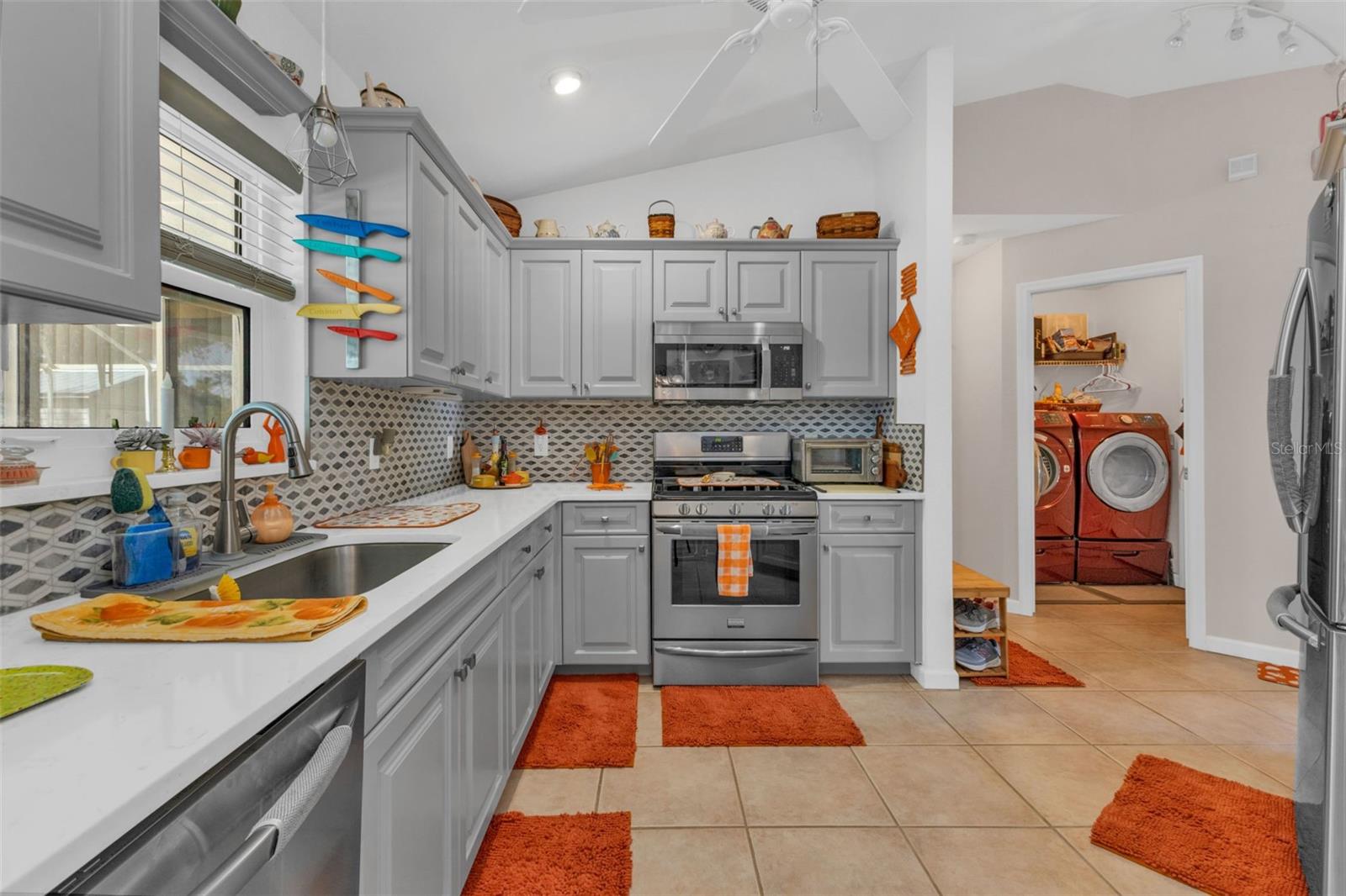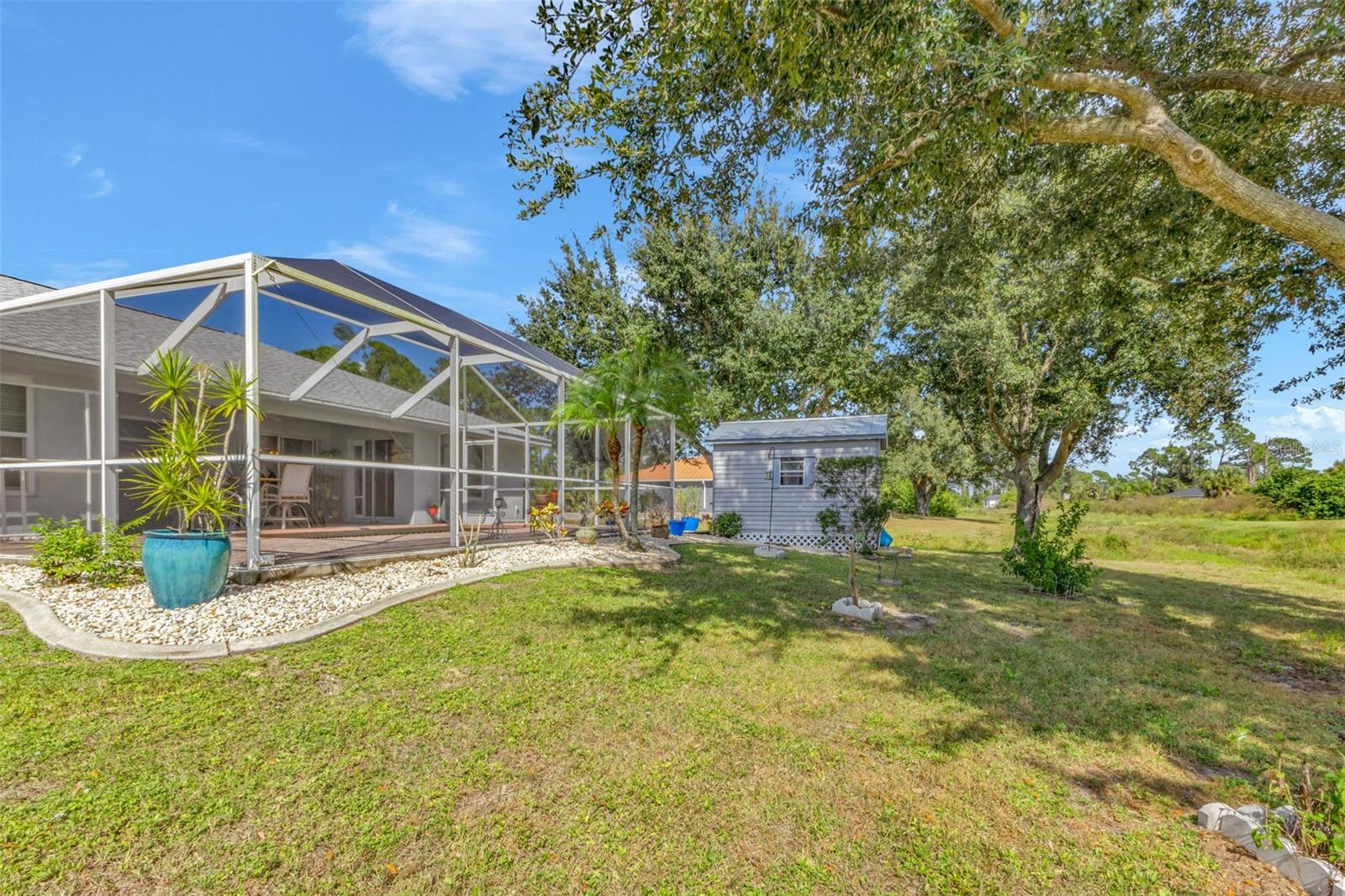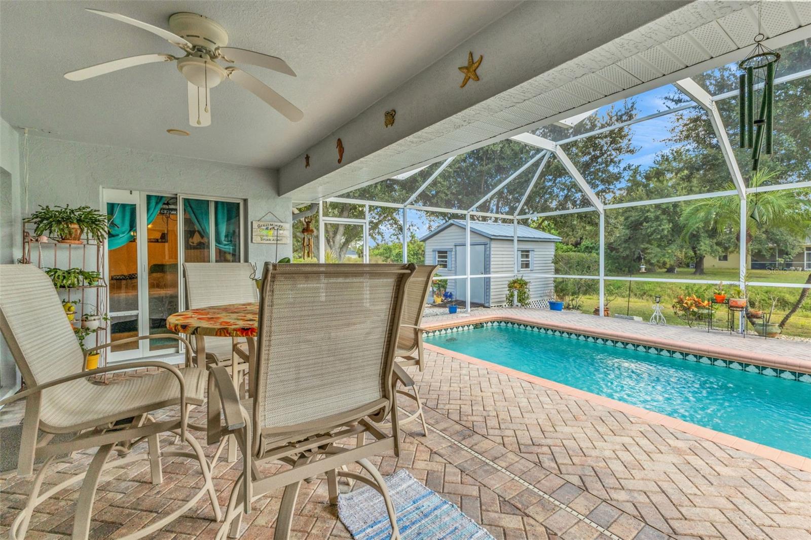 Welcome to your private Florida retreat! This 3 Bedroom, 2 Bathroom, 2 Car Garage, Pool Home offers comfort, peace of mind, and modern upgrades throughout — including a NEW 2024 Roof, 2024 Impact Windows, and a whole-home reverse osmosis system with water softener. NO HOA FEES & NO FLOOD REQUIRED! CLICK ON THE VIRTUAL TOUR LINK 1 FOR THE VIDEO AND VIRTUAL LINK 2 FOR THE 3D TOUR. Step inside to a bright living and dining room, perfect for easy entertaining, with a glass slider leading to the lanai. The kitchen features stainless steel appliances including a gas range, Quartz countertops, a tiled backsplash, and ample cabinetry for storage. The primary suite offers direct lanai access, dual walk-in closets, and an en-suite bathroom with a dual sink vanity and walk-in shower. The split bedroom floor plan ensures privacy for guests, with two comfortable guest rooms and a full guest bath. Step outside to your private oasis — a covered lanai that’s perfect for enjoying your morning coffee or unwinding with an evening beverage. Take a dip in the sparkling private pool or soak up the sun on the pool deck. The backyard is lushly landscaped, complete with shade trees and a storage shed, creating the perfect blend of beauty and functionality. There is a 120-gal buried propane tank that runs the range and the hot water heater. Conveniently located close to I-75 and US-41 for easy access to local shopping, and dining, as well as Cool Today Park welcoming the Atlanta Braves Spring Training, the North Port Aquatic Center, and the newly built downtown Wellen Park amenities. Schedule your showing TODAY!