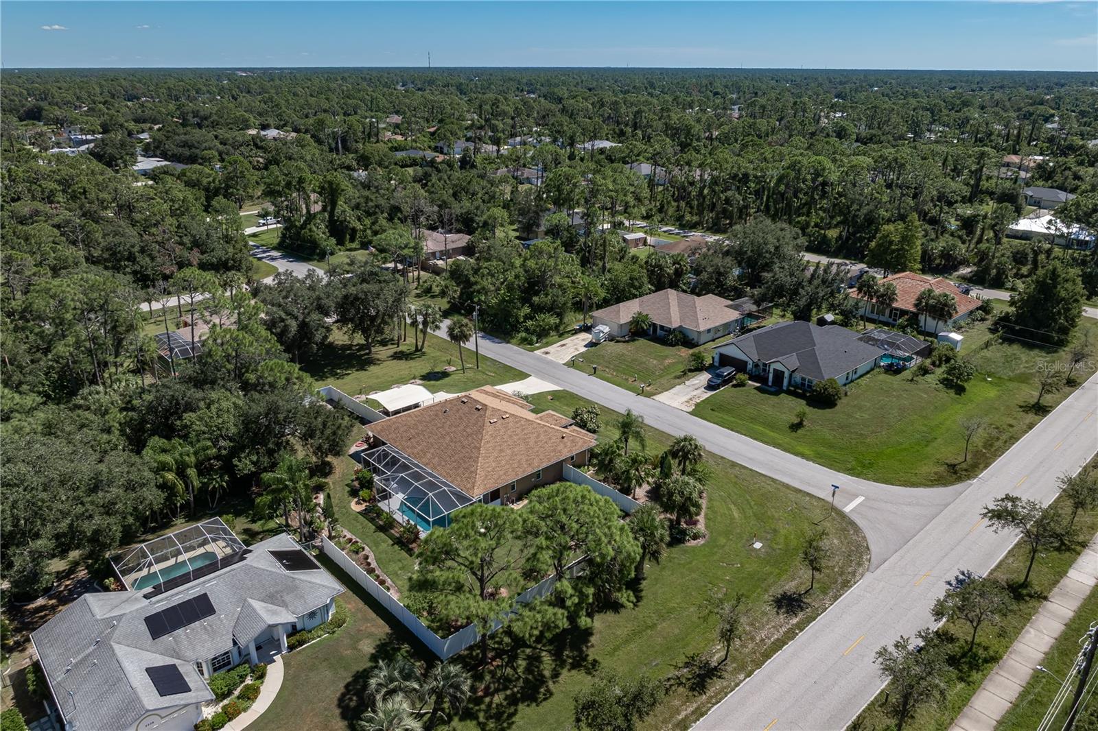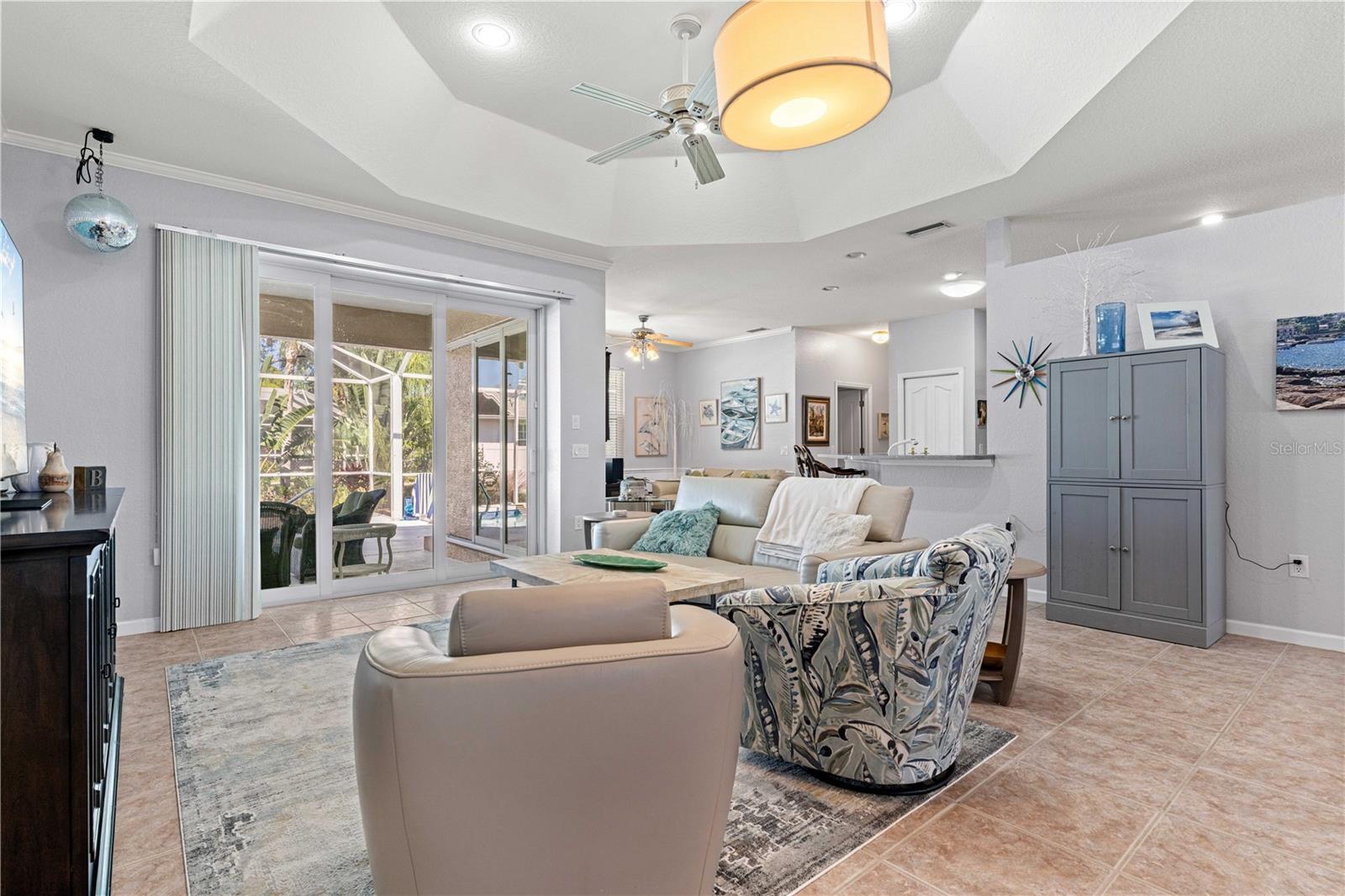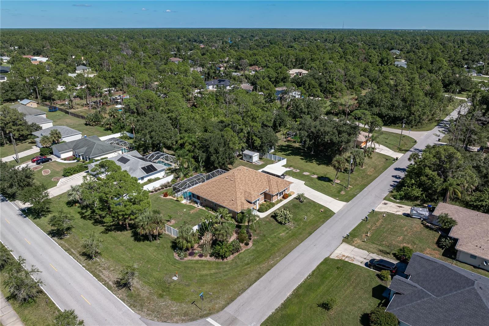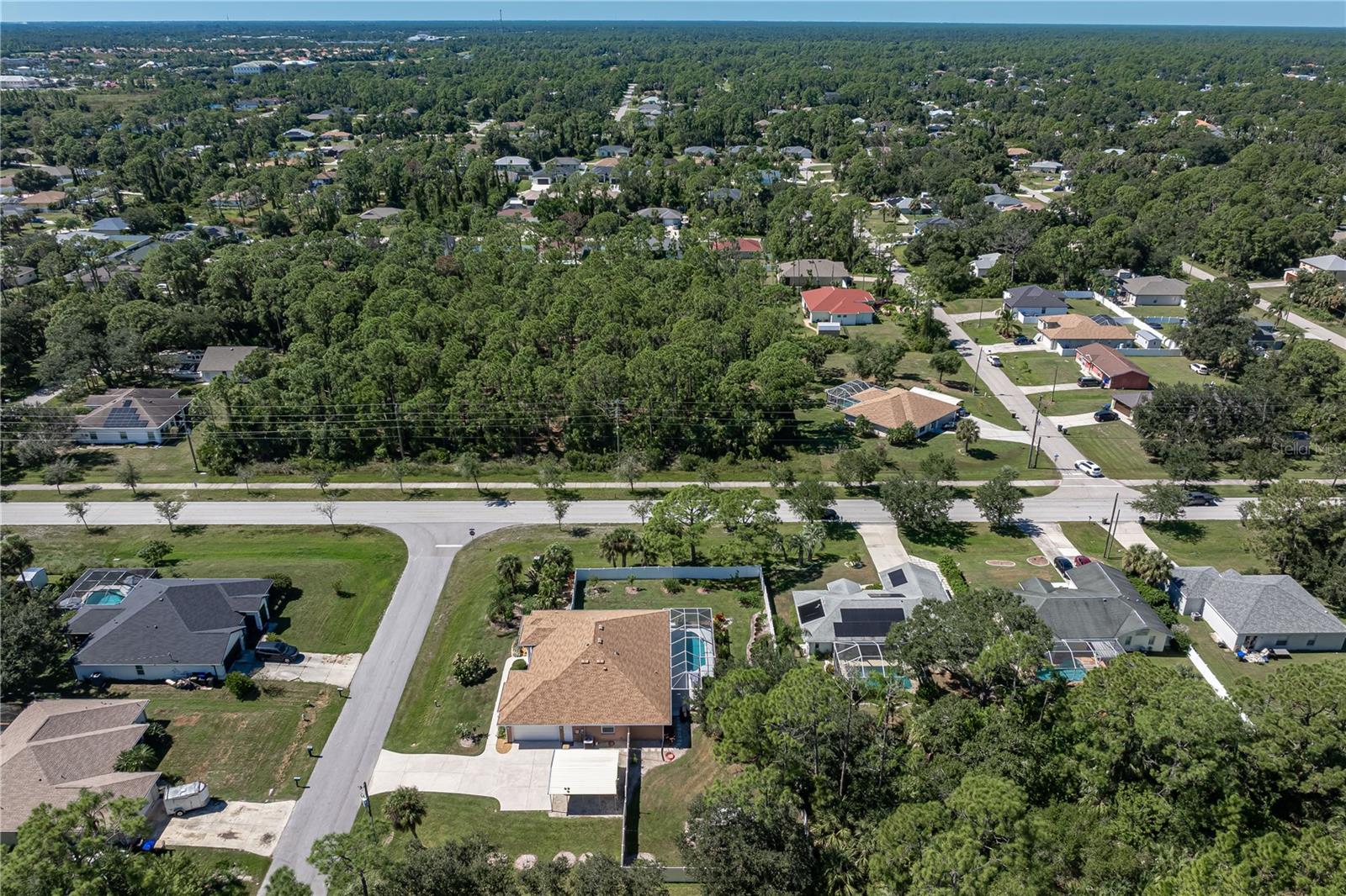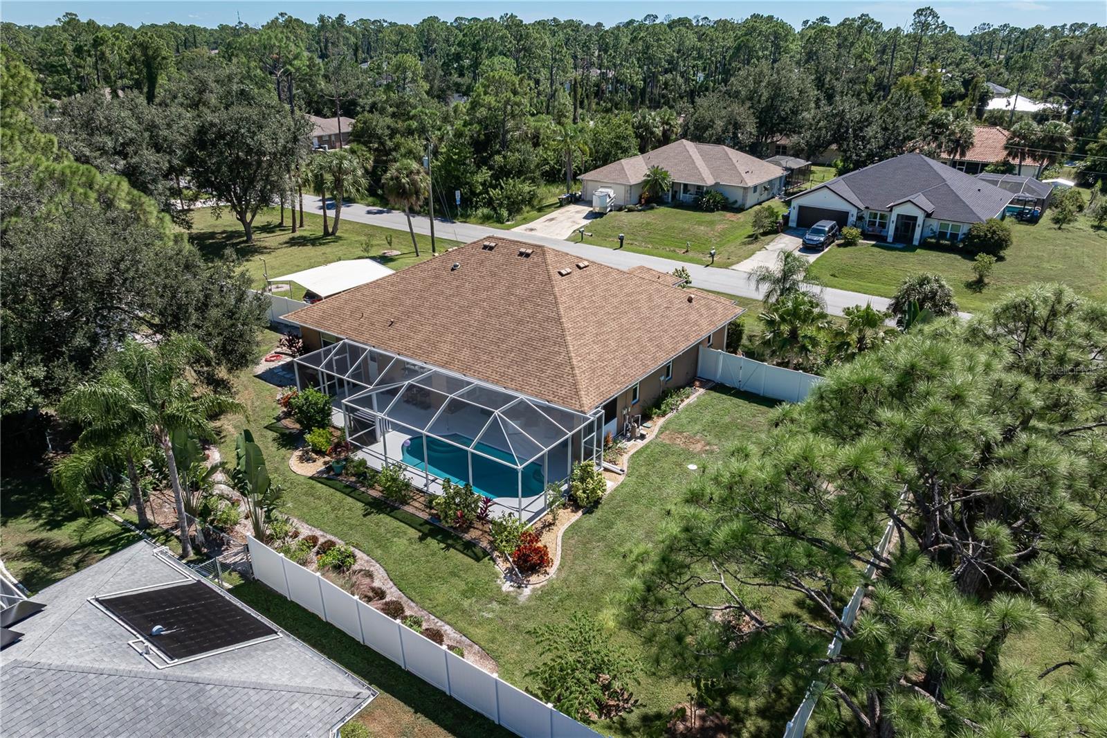 UPDATED NORTH PORT HOME WITH POOL ON DOUBLE LOT - Beautifully-maintained 3 bed/2 bath North Port home with a saltwater pool boasts over 2,200 square feet of living space and sits on a spacious double lot with a fully fenced yard, lush tropical landscaping, and mature fruit trees. Located in a quiet neighborhood on a corner lot, the home blends privacy, comfort, and modern updates while being just minutes from shopping, dining, and everyday conveniences. Inside, the open-concept layout features high ceilings, crown molding, elegant columns, and tile flooring throughout. Disappearing sliding glass doors create a seamless flow between indoor and outdoor living spaces. A sitting room off the main living area offers flexible use as a breakfast nook, home office, or cozy den, while the spacious formal dining room is ideal for gatherings. The kitchen is designed with both function and style in mind, featuring solid surface countertops, stainless steel appliances, and a breakfast bar that opens to the great room. The dedicated RO (reverse osmosis) system for the refrigerator has a discrete drain line. The master suite is a true owner's retreat with a spa-like en-suite bath that includes a freestanding soaking tub, a large frameless glass shower, split vanities with quartz counters, and upscale finishes throughout. The split-bedroom design provides added privacy for owners and guests alike. One guest room has a wall of built-in bookshelves - creating an ideal home office or flex space. The guest bedrooms share a guest bath that doubles as a pool bath with access to the lanai. Outside, the screened lanai offers a covered seating area and a large pool deck surrounding the in-ground, saltwater pool. Lush, tropical landscaping surrounds the pool cage creating the feel of a private oasis in your backyard. Garden/flower beds have in-ground irrigation system. New 10x16 shed w/ramp in the backyard is perfect for housing your gardening equipment or any other tools or toys. The oversized 2-car garage includes additional space for storage, and the extended driveway with a bonus carport offers ample parking options. With a new shingle roof in 2023, an HVAC system updated in 2025, impact windows throughout, and tile floors in every room, this home is truly move-in ready. It offers a rare combination of space, upgrades, and privacy on a quiet street in North Port—with no HOA and all the benefits of Florida living at your fingertips. Make an appointment today.