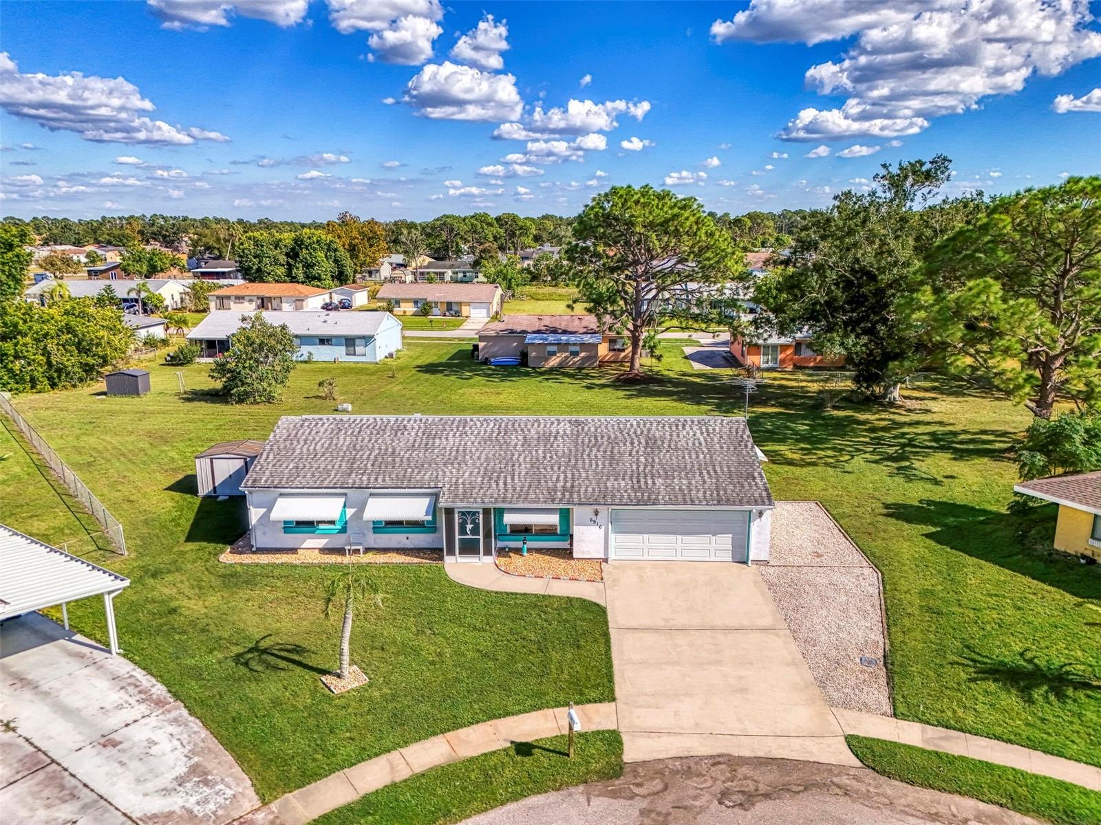 Beautifully updated home on a quiet cul-de-sac in North Port, FL! Located in the desirable Jockey Club community, this 3-bedroom, 2-bath, 2-car garage home offers a wonderful mix of charm, comfort, and practical upgrades. Enjoy low HOA fees with access to a clubhouse, pool, tennis court, and more—all in a peaceful setting that feels tucked away yet close to everything North Port has to offer. Sitting on a pie-shaped oversized lot, this home provides extra space and privacy. There’s even an additional side parking area—perfect for an RV, boat, or other toys—and a large shed for extra storage. The yard has been completely cleared and ready for your personal touch, offering room for gardening, entertaining, or simply relaxing in your own outdoor retreat. Step inside to find coastal-inspired paint colors that create a bright, cheerful atmosphere throughout. The open living and dining area flows effortlessly into the kitchen, which features solid stone countertops with bits of sea glass, soft-close wood cabinetry, recessed lighting, and appliances only four years old. The bonus room adds flexibility for a hobby space, den, or office—whatever suits your lifestyle. Both bathrooms are tastefully designed, with the primary bath offering a walk-in shower and the guest bath featuring a tub/shower combo. The indoor laundry area is conveniently tucked away in a storage closet for a clean, uncluttered look. Flooring throughout is laminate for easy maintenance, with tile in both bathrooms. Step into the screened lanai with vinyl windows, making it a year-round space to enjoy the Florida sunshine. There’s also a screened front porch that allows a pleasant cross-breeze during cooler months. This home has been meticulously maintained with big-ticket updates already done for you: Roof (2018), New AC (2024) with all new ductwork and a 12-year parts and labor warranty, Replaced electric panel (2020) with updated outlets and plugs, New hurricane-rated garage door, Metal clamshells over windows that double as awnings and hurricane protection, City water and sewer with an under-sink reverse osmosis system, Partially furnished for added convenience. The garage offers extensive built-in cabinetry along all walls while still leaving room to park your car. This North Port gem combines comfort, quality, and peace of mind in one incredible package. With thoughtful upgrades, a spacious layout, and access to community amenities, this home truly stands out. Schedule your private showing today and see all that this beautiful property has to offer!