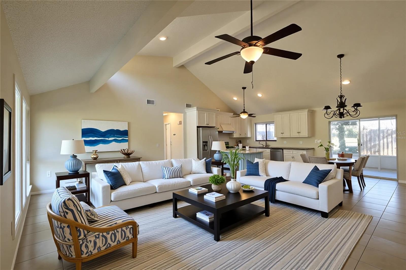 One or more photo(s) has been virtually staged. Lots of room in this spacious light & bright 4- possibly 5-bedroom home or 3 bedrooms with a large family room and separate office on a beautiful large corner lot with mature landscaping, fenced side & back yard. Large 20 x 9 screened lanai, Open floor plan with soaring 15 ft ceilings. Three Dormer windows to bring in extra light. Lovely large kitchen with a nice island. New Roof 2025, AC 2023, Newer Hot water heater, Fresh Interior paint, new bathroom vanities. Shed with electric. Ideal location, walking distance to shopping, restaurants & medical. Close to schools, golf, fishing, I-75 for an easy commute. 5 miles to the world renowned Warm Mineral Springs, 9 miles to Cool Today Park, the Atlanta Braves Spring Training park and only 20 minutes to white sand beaches! Please see the Virtual Tour!