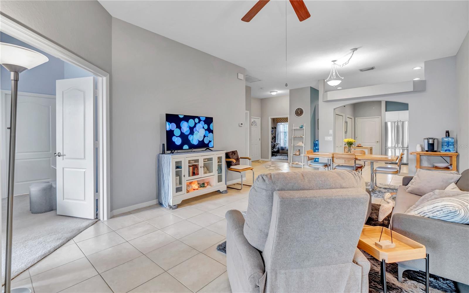 This meticulously well maintained UPDATED 3-bedroom, 2-bath, 2 car garage villa offers 1,466 sq. ft. of spacious living space. This Stunning Villa is located in the desirable Bobcat Villas Community within Bobcat Trails. As you pull up to the villa, notice the well maintained paver driveway/ walkway for added décor. Entering the home, easy to clean ceramic tile is throughout the home boasting the natural light all the while overlooking a stunning view of the lake and Oak Trees. The primary bedroom is spacious with a bay window, perfect area for reading, capturing the suns natural light. Large, nicely sized walk in closet for owners. The Primary bathroom has a walk-in shower with bench, dual sinks and sperate enclosed toilet for extra privacy. Each bedroom contains plush carpet with plenty of closet space and windows for natural light. The floor plan is open, airy and great for entertaining. Enjoy cooking from this open concept kitchen while using all NEWER appliances (2021). Off the living room, overlooking the lake is the tiled Sunroom which boasts the NEW Lanie Sliders-Hurricane UV Rated Doors (2024) & an Updated Lanai Roof (2019). This home also has a NEW Tile Roof (2024), NEW Attic insulation (2023), NEW Water Heater (2024) and a Newer A/C Unit (2021) for added peace of mind during the seasonal months. The entire home has NEW fresh interior paint 2024)(except 1 room, HOAs responsibility). New Garage Door Opener (2024). Enjoy the security and convenience of a 24-hour guard gate and the community amenities, including 1 pool within Bobcat Villas that is in walking distance and access to an additional larger community pool and a fitness center within Bobcat Trails Master Association.
