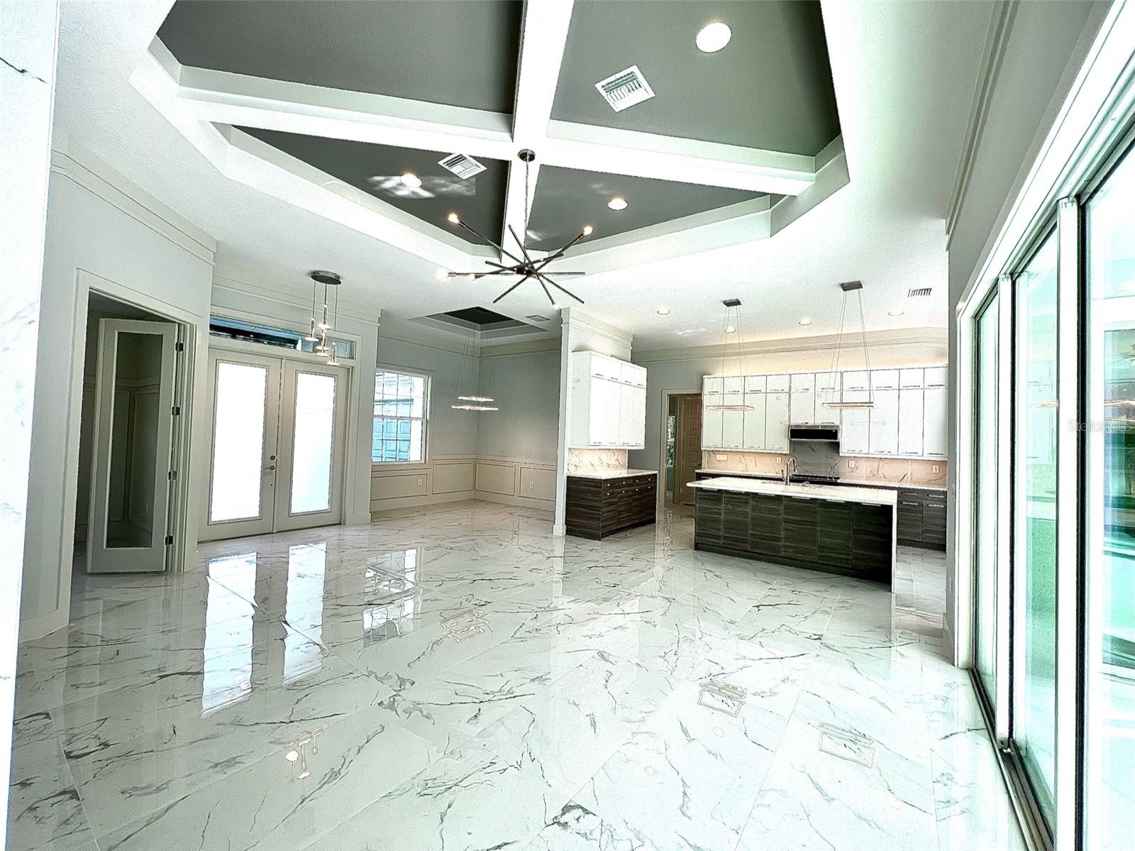 Zwiercan Homes Model 2046. 3/2/3 located in a rapidly growing city of North Port. Featuring backsplash in the kitchen, granite countertops and Pergo high end laminate floors throughout, oversized Island with front cabinets, built in features, coffered ceilings, Waynes Coating, crown molding, 11'4 Ceilings, 8' doors and much more. Close to schools, shopping and I75. Perfect starter home, retirement home or home for anyone best describes this open floor plan. Wood soft close cabinets with granite counter tops in kitchen accompanied by stainless steel appliances and dishwasher. Upgraded finishes like recessed lights and ceiling fans make this a very desired model. Master bathroom was customized to have a large walk-in shower, with a rain shower, and a free standing bathtub. Standard 1 year Warranty and 10 years Builders Bonded Warranty. Pictures are from a similar model and finishes may vary. All measurements should be verified by Buyers agent. $10k Flex Cash Available for closing assistance or rate buy down.