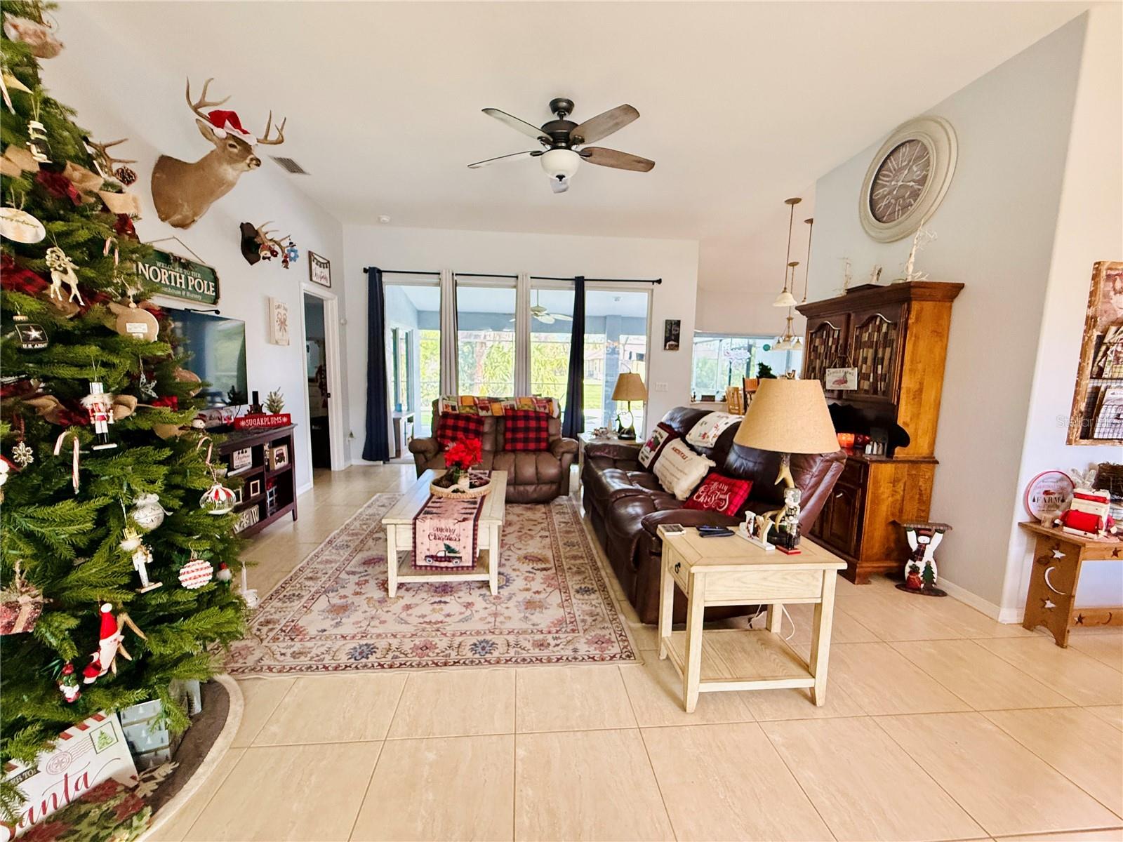 Enjoy waterfront living in this three-bedroom, two-bath, two-car garage pool home, located on the Blue Ridge freshwater canal in North Port. This split floor plan features ceramic tile throughout and includes a den with French doors that can be used as a fourth bedroom, home office, or flex space. The kitchen features granite countertops and opens to a bright breakfast nook with a large picture window overlooking the heated saltwater pool. There is also a formal dining area. Step outside to the pool area, ideal for entertaining or simply unwinding while taking in peaceful canal views. The private dock makes it easy to fish from your backyard or enjoy quiet moments by the water. Conveniently located just minutes from dining, shopping, and easy access to the interstate. New HVAC installed September 2025.