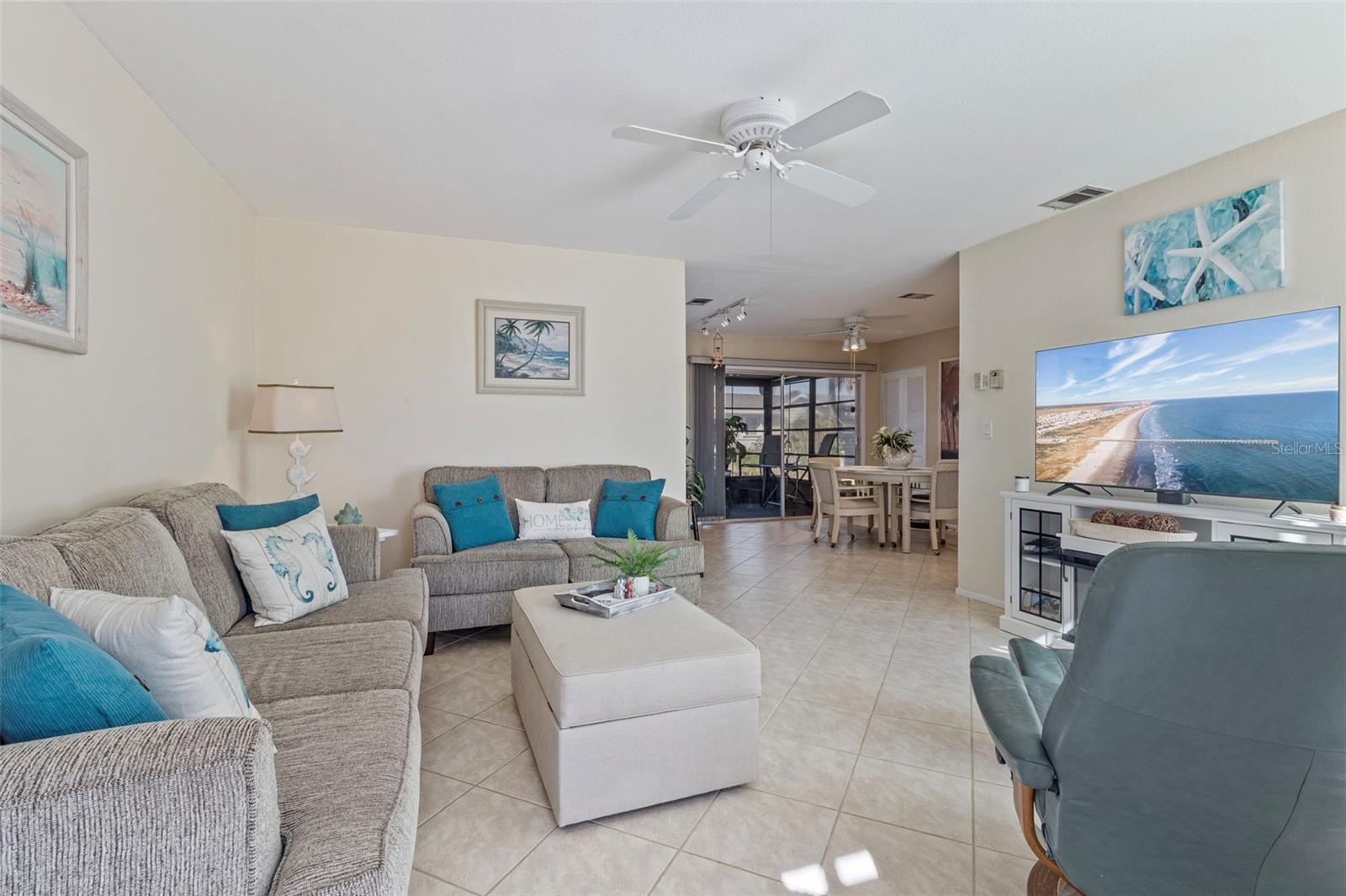 Charming 2 Bedroom Villa in a Desirable 55 Plus Community This beautifully maintained villa offers comfort, style, and exceptional value. With two bedrooms, two baths, and an inviting open layout, the home flows effortlessly from the main living areas to a spacious enclosed lanai designed for relaxing or entertaining. Recent improvements include hurricane rated windows, updated electrical and plumbing, a hurricane shutter on the lanai slider, reverse osmosis water filtration, a new garage door and opener, and modern fixtures throughout. The home also features new luxury vinyl plank flooring in both bedrooms and elegant 18-inch diagonal tile in the main living areas. Outside, the property is beautifully landscaped and enhanced with new exterior lighting that adds charm and nighttime appeal. The HOA has scheduled exterior painting for 2026, offering added value and a fresh updated look for the neighborhood. Located in a friendly fifty five plus community just minutes from Warm Mineral Springs and a short drive to the Gulf beaches, this villa is surrounded by shopping, dining, and medical facilities. The low HOA fee covers lawn care, pest control, and maintenance of roads, shuffleboard courts, and picnic areas. Pets are welcome. With its extensive updates, appealing features, and affordable price, this home stands out as one of the best values in the area. Ideal as a year round residence or a peaceful seasonal retreat.