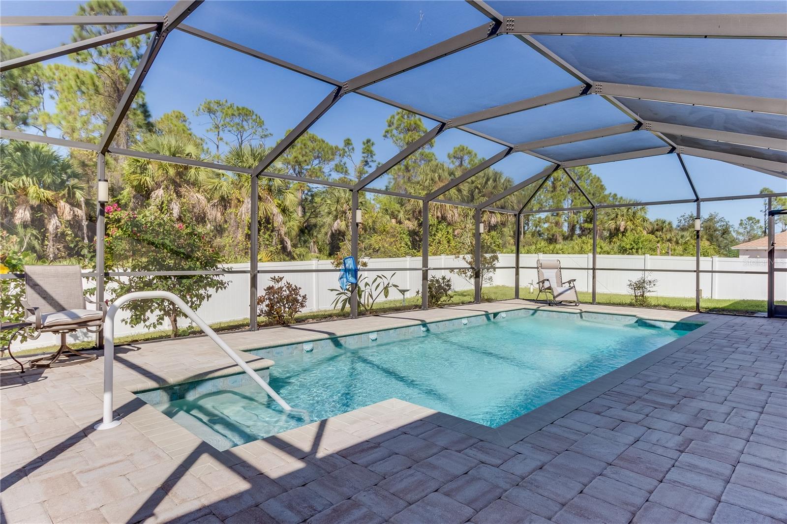 ***PLEASE TAKE A WALK THROUGH YOUR NEW HOME WITH THE 3D INTERACTIVE VIRTUAL TOUR*** LOCATION! LOCATION! LOCATION! Welcome to this beautiful, meticulously maintained POOL home featuring 3 Bedrooms, 2 bathrooms, 2-car garage & FULLY FENCED IN YARD perched on a high and dry, oversized CORNER LOT! Now let’s talk about security and peace of mind, this home features a PAID OFF Adt security system with cameras, entire house surge protector, hurricane shutters and is pre-wired for a generator! As you arrive, the lush tropical landscaping and brand-new St. Augustine grass (with irrigation system) immediately impress. The curb appeal shines with solar lighting, fresh mulch, a decorative white picket fence, flagpole, and charming exterior lights. A variety of blooming plants, lantern-style accents, and a screened front entry with tile medallion set the tone for what’s inside. Step through the front door into the bright, open Great Room with soaring vaulted ceilings and a split bedroom floor plan that offers both comfort and privacy. Crown molding, plant shelves, neutral tones, and waterproof Pergo laminate floors blend functionality with style. At the heart of the home, the chef’s kitchen features granite countertops, ornate tile backsplash, soft-close cabinetry, recessed lighting with Solatube natural lighting, and a center island with extra storage and seating. The stainless-steel appliances are all included—including a brand-new dishwasher, still in the wrapper! Enjoy casual meals in the charming breakfast nook with wainscoting and chair rail detail. A laundry room with shelving, utility sink, and washer/dryer included adds everyday convenience. The owner’s suite is a true retreat with double door entry, walk-in closet, private lanai access, and space for a king-size bed. The en-suite bathroom offers dual sinks, a Roman walk-in shower, linen closet, and a water-saving dual-flush toilet. Across the home, two guest bedrooms—one with a walk-in closet—share a beautifully maintained bath. Step outside through French doors to your private outdoor oasis. Enjoy morning coffee, evening dinners, or summer swims in your sparkling, heated saltwater pool. The vinyl-fenced yard provides privacy and room for kids or pets to play safely. This home truly has it all—style, comfort, and security—plus an unbeatable location near Coco Plum Shopping Center, schools, churches, golf, and an easy drive to Boca Grande, Englewood Beach, Charlotte Harbor, and the Gulf of Mexico. Sports lovers will enjoy being close to Charlotte Sports Park (Tampa Bay Rays Spring Training) and the brand-new Wellen Park area, home to Atlanta Braves Spring Training, dining, shopping, and a weekend farmers market. With quick access to US-41 and I-75, everything Southwest Florida offers is within reach. Add this home to your “must-see” list and start packing—your Florida dream lifestyle awaits!