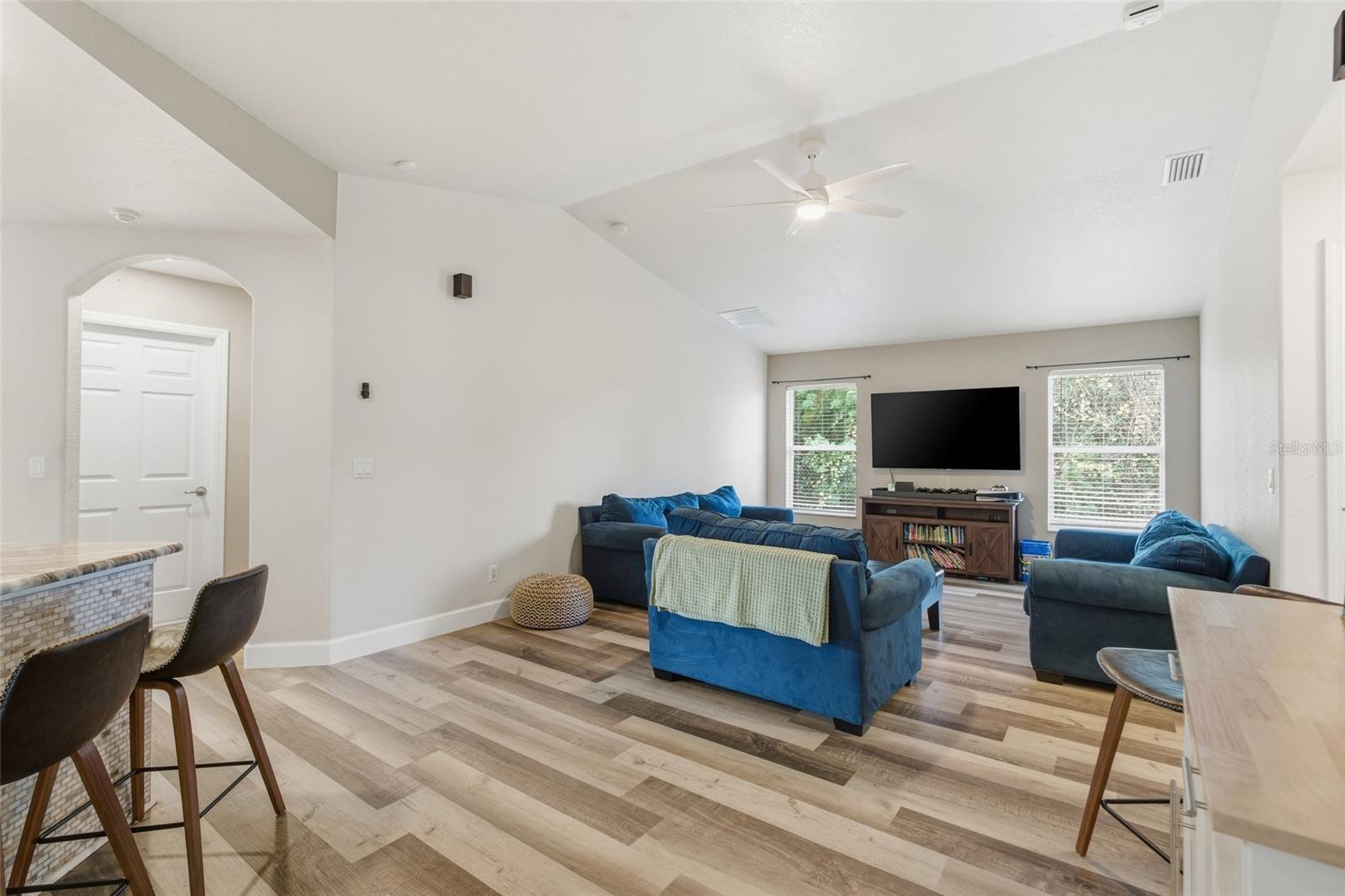 Short Sale. Short sale. Listed under appraised value. Don’t miss out on this truly move-in-ready home! A welcoming covered, screened front porch sets the tone as you step into a bright living room accented by a beautiful tray ceiling. The dining room features French doors that open to the spacious covered and screened back lanai, perfect for indoor–outdoor living. The kitchen is designed for both style and function, offering granite countertops, a mosaic tile backsplash, an island, and a cozy breakfast nook with access to the lanai. Its open layout lets you chat with guests at the counter, keep an eye on the family in the generous family room, or serve meals with ease in the dining room. A large pantry adds excellent storage. The master suite includes private lanai access, two closets, and a well-appointed bathroom with dual vanities and a walk-in shower. Two additional bedrooms each feature walk-in closets and share a conveniently located guest bathroom. The indoor laundry room comes equipped with a new 2025 washer and dryer. The garage offers flexible use with its mini-split AC unit, carpet, and insulated door—ideal as extra living space, a workshop, or a comfortable hobby area. Step outside to a fully fenced backyard complete with a mulched playground area, a storage shed, and well equipment featuring an R/O water treatment system. Major updates include a 2022 roof, 2020 AC, and 2024 hot water heater, giving you peace of mind for years to come.