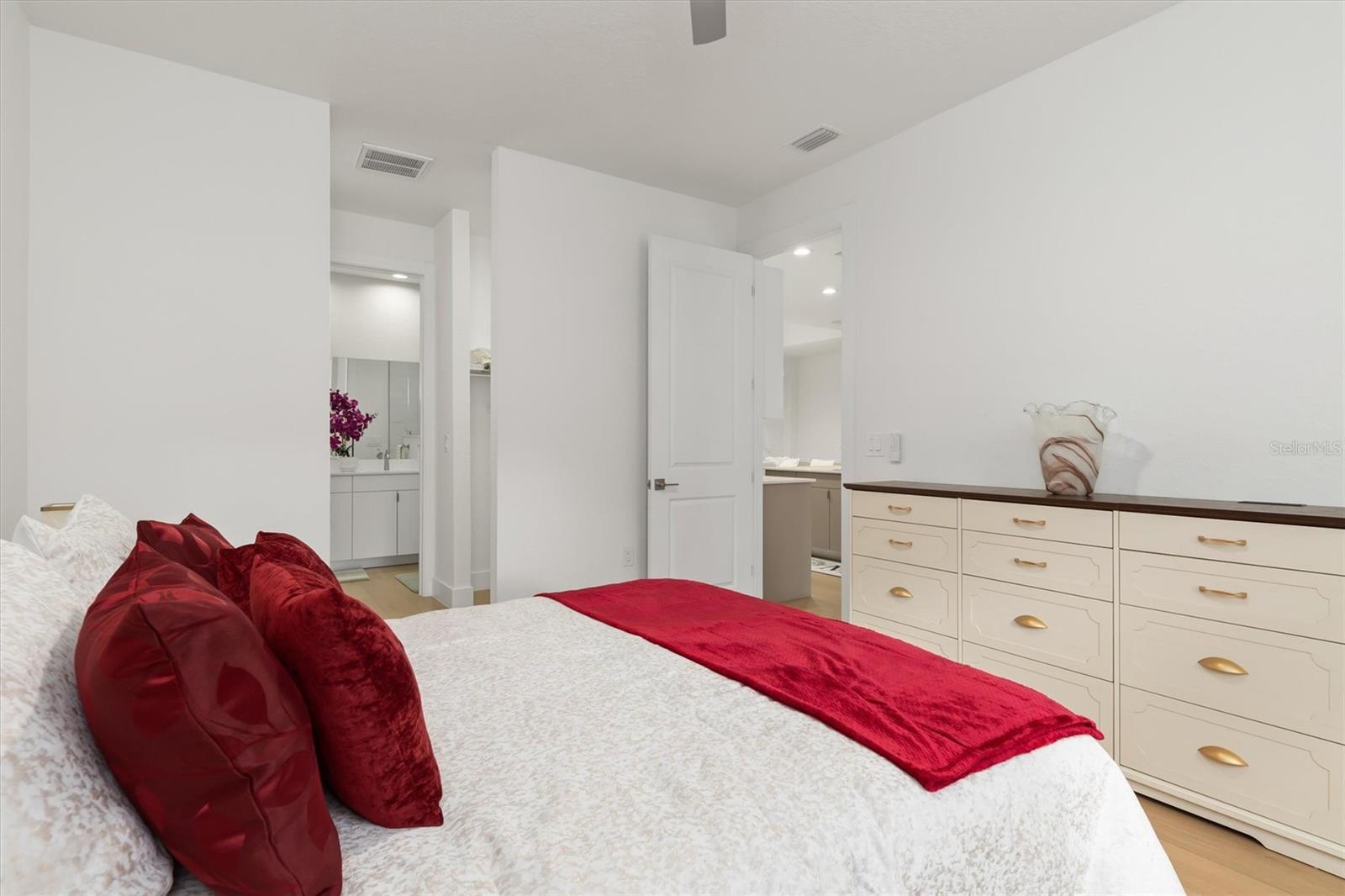 Experience refined SouthWest Florida living in this stunning fully furnished 3-bedroom, 2-bath residence. This newer construction home was built in 2023 and ideally positioned in a highly central location. Shopping and everyday conveniences are just minutes away, while Warm Mineral Springs, Wellen Park, Port Charlotte Town Center and the Beach are within 5-18 miles from the home. The modern layout features high ceilings throughout the home, impact windows, a contemporary kitchen with quartz countertops, a sleek glass backsplash and a premium refrigerator that produces oversized round ice cubes—perfect for craft cocktails and entertaining in style. Vacant lots on both sides of the property provide natural foliage and added privacy, enhancing the peaceful atmosphere. This turnkey home is equally suited as a refined primary residence, a polished second home, or a highly desirable income-producing investment.