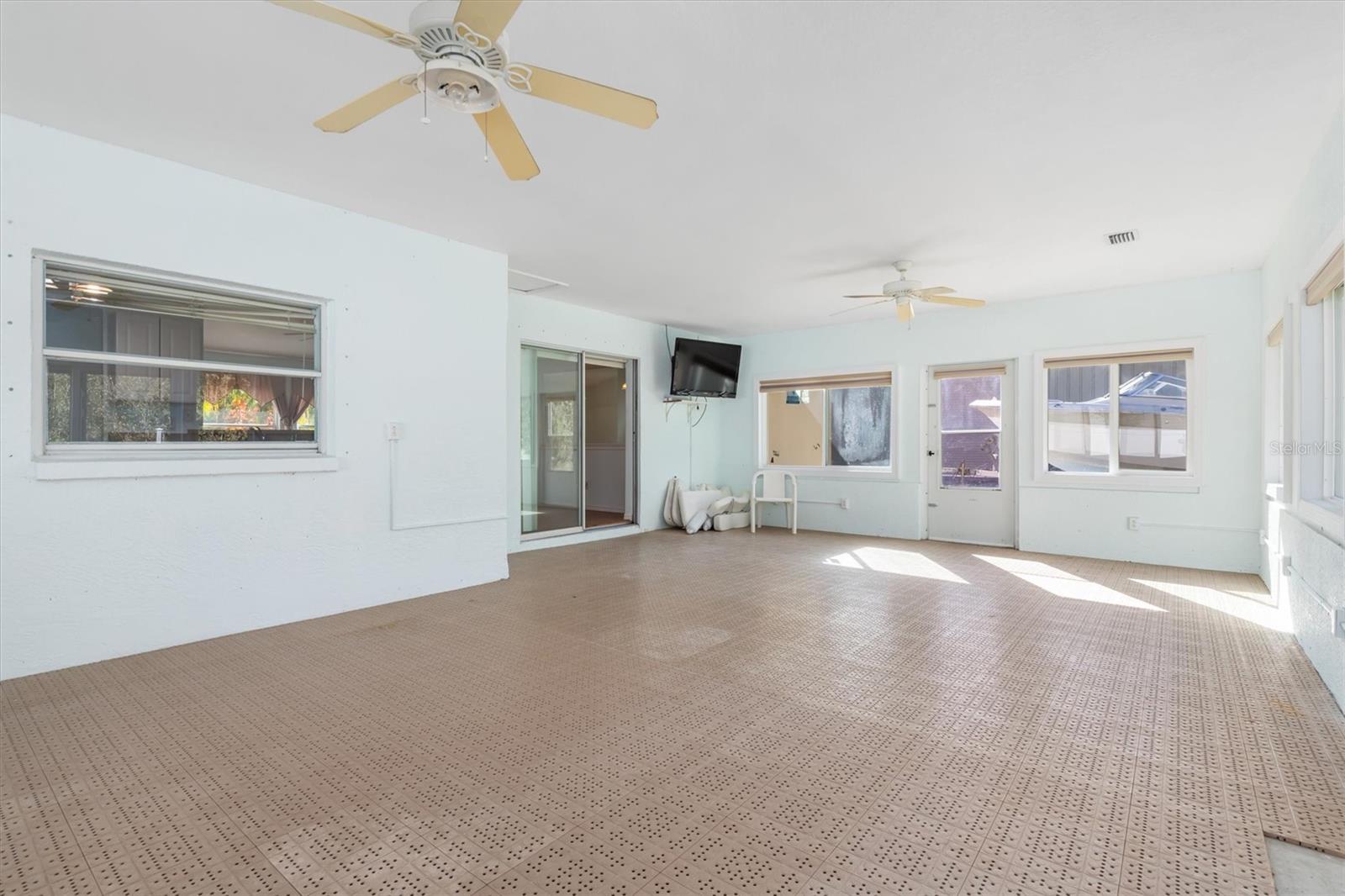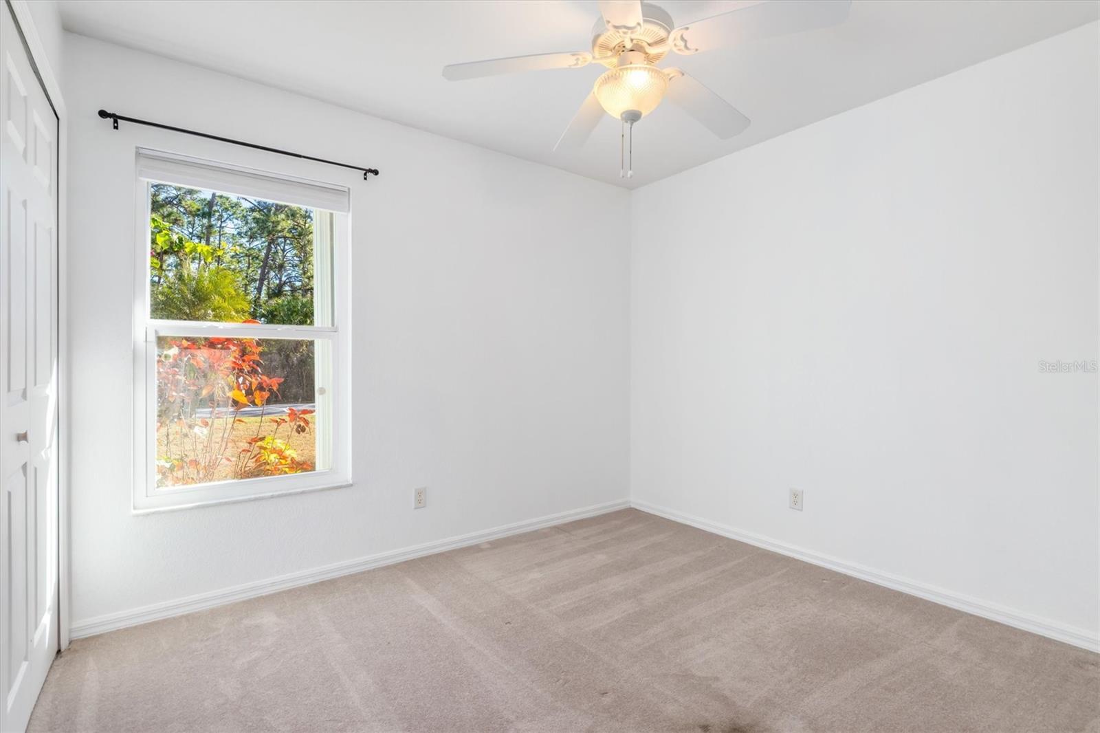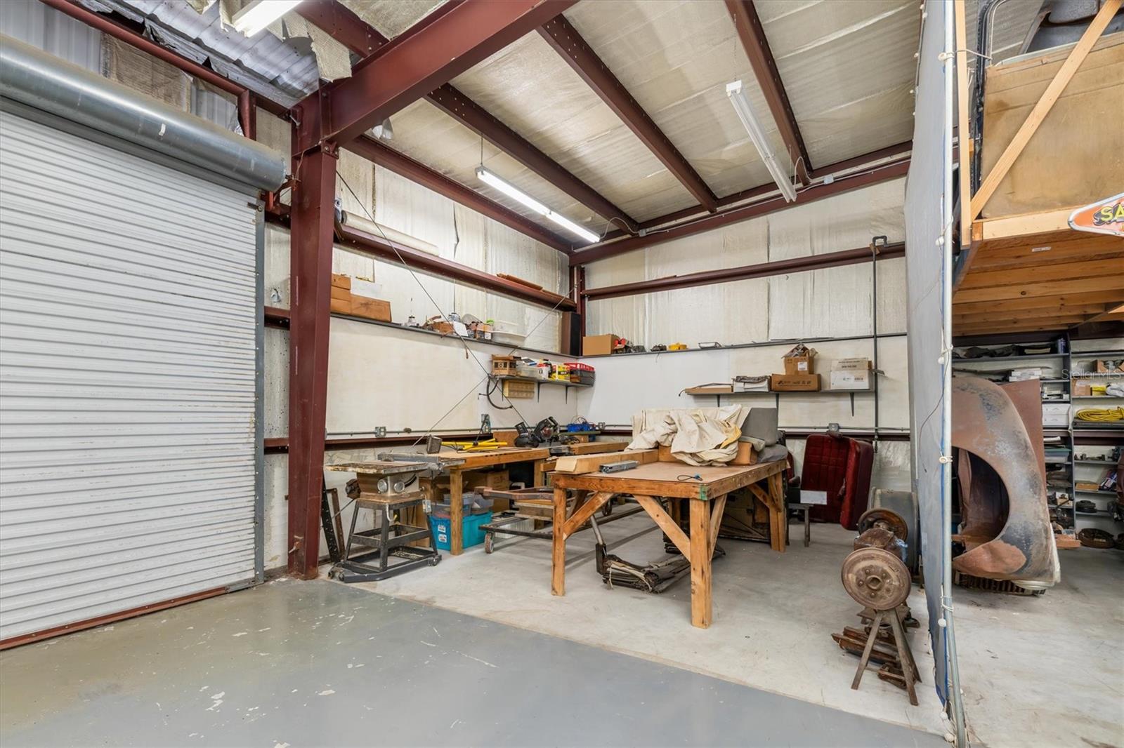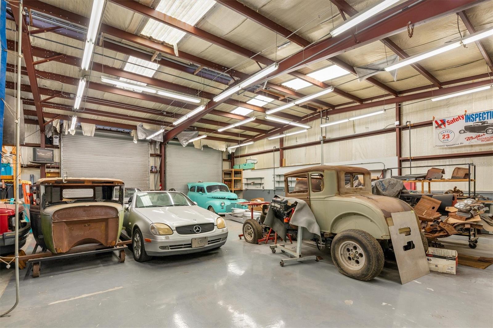 ATTENTION ALL CAR ENTHUSIASTS! This rare property delivers space, style, and serious storage on two generous lots. The showstopper is a massive 50x60 metal pre-fab building designed to hold 6–8 vehicles with ease, plus room for a boat, RV, workshop, or all three. Solid construction and wide concrete driveways make parking, storing, and working simple and stress-free. This is a hard-to-find setup that adds huge value and flexibility. The main home is a well-cared-for 3-bedroom, 2-bath split plan with a 2-car garage and beautiful curb appeal. Mature palms, manicured shrubs, and colorful accent rock frame the home and create a polished look. A new roof in 2023 and a new A/C system provide peace of mind and energy efficiency. Inside, the layout is bright and open. The living room features cathedral ceilings, laminate wood flooring, and two large windows that fill the space with natural light. The kitchen connects seamlessly to the living and dining areas and includes white raised cabinetry, a pantry closet, stainless double sink, and a breakfast bar ideal for casual meals or entertaining. Just off the dining area is a standout bonus: a 493-square-foot air-conditioned room with rubber mat flooring. This flexible space works beautifully for fitness, yoga, hobbies, creative projects, or a game room. Sliding doors lead from the back family room to a concrete patio, perfect for grilling or relaxing outdoors. The backyard is quiet and peaceful, backed by a wooded view that adds privacy and charm. The primary bedroom includes crown molding, a ceiling fan, and a spacious walk-in closet. The private bath offers a walk-in tiled shower, large vanity with porcelain sink, and extra storage. Two additional bedrooms feature newer carpet and ceiling fans, with a nearby guest bath offering a tub/shower combo. Ceramic tile finishes the kitchen, baths, and entry for easy maintenance. Extra features include hurricane shutters, a water softener with aerator, and exceptional parking options. The home has a double concrete driveway, while the storage building boasts a triple-wide driveway plus additional concrete parking areas. Located minutes from shopping, schools, I-75, Wellen Park, the Atlanta Braves Stadium, Town Center Mall, and the new SMH hospital, this property combines convenience with unmatched space. Opportunities like this do not come around often—schedule a private showing today.