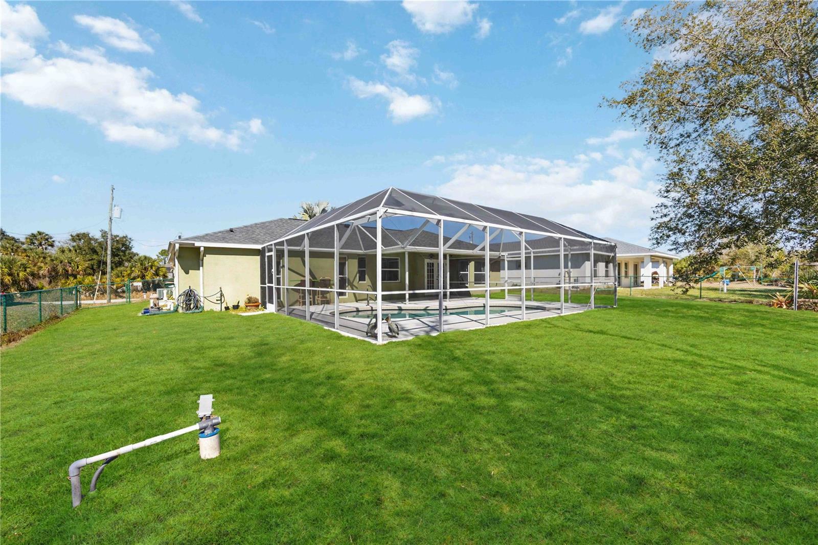 Welcome to this SPACIOUS 3-BEDROOM, 2-BATH, 2-CAR GARAGE CANAL-FRONT POOL HOME located in a NO FLOOD ZONE (X) in a quiet, sought after neighborhood with access to highly sought-after local schools. This beautifully maintained home is being sold furnished and features a NEWER ROOF (2023), HOT WATER HEATER (2024), POOL PUMP (2024), WELL PUMP (2024), and WATER SOFTENER (2024), along with VAULTED CEILINGS, a FULLY FENCED BACKYARD, and a CANAL-FRONT LOT, all within 1,623 sq. ft. of bright, open living space. Inside, you’ll find laminate and tile flooring throughout and a spacious open layout. The kitchen offers granite countertops, stainless steel appliances, abundant cabinetry, and a breakfast bar overlooking kitchen and pool area—perfect for entertaining. The generous primary suite features pool and lanai views, a walk-in closet, and a private ensuite with dual sinks, a soaking tub, and a walk-in shower. A split-bedroom floor plan provides privacy, with two additional bedrooms and a full guest bath. Step outside to your covered lanai with screened pool, overlooking the fenced backyard with mature trees and peaceful canal views—a perfect space to relax or host guests. Conveniently located near I-75, the Murdock shopping and restaurant district, hospitals, and everyday conveniences, this home truly offers comfort, privacy, and lifestyle. We would love for you to tour this beautiful home—no obligation, just come see if it feels like the right fit!