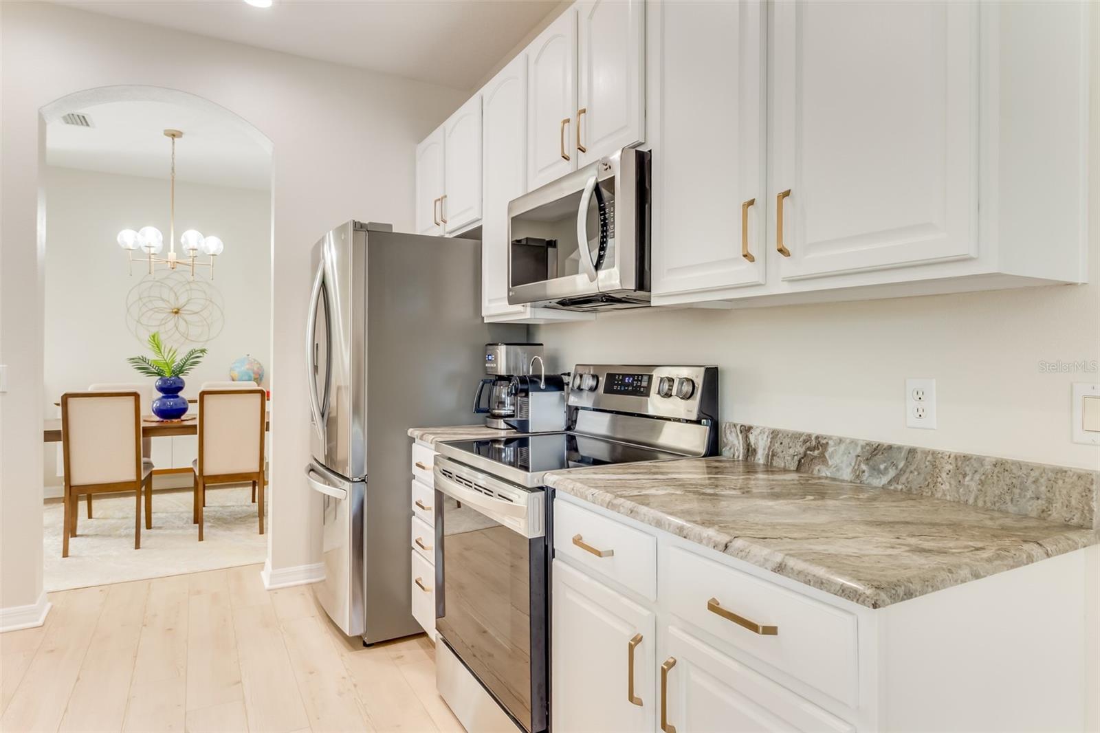 ** PLEASE TAKE A WALK THROUGH YOUR NEW HOME WITH THE 3D INTERACTIVE VIRTUAL TOUR. ** Impeccably updated and thoughtfully curated, this completely remodeled (2022) contemporary END-UNIT townhome offers 3 bedrooms, 2.5 baths, an attached 1-car garage, and a 2020 roof. Can be sold fully furnished, this home is truly move-in ready and lives like new. This property welcomes you with lush tropical landscaping, fresh mulch, palm trees, decorative accents, and irrigation to maintain vibrant curb appeal year-round. A retractable front screen and the subtle fragrance of blooming hibiscus set the tone as you enter your new home. Inside, a warm and inviting foyer leads to a well-designed floor plan. The main level showcases newer luxury vinyl plank flooring, creating a seamless and sophisticated flow throughout the living spaces. The kitchen is both functional and stylish, featuring professionally painted cabinetry, updated hardware and finishes, and newer stainless-steel appliances (2022). A well-positioned breakfast bar is perfect for casual dining or entertaining. The dining area is open and elegant, highlighted by a modern chandelier and architectural archways that add character and dimension. Upstairs, the split-bedroom layout offers privacy and comfort. The primary suite serves as a serene retreat with a generous walk-in closet and a beautifully updated en-suite bath, complete with a walk-in tiled shower, upgraded fixtures, and stunning Turkish tile finishes. Two additional guest bedrooms are well-appointed with ceiling fans, ample closet space, and natural light. Bedroom three features a charming built-in window bench—an ideal nook for reading or relaxing. The guest bathroom includes a tub/shower combination for convenience. All bedrooms feature stain-resistant carpeting. Extensive upgrades include fresh interior paint, custom window treatments, LED lighting, updated fixtures, counters, and flooring—demonstrating true pride of ownership throughout. Sliding glass doors open to a private screened lanai, offering a peaceful outdoor retreat. Enjoy morning coffee, al fresco dining, or simply unwind while taking in the tranquil backyard setting. The lanai also includes a convenient storage closet. Located in the highly desirable Lakeside Plantation, residents enjoy low-maintenance living with an HOA of just $175/month, with the CDD already included in the property tax bill—adding exceptional value. Community amenities include a heated Olympic-size pool, fitness center, clubhouse with fireplace, basketball, pickleball and tennis courts, playground, and gazebo—providing something for everyone. Ideally situated with easy access to I-75, commuting to Sarasota or Fort Myers is effortless. You’re also just minutes from shopping, dining, golf courses, parks, and the beautiful Gulf beaches of Venice and Manasota Key. This exceptional home offers the perfect blend of style, comfort, and convenience. Schedule your private showing today.