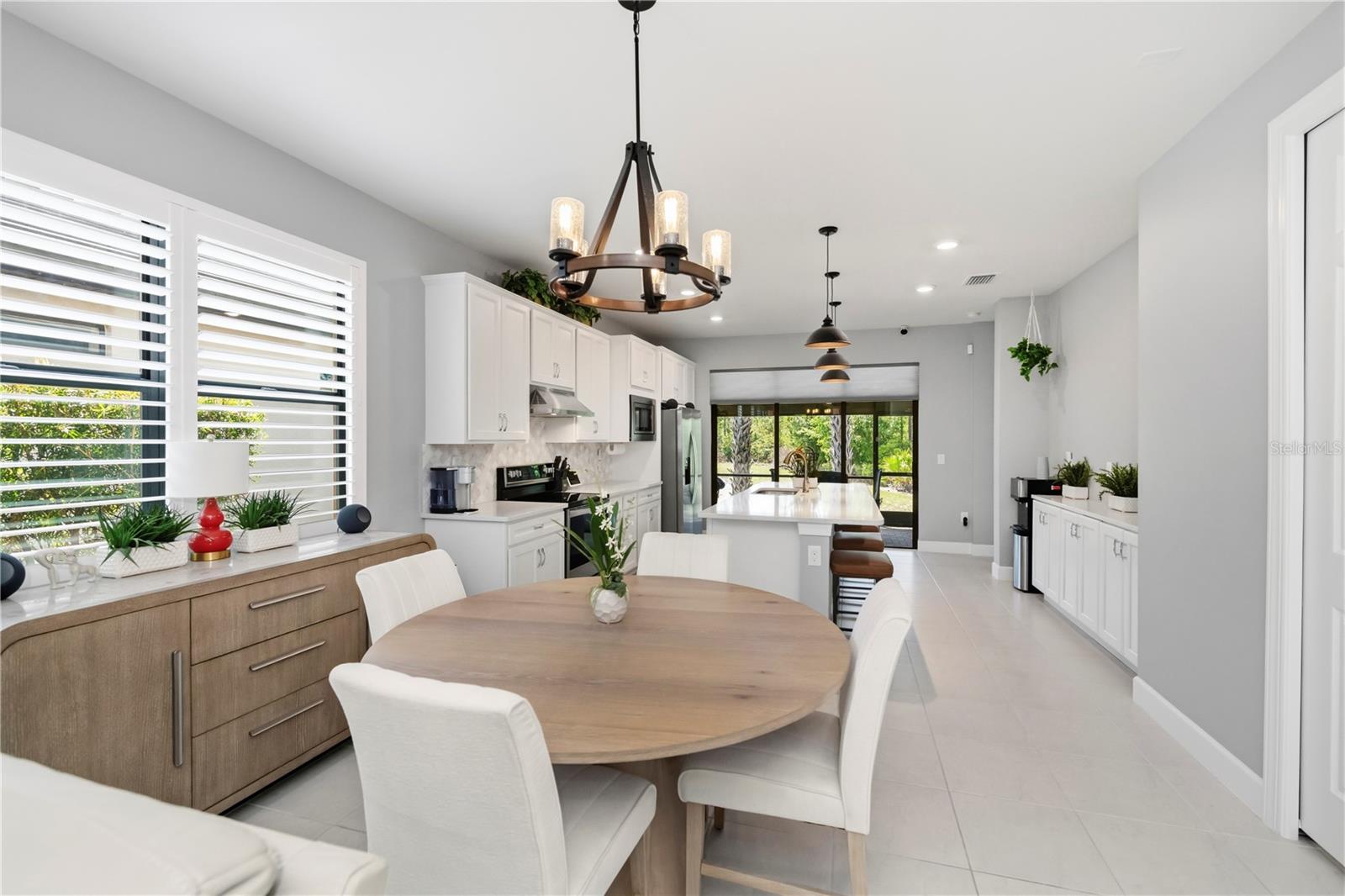 Welcome to maintenance-free living at its finest in the exclusive gated community of Cypress Falls at Del Webb—North Port’s premier 55+ resort-style community! This impeccably maintained 3-bedroom, 2-bath Crestview model home, built in 2020, boasts over $50,000 in upgrades and offers serene privacy overlooking a vast parklike greenbelt and tranquil canal. Step inside through stunning stained glass double doors to discover soaring ceilings, elegant plantation shutters, 8-foot doors, automated blinds, and exquisite flooring throughout an open floor plan perfectly designed for effortless entertaining. The gourmet kitchen is a chef’s dream, featuring 42” shaker-style cabinetry, quartz countertops, a stylish tile backsplash, stainless steel appliances, designer hardware, and a convenient breakfast bar island that flows into a naturally bright and spacious living area. Retreat to the luxurious primary suite with a large walk-in closet and spa-inspired bathroom showcasing dual sinks, quartz countertops, and an extended walk-in shower. The thoughtfully designed split floor plan ensures privacy and comfort with a generously sized second bedroom and a well-appointed middle bathroom. A versatile third bedroom currently serves as a den/office—ideal for working from home, hobbies, or extra guest space. Step outside to your private screened lanai and enjoy breathtaking sunsets and peaceful views of native wildlife including tropical birds, deer, fish and more in the lush extended backyard oasis. Additional highlights include a paver patio with 50 amp service ready for an outdoor kitchen, manual sun shades on the lanai, a portable generator, concrete curbing, a spacious laundry room with extra storage and utility sink, and a 2-car garage with epoxy flooring, overhead garage screens, and motion sensor flood lights. For your peace of mind and convenience, this home is equipped with hurricane shutters, a comprehensive 4K camera security system, water filtration and softener, an in-wall pest control system for hassle-free treatments, and generator wiring with 50 amp service outside. Living at Cypress Falls means full access to unparalleled resort-style amenities: a vibrant clubhouse, fully equipped fitness center, two heated pools, library, tennis and pickleball courts, plus a bustling social calendar managed by dedicated full-time staff. Perfectly positioned with easy access to I-75 and just minutes from shopping, dining, historic Venice, and pristine Gulf beaches, this exceptional home offers the perfect blend of luxury, comfort, and active Florida lifestyle. Don’t miss your chance to experience all that Cypress Falls at Del Webb has to offer! Schedule your private tour today!