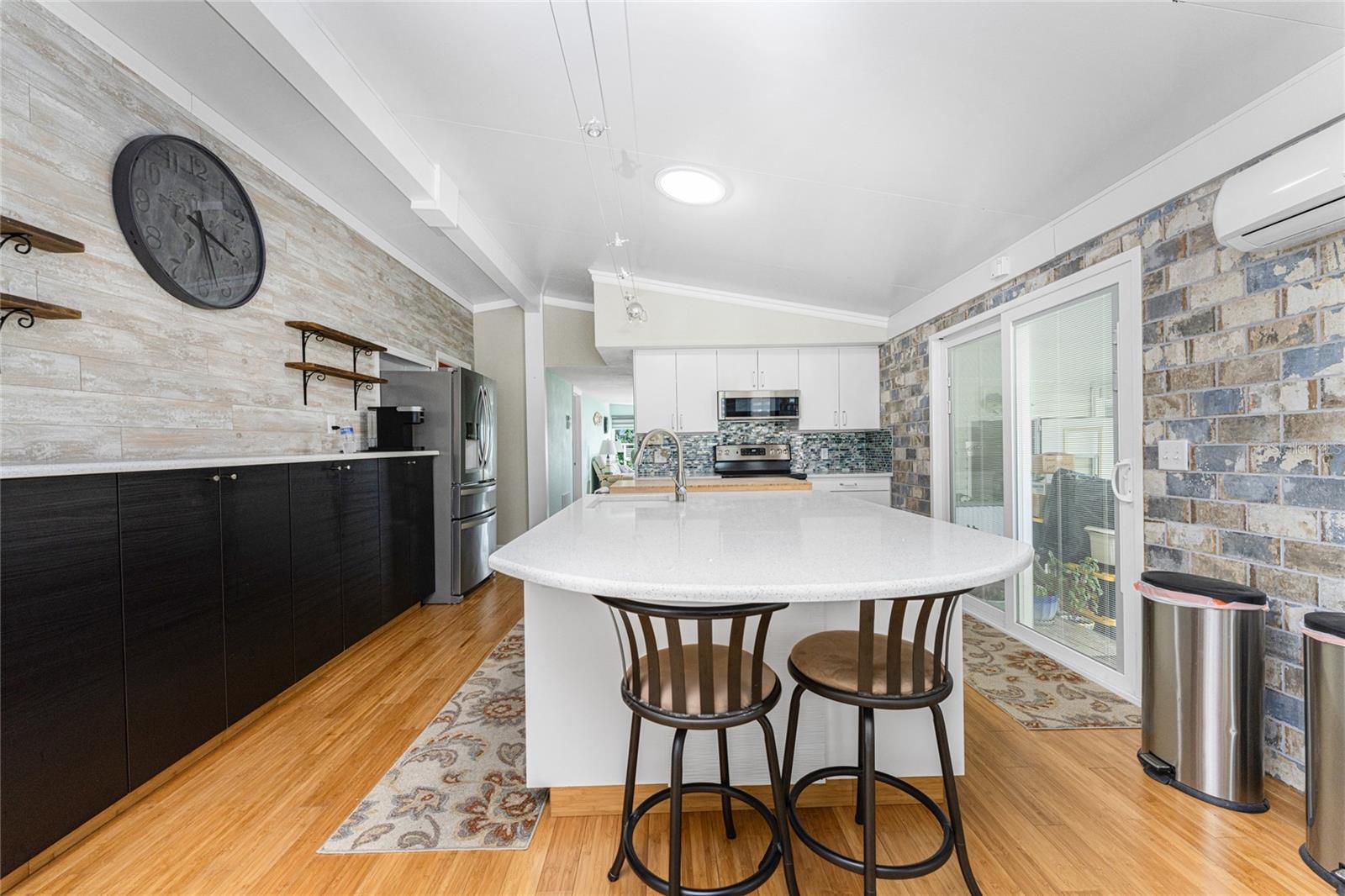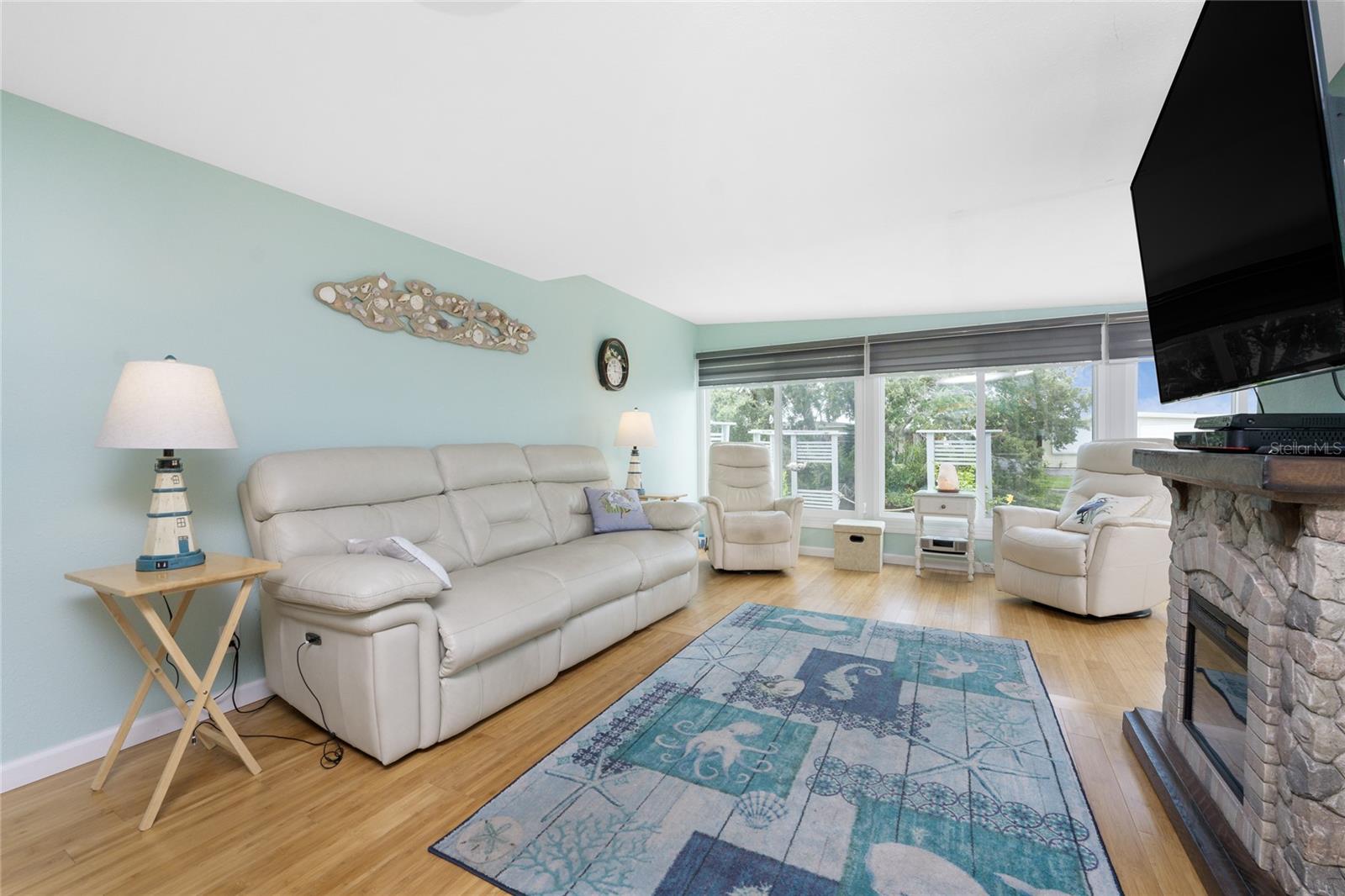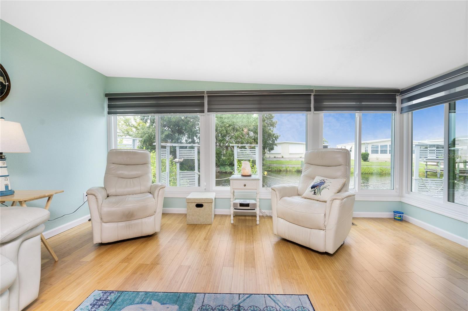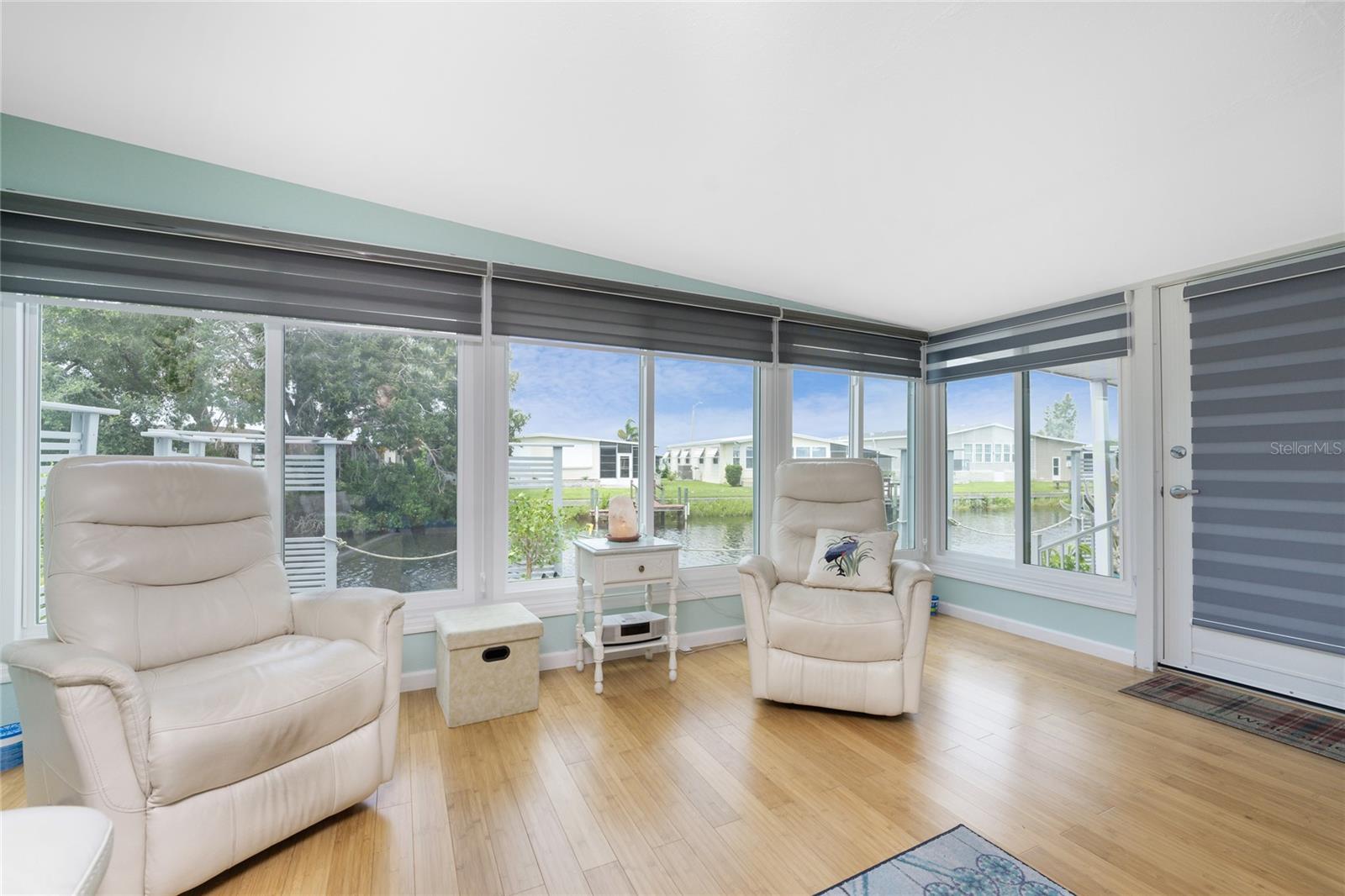 This beautifully renovated two-bedroom, two-bathroom mobile home offers an exceptional blend of contemporary, coastal, waterfront, and Florida styles, creating a stunning and unique living space. Recently gutted and expanded to over 1300 square feet, every corner of this home features something new and delightful. Situated on a waterfront lot with direct canal access to open water, this property is a paradise for boating enthusiasts and nature lovers alike. Upon entering, you'll be welcomed by spacious rooms enhanced by pocket doors, ensuring an open and airy feel throughout. The large living areas seamlessly connect to a newly upgraded kitchen, complete with a generous island, stainless steel appliances, and elegant quartz countertops. The attention to detail is evident with new plumbing, electrical systems, a metal roof, and new windows and doors, ensuring modern comfort and efficiency. The home boasts a variety of outdoor spaces perfect for relaxation and entertainment. A screened porch provides a serene spot to enjoy the view, while a deck and patio offer additional areas to bask in the Florida sunshine. The epoxy driveway leads to a convenient workshop and storage area, catering to all your practical needs. Inside, an office space provides a quiet retreat for work or study, and an inside laundry room adds to the home's functionality. The en suite primary bedroom is a true retreat, featuring a large closet and a beautiful view of the canal. This private oasis is complemented by updated bathrooms with contemporary finishes, enhancing the home's modern aesthetic. The property's exterior is equally impressive with a stone front and a durable concrete seawall that lines the canal. The new floors and subfloors throughout the home add to its fresh, updated feel. With an HOA fee of only $135 monthly, this home offers affordable luxury in a prime waterfront location. Beyond the home itself, you'll find a vibrant and active community with a wealth of amenities. The community features a large conference room with a banquet hall, perfect for gatherings and events. Two pools and a hot tub provide ample opportunities for relaxation and recreation. Additionally, a marina with open docks is available at an extra cost for those who love boating. This mobile home is more than just a place to live; it's a lifestyle. Every element has been carefully considered to provide comfort, style, and convenience, making it a perfect haven for those seeking a beautiful and functional waterfront property in an active and welcoming community.