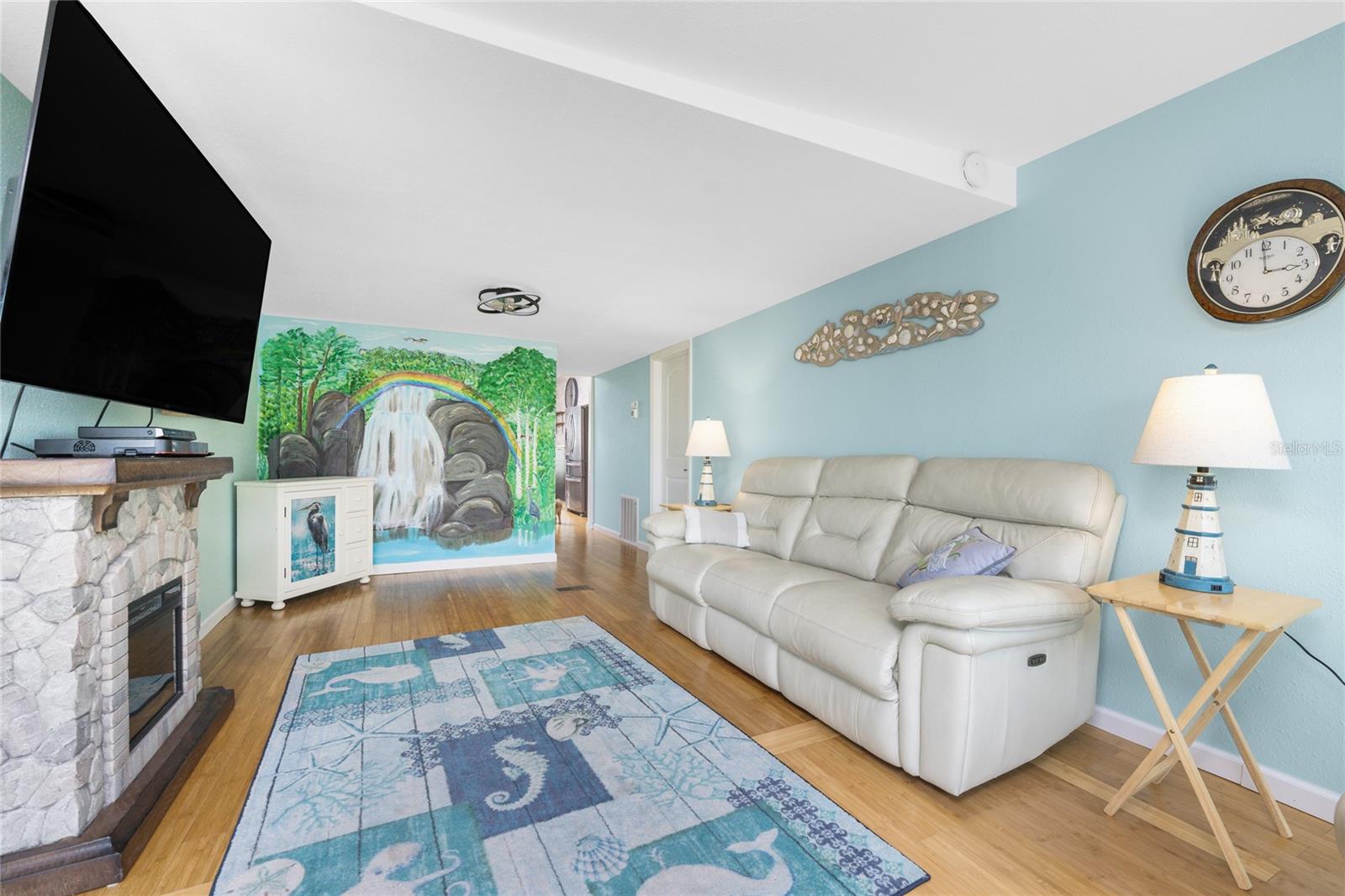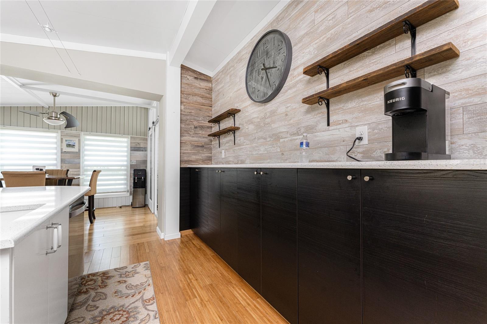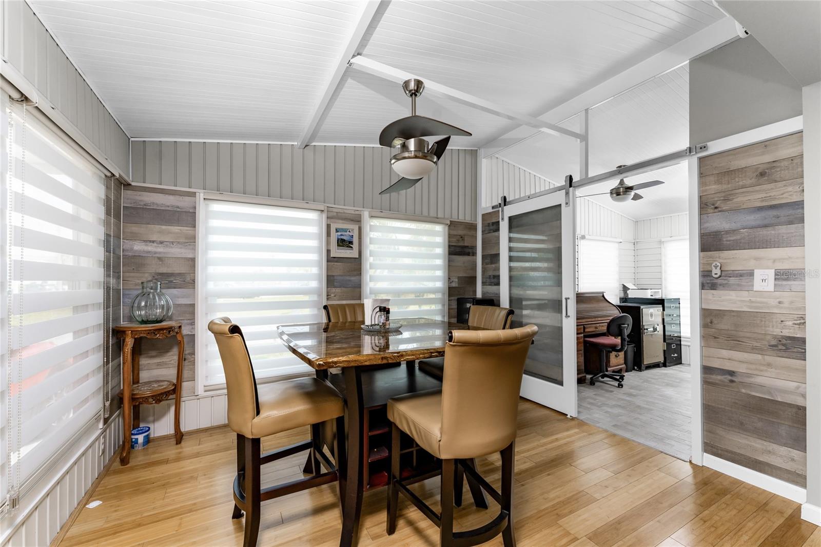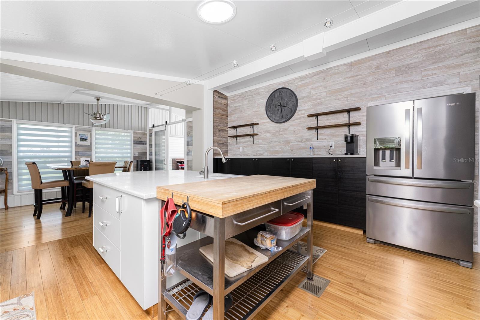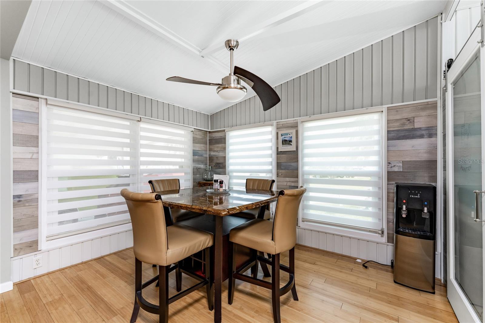 This beautifully renovated two-bedroom, two-bathroom mobile home offers an exceptional blend of contemporary, coastal, waterfront, and Florida styles, creating a stunning and unique living space. Recently gutted and expanded to over 1300 square feet, every corner of this home features something new and delightful. Situated on a waterfront lot with direct canal access to open water, this property is a paradise for boating enthusiasts and nature lovers alike. Upon entering, you'll be welcomed by spacious rooms enhanced by pocket doors, ensuring an open and airy feel throughout. The large living areas seamlessly connect to a newly upgraded kitchen, complete with a generous island, stainless steel appliances, and elegant quartz countertops. The attention to detail is evident with new plumbing, electrical systems, a metal roof, and new windows and doors, ensuring modern comfort and efficiency. The home boasts a variety of outdoor spaces perfect for relaxation and entertainment. A screened porch provides a serene spot to enjoy the view, while a deck and patio offer additional areas to bask in the Florida sunshine. The epoxy driveway leads to a convenient workshop and storage area, catering to all your practical needs. Inside, an office space provides a quiet retreat for work or study, and an inside laundry room adds to the home's functionality. The en suite primary bedroom is a true retreat, featuring a large closet and a beautiful view of the canal. This private oasis is complemented by updated bathrooms with contemporary finishes, enhancing the home's modern aesthetic. The property's exterior is equally impressive with a stone front and a durable concrete seawall that lines the canal. The new floors and subfloors throughout the home add to its fresh, updated feel. With an HOA fee of only $135 monthly, this home offers affordable luxury in a prime waterfront location. Beyond the home itself, you'll find a vibrant and active community with a wealth of amenities. The community features a large conference room with a banquet hall, perfect for gatherings and events. Two pools and a hot tub provide ample opportunities for relaxation and recreation. Additionally, a marina with open docks is available at an extra cost for those who love boating. This mobile home is more than just a place to live; it's a lifestyle. Every element has been carefully considered to provide comfort, style, and convenience, making it a perfect haven for those seeking a beautiful and functional waterfront property in an active and welcoming community.