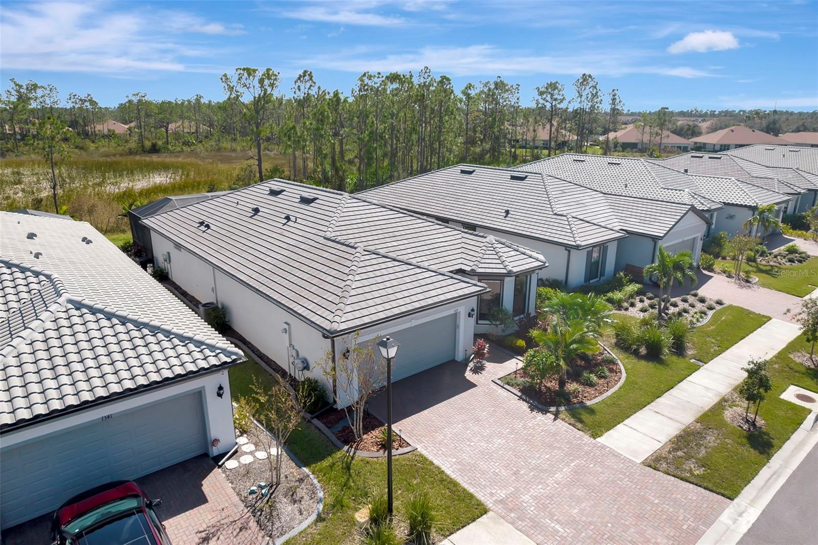 UNBELIEVABLE PRICE IMPROVEMENT!! BRING OFFERS!! THIS HOME IS NOT IN A FLOOD ZONE!! Welcome home to this stunning 2-bedroom, den and 2-bathroom haven nestled in Del Webb Cypress Falls at the Woodlands, an exclusive 55+ gated community tailored for active adults. Situated just a short drive from the Gulf beaches, this residence boasts impeccable curb appeal with upgraded landscaping and custom curbing that sets the tone for what lies beyond. Step through the front door and be greeted by the intricate etched glass, a prelude to the elegance that awaits within. The spacious entry hall beckons you further into the home, where you'll find 8' doors, crown molding throughout the entire living space and window treatments adorning every window, exuding a sense of refined luxury. High-quality ceiling fans grace each bedroom and the living room, ensuring comfort throughout. The heart of the home is its expansive open-concept living space, ideal for hosting gatherings with loved ones. The generously sized guest room and den, complete with a shared bathroom featuring quartz countertops and a tall vanity, provide comfortable accommodations for guests. The kitchen is a chef's dream, boasting an upgraded appliance package, quartz countertops, a tile backsplash, and 42" upper cabinets surrounding a large island. Meanwhile, the primary bedroom, tucked away at the rear of the home, offers tranquility and serenity with its picturesque view of the preserve. Here, you'll find a tray ceiling and a high-quality ceiling fan, adding a touch of sophistication. The primary bathroom is a sanctuary unto itself, featuring a spacious walk-in shower with upgraded tile, a tall vanity with dual bowls, and quartz countertops. A large walk-in closet with ample shelving provides plenty of storage space for your wardrobe. Conveniently located near the garage, the laundry room boasts cabinetry and a laundry sink for added convenience. Step outside from the Dining room area onto the large lanai, partially covered with an extension that houses the saltwater pool that overlooks the preserve—a perfect setting for outdoor entertainment and relaxation. This home has recently installed hurricane shutters though out as well as Hurricane blockers in all roof vents. Remote control Privacy screens inside the dining room, and on two of the covered openings in the Lanai were also recently Added. The garage, with its 4' extension, offers ample space for vehicles, golf cart parking, as well as a full filtration and water softener and additional storage. TV'S ARE INCLUDED (EXCEPT FOR THE PRIMARY BEDROOM). Beyond the confines of this exquisite abode lies Cypress Falls, a meticulously maintained gated community teeming with activities and amenities. From the expansive clubhouse and resort-style pools to the fitness center, Tennis courts, Pickleball Courts, horseshoes, bocce and social events, there's something for everyone here. With a full-time activities director and a plethora of clubs and events, you're not just buying a home—you're buying into a vibrant and thriving community. Come see for yourself what makes this home and community truly exceptional!